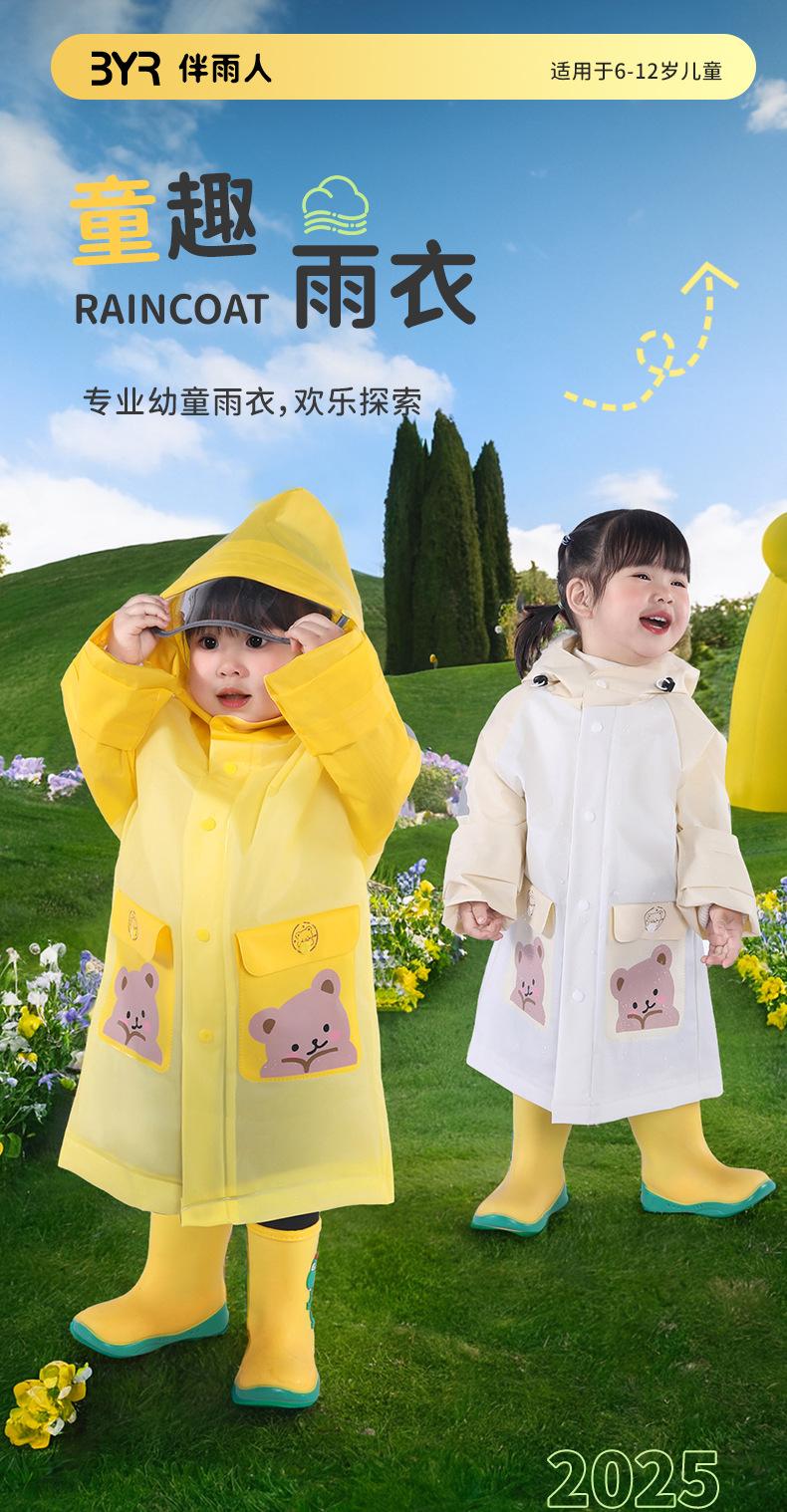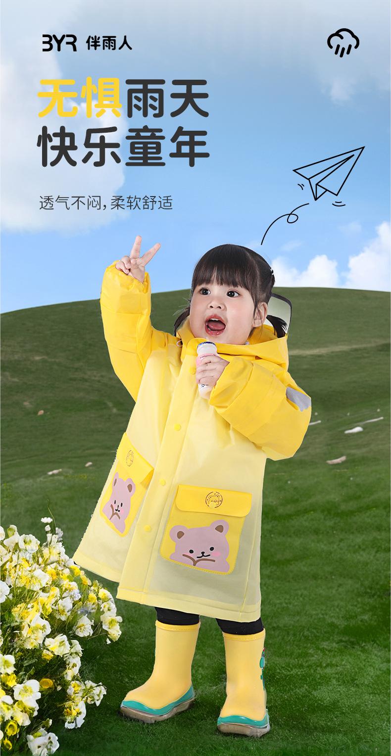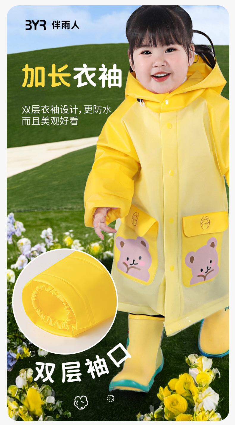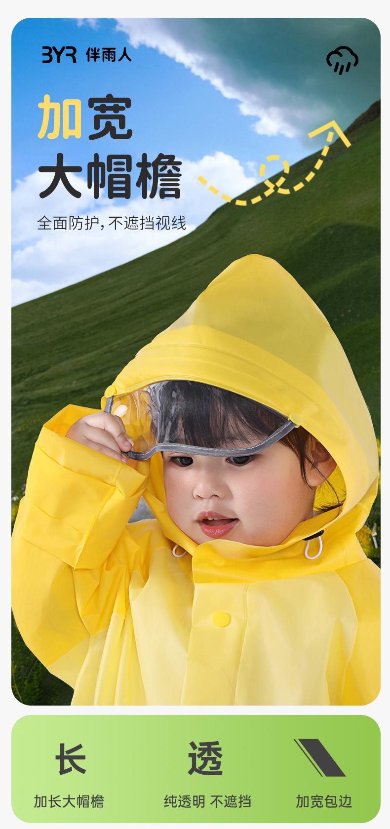 Vibrant yellow [rainproof hooded high collar + high-definition enlarged brim hat + hidden schoolbag position + cartoon reflective]