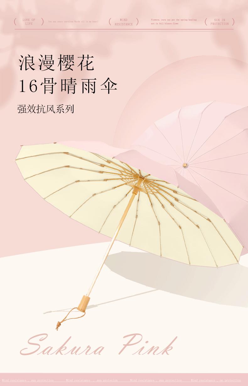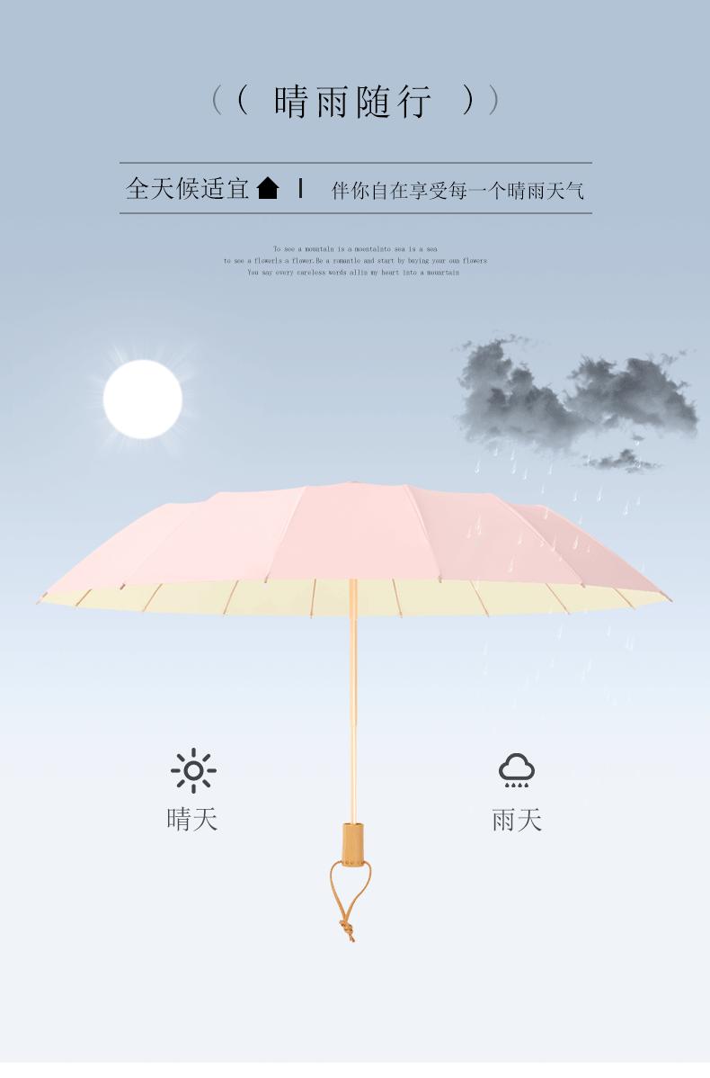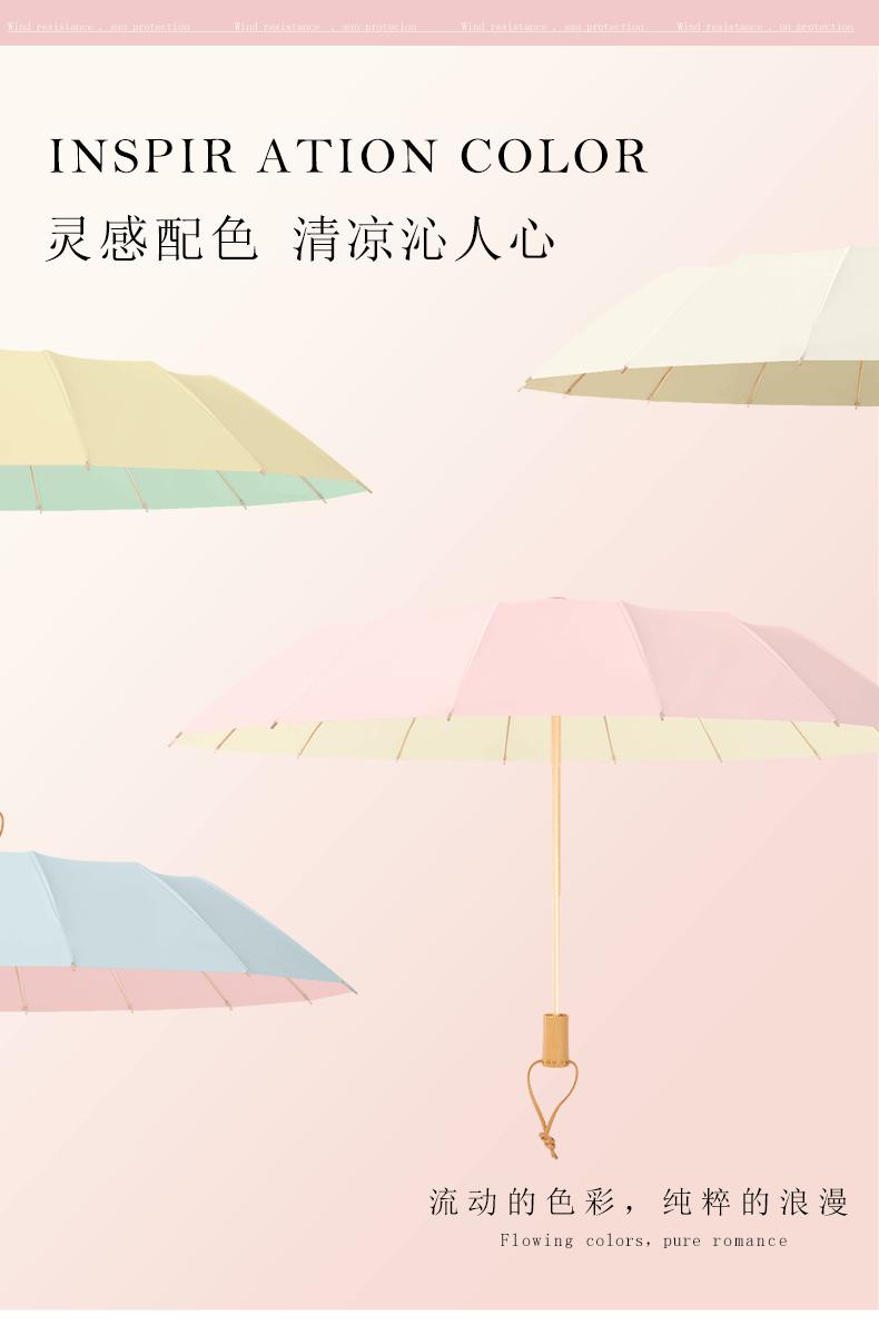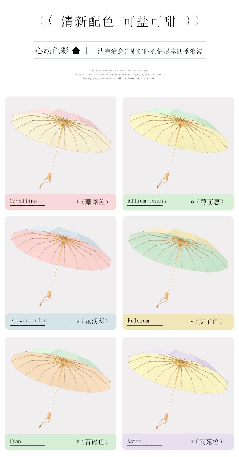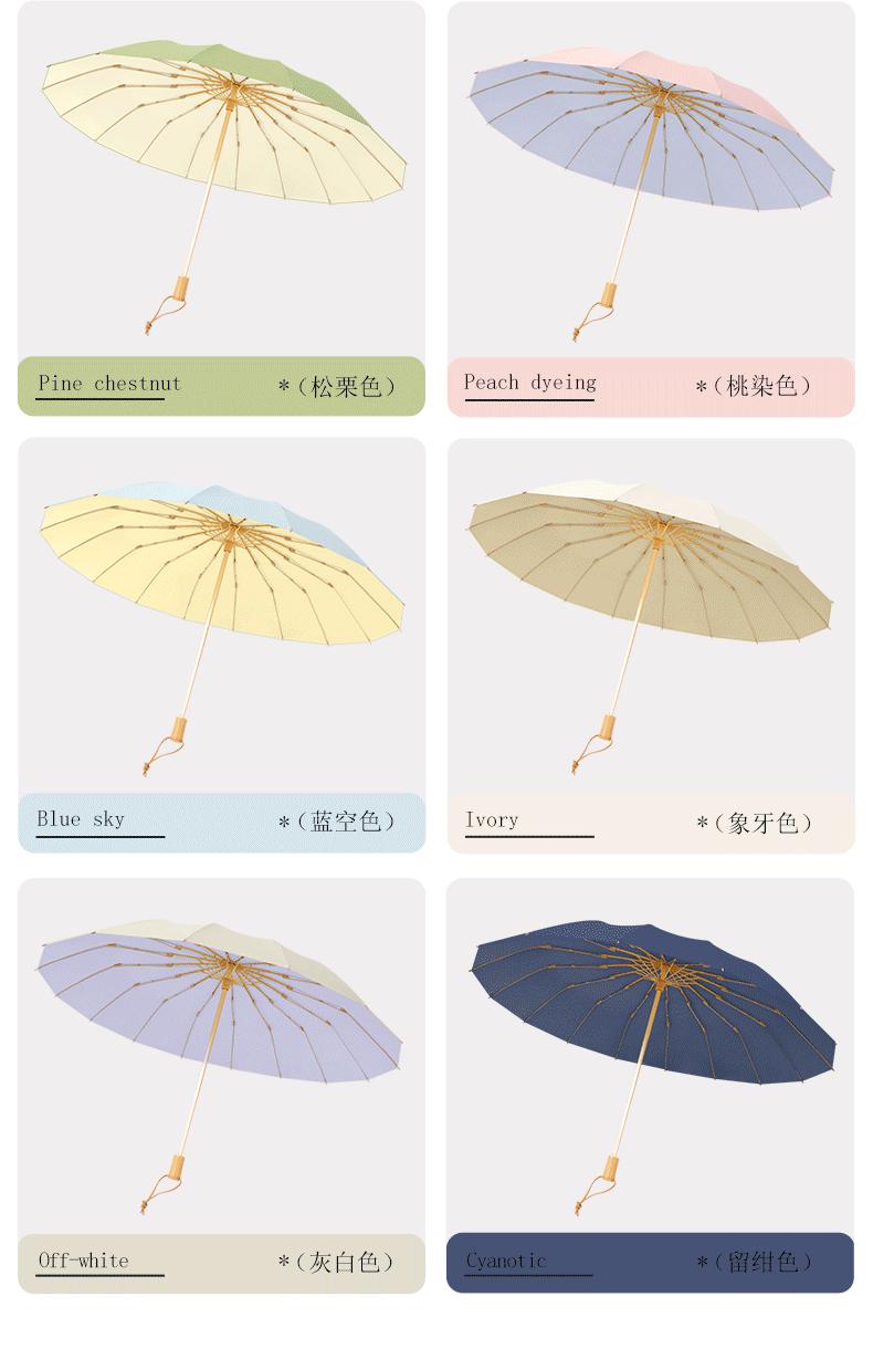 16 bone wooden handle color plastic umbrella
