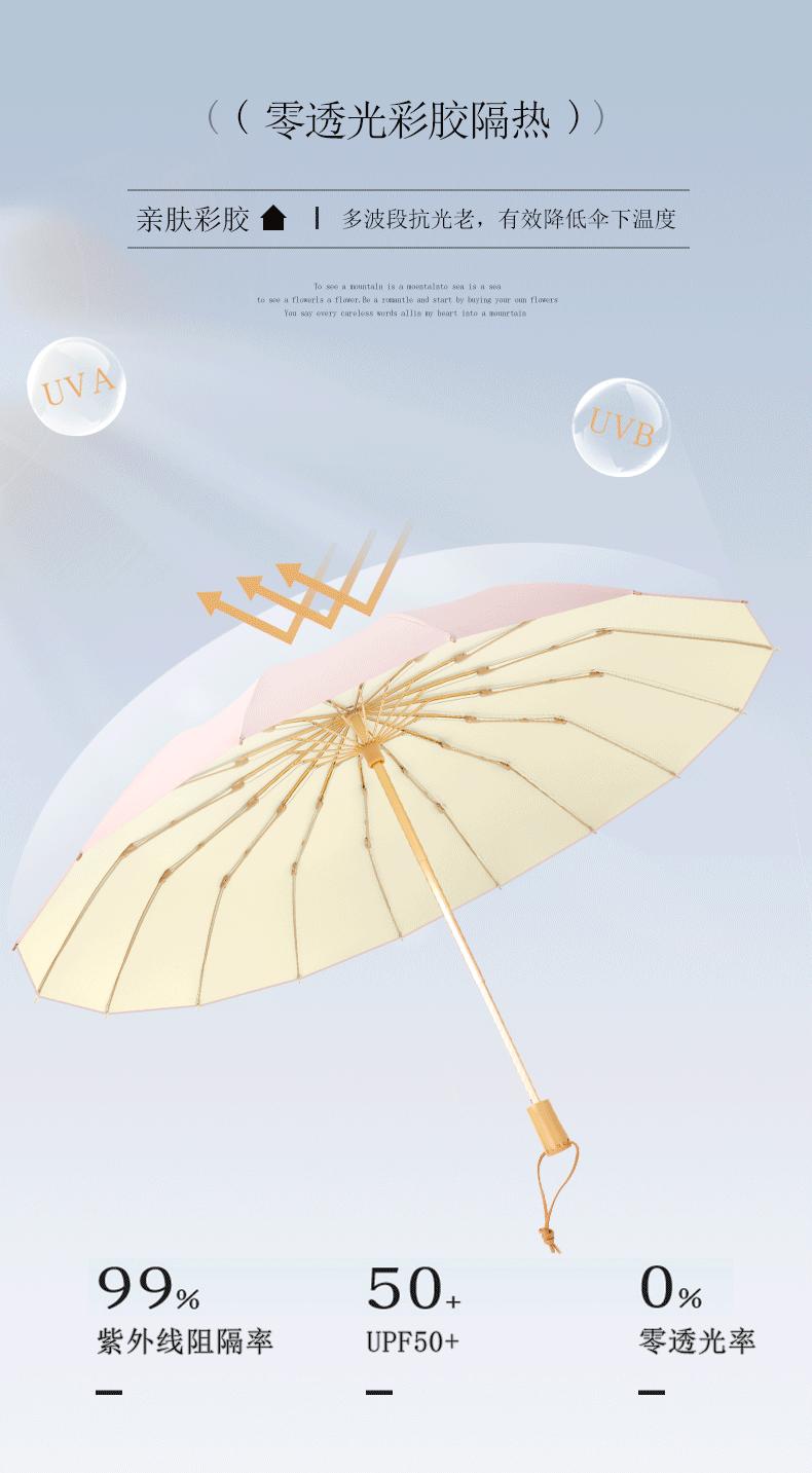 Paraguas vintage de madera de 16 huesos con mango, con pegamento de color grueso, protección solar, pequeño y fresco, para damas, venta al por mayor y personalización.
