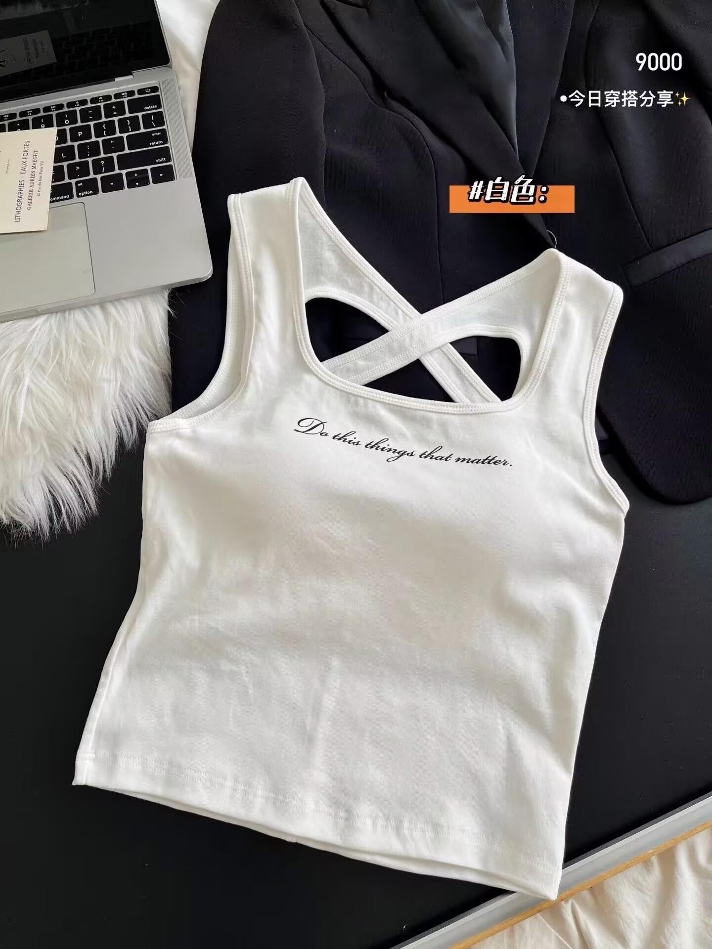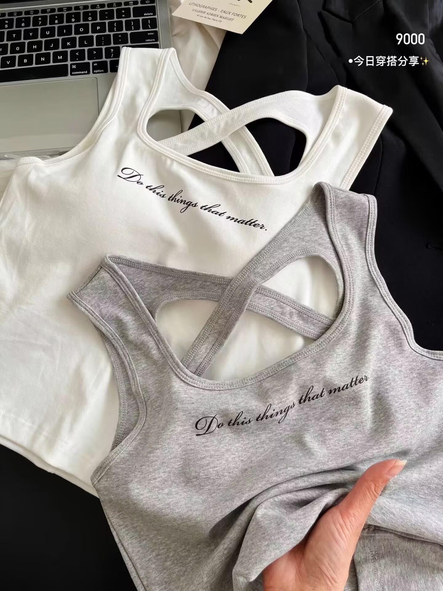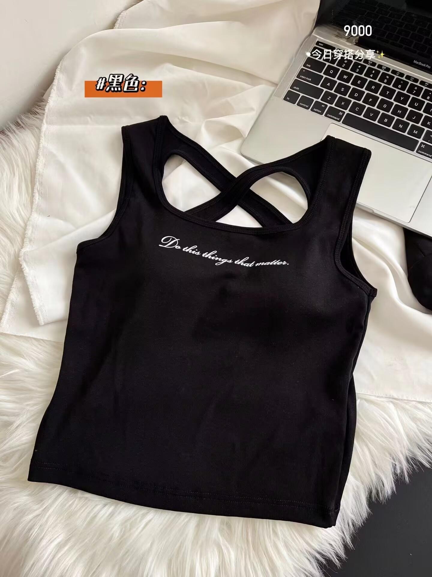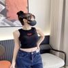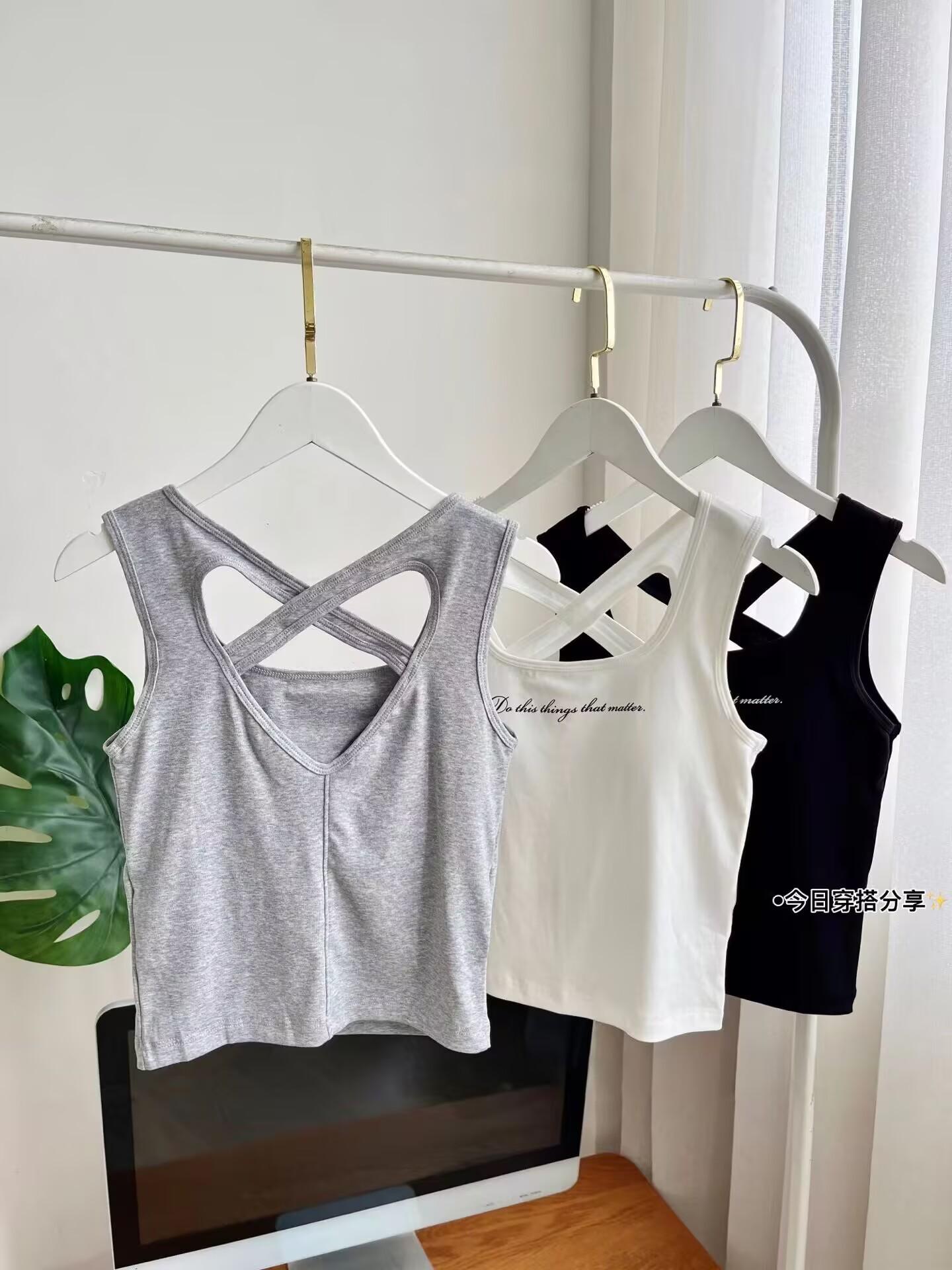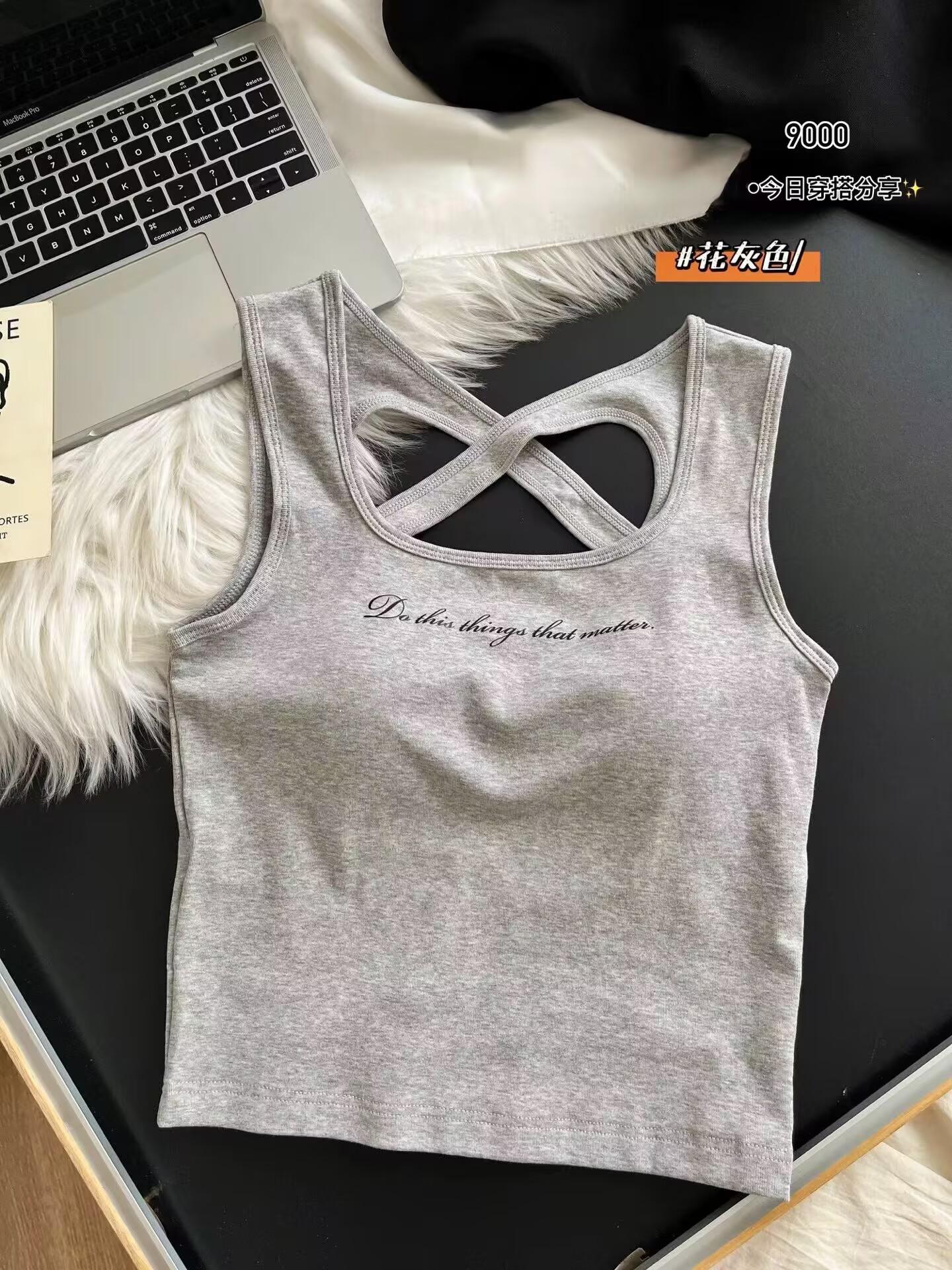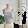 Versión de Calidad Mismo Estilo Moda Cuello Cuadrado Letra Pieza Única Corazón de Durazno Cruz Espalda Hermosa Chaleco Cómodo Combinable para Mujer