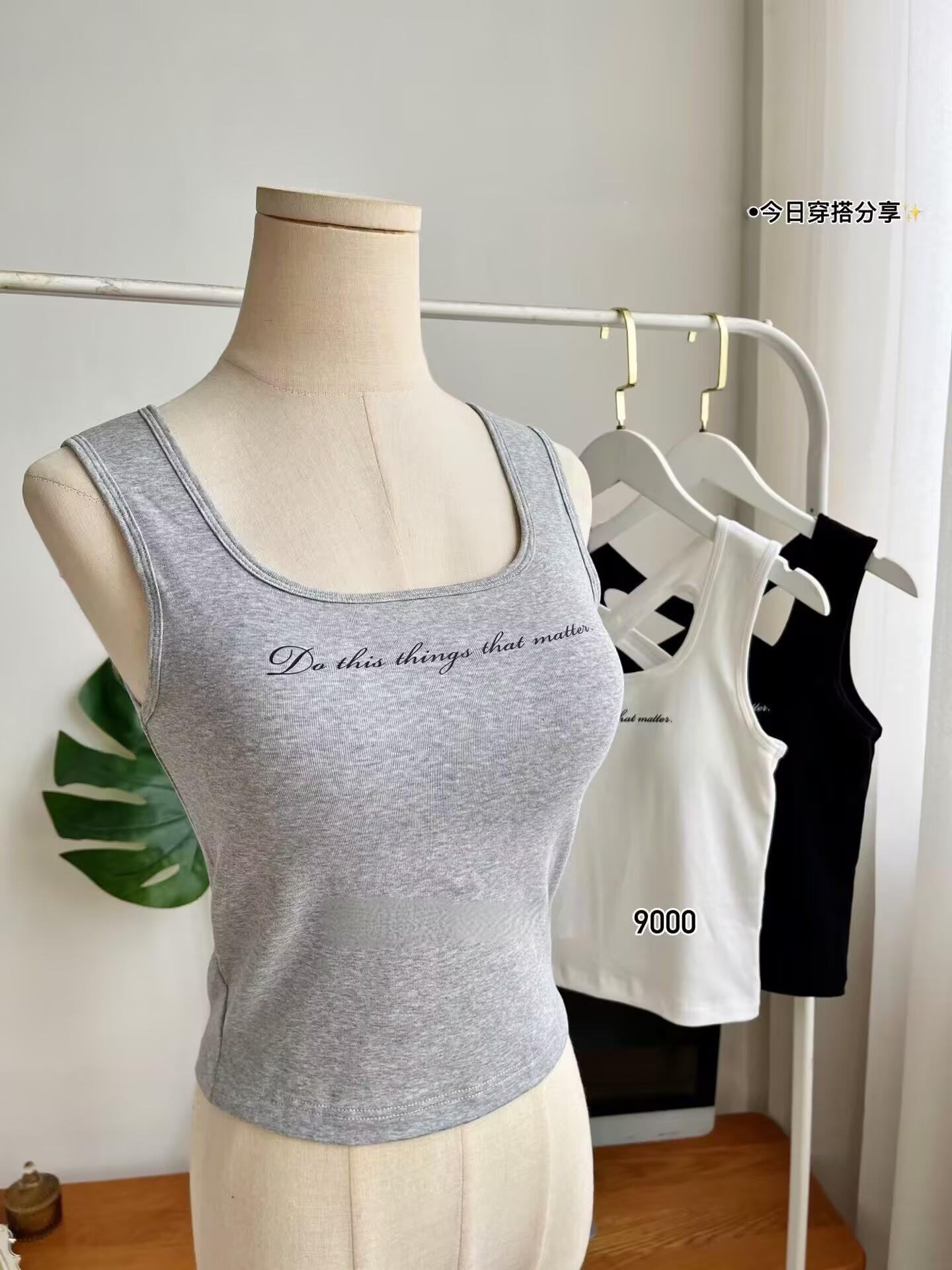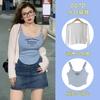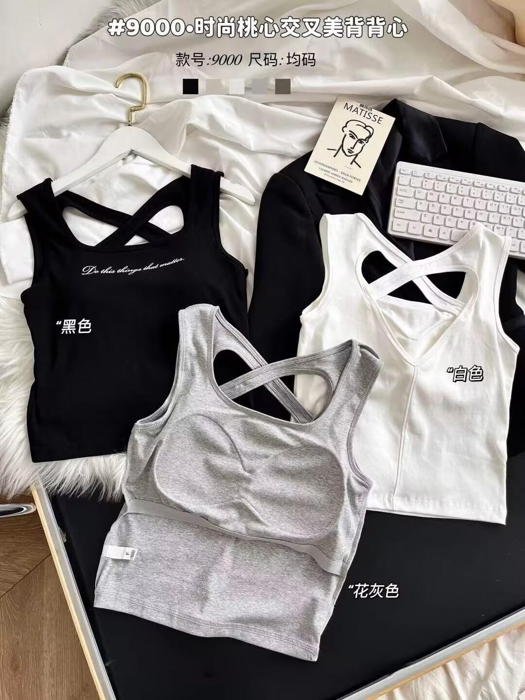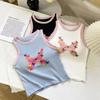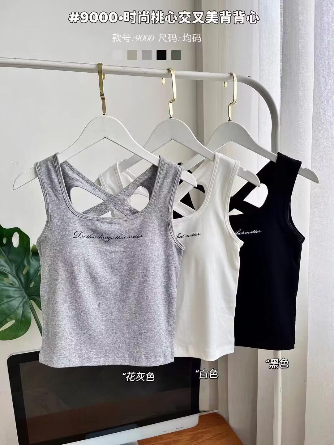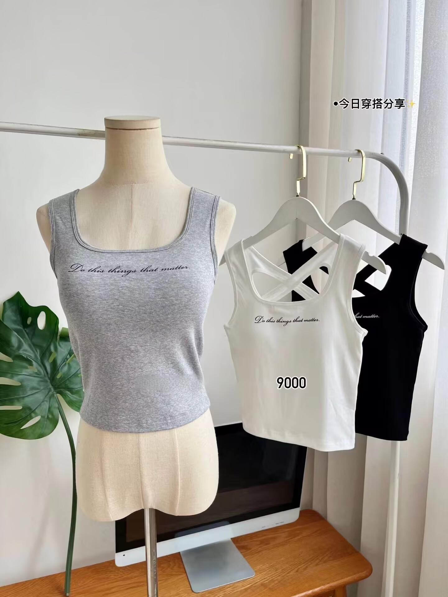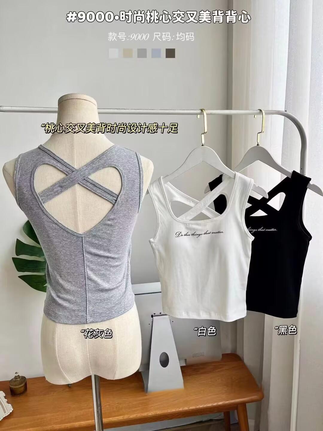 Versión de Calidad Mismo Estilo Moda Cuello Cuadrado Letra Pieza Única Corazón de Durazno Cruz Espalda Hermosa Chaleco Cómodo Combinable para Mujer