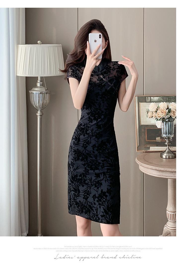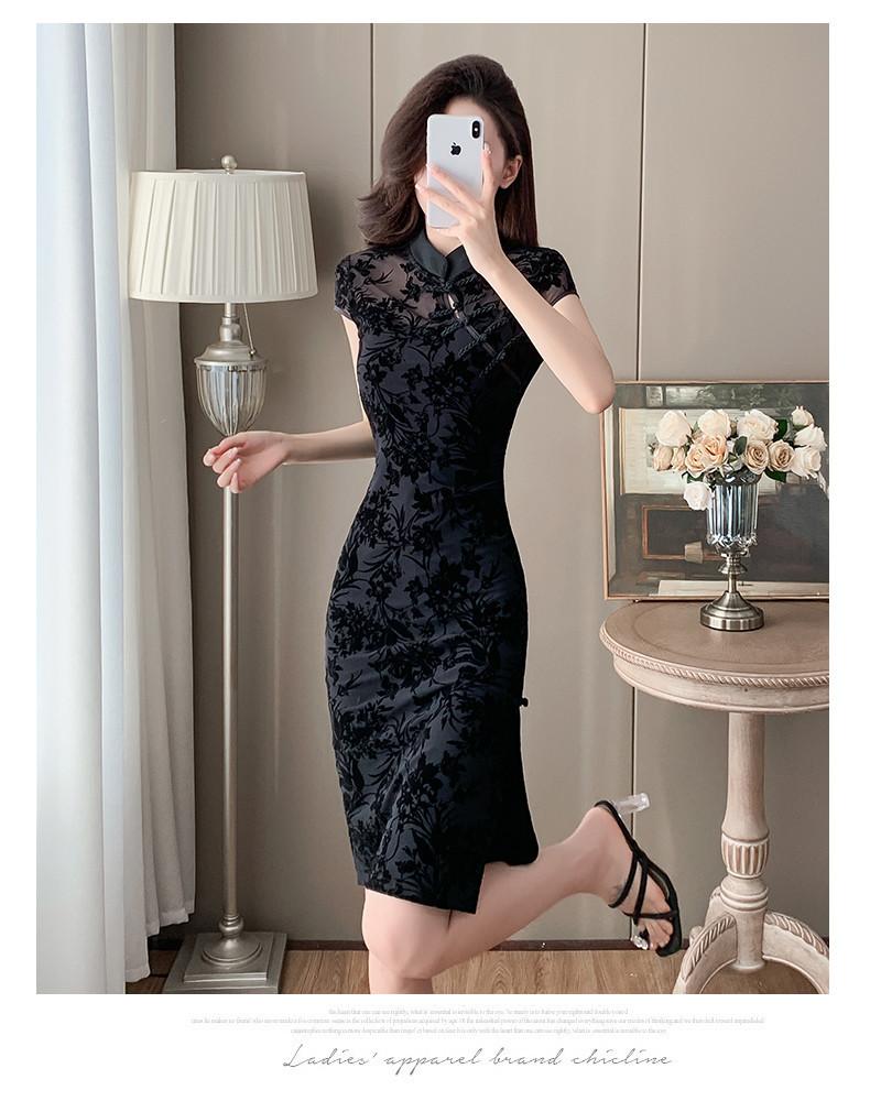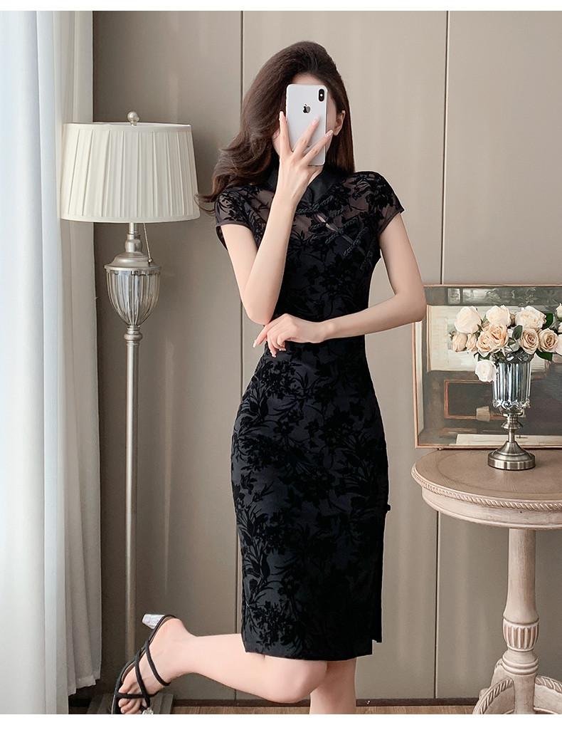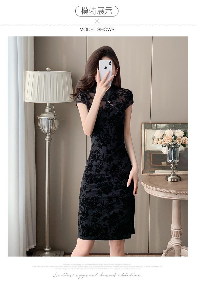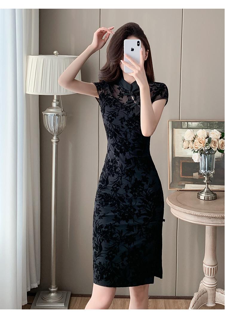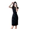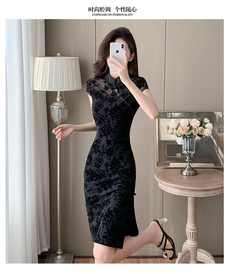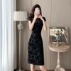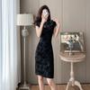 Vestido Cheongsam ajustado con estampado flocado, estilo chino, ajustado, para adelgazar, estilo transfronterizo de verano 2025