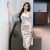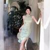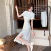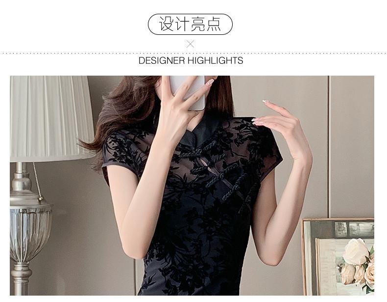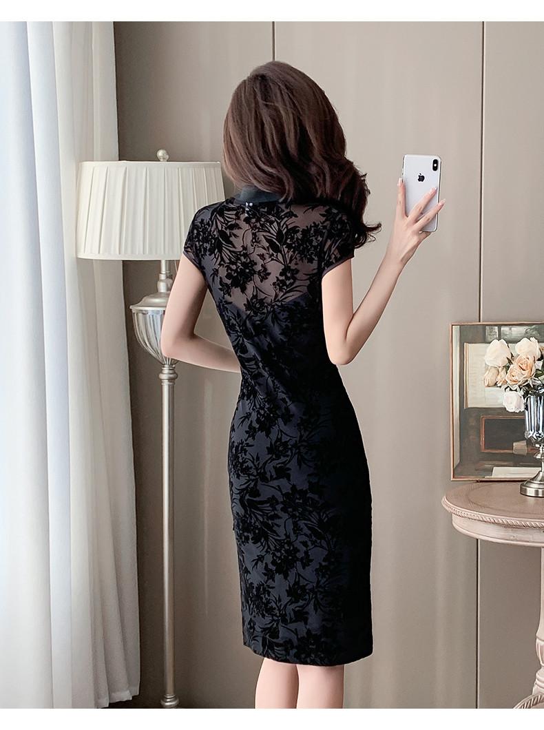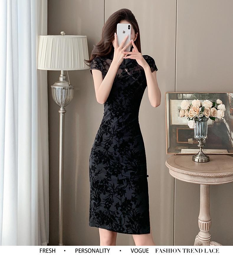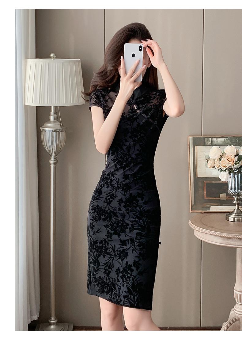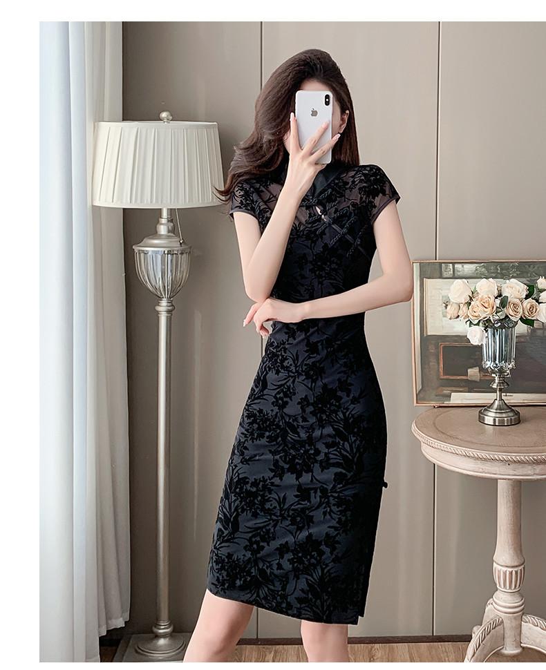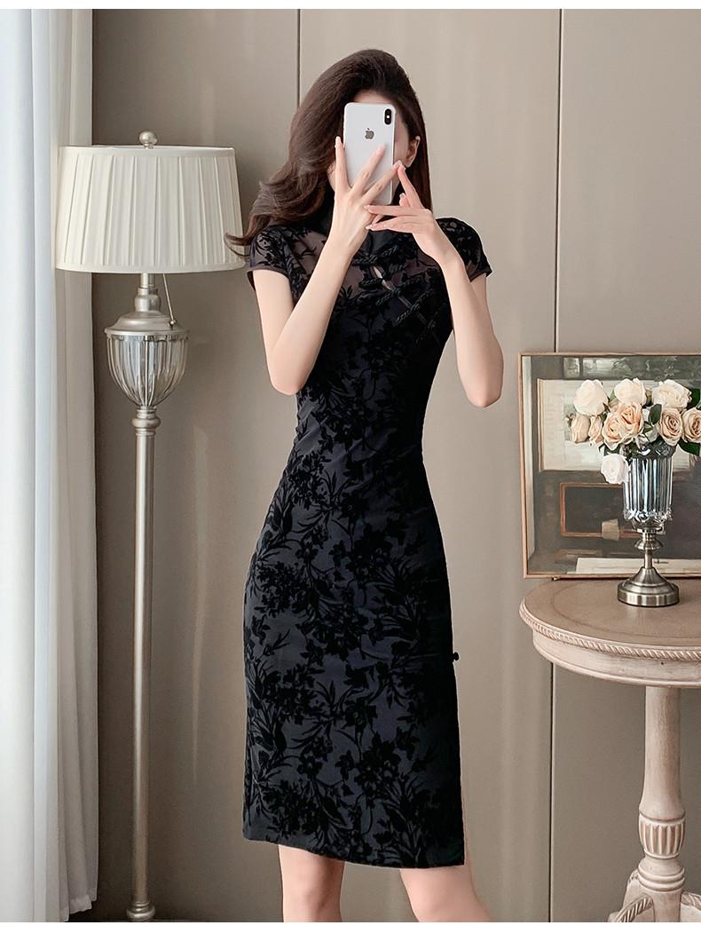 Vestido Cheongsam ajustado con estampado flocado, estilo chino, ajustado, para adelgazar, estilo transfronterizo de verano 2025