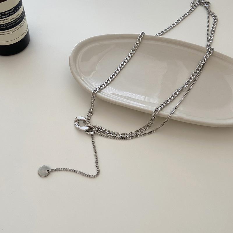 Silver Double-Ring Tassel Necklace, Cold wind