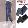 Pantalones vaqueros elásticos de alta elasticidad para embarazadas, pantalones abdominales de primavera y otoño, pantalones holgados de papá, ropa exterior, pantalones vaqueros casuales para embarazadas.