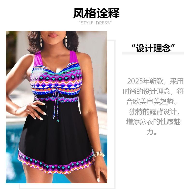 Traje de baño bikini con falda dividida de secado rápido para mujer, pantalones cortos sexys sin espalda de talla grande europeos y americanos transfronterizos, venta al por mayor, 2025