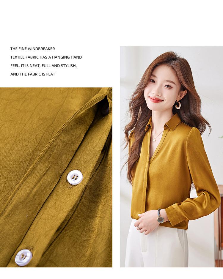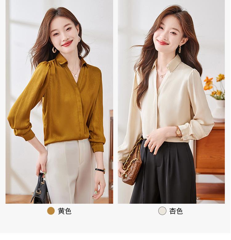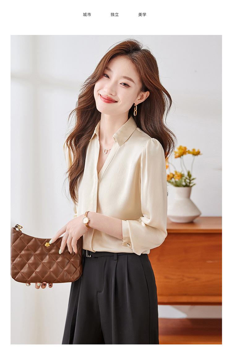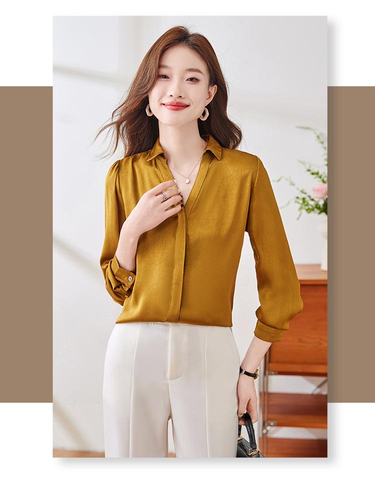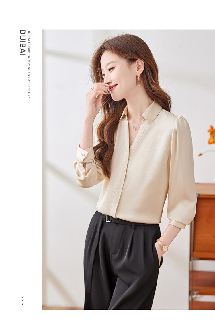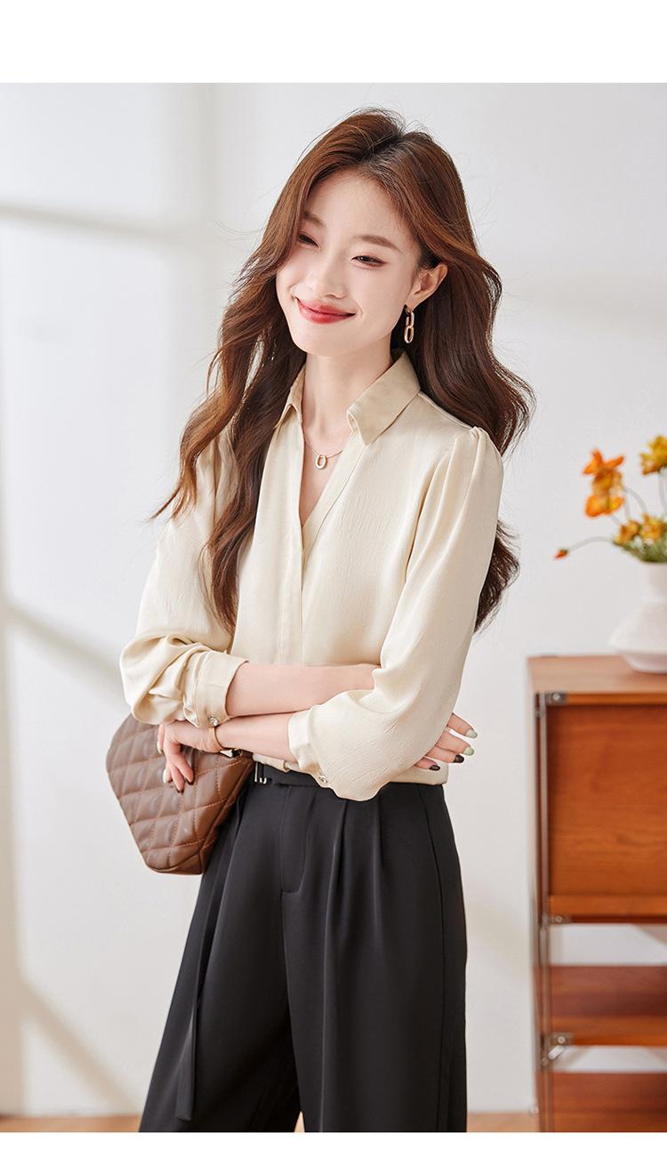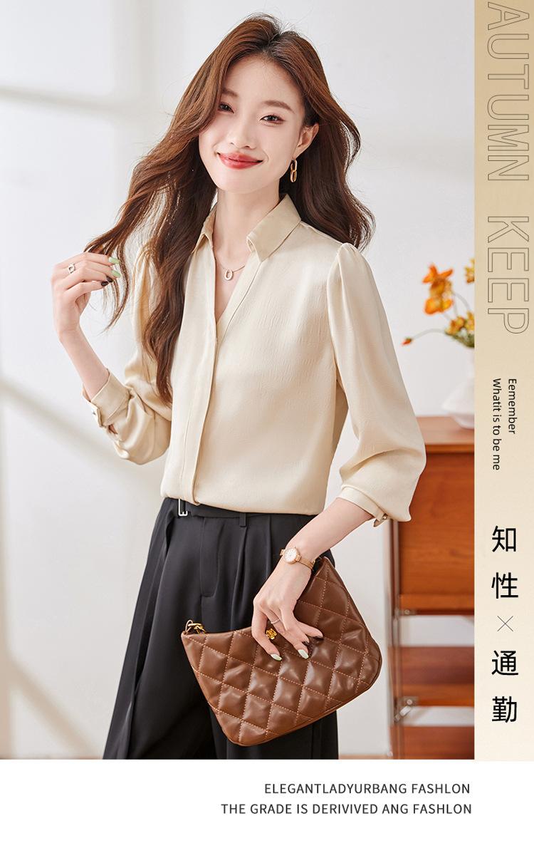 Elegante Camisa de Gasa con Cuello en V para Mujer Otoño Manga Larga Simple para Ir al Trabajo Estilo Francés Chic Top Camisa Interior de Moda Otoño