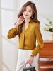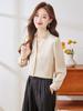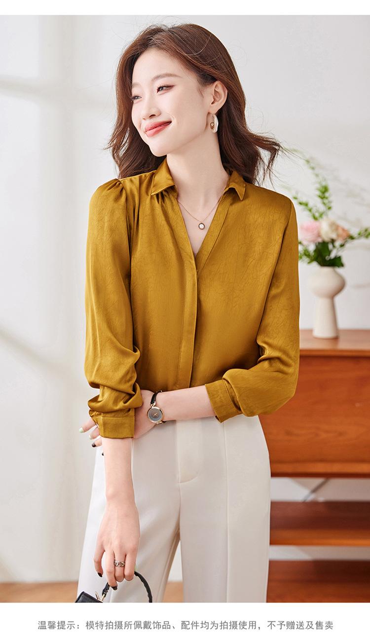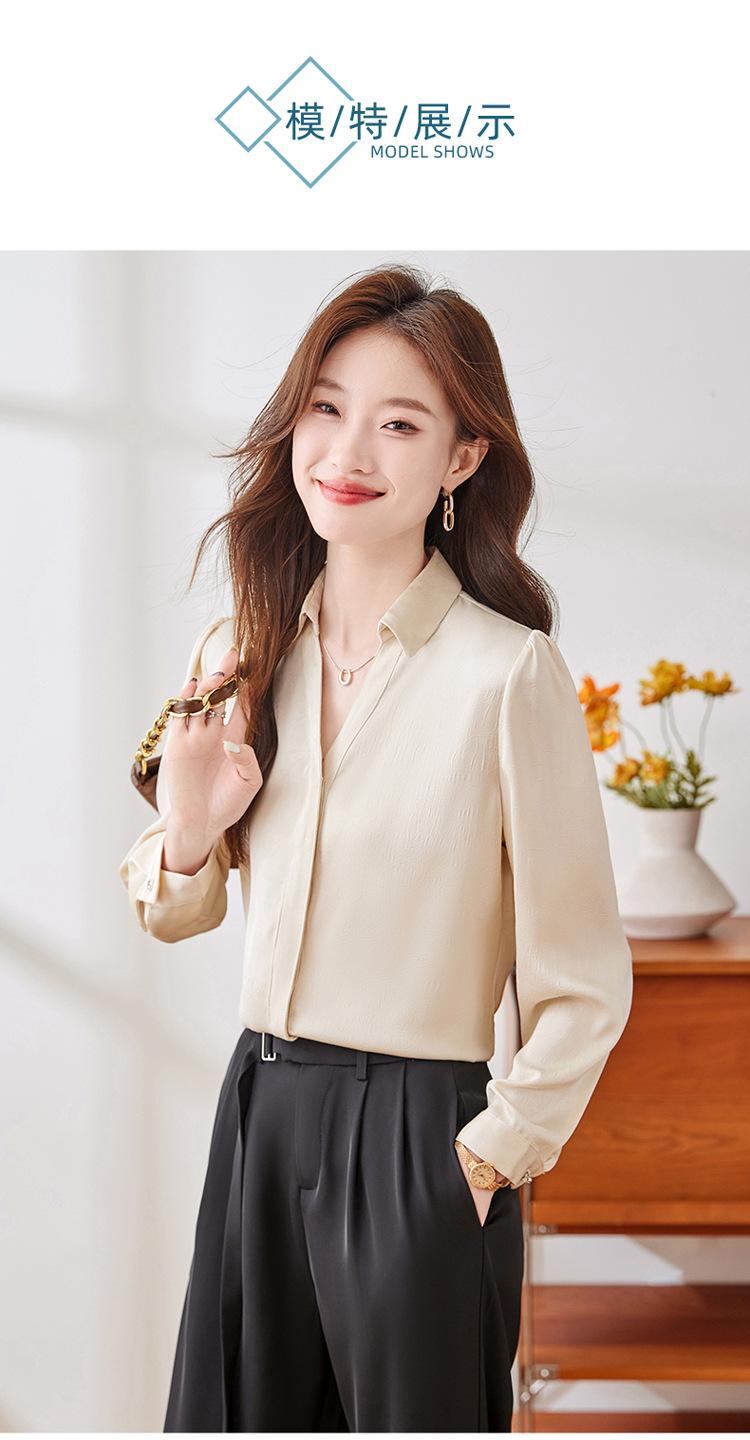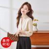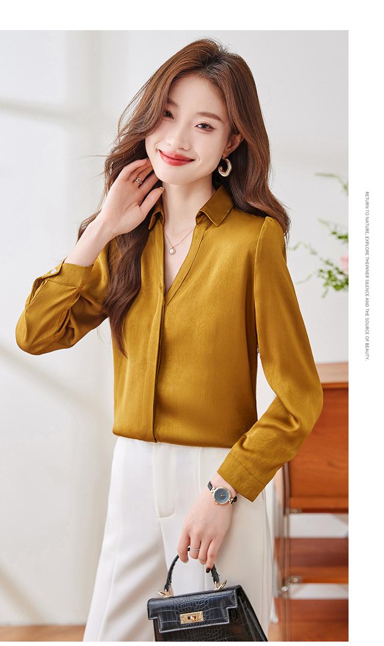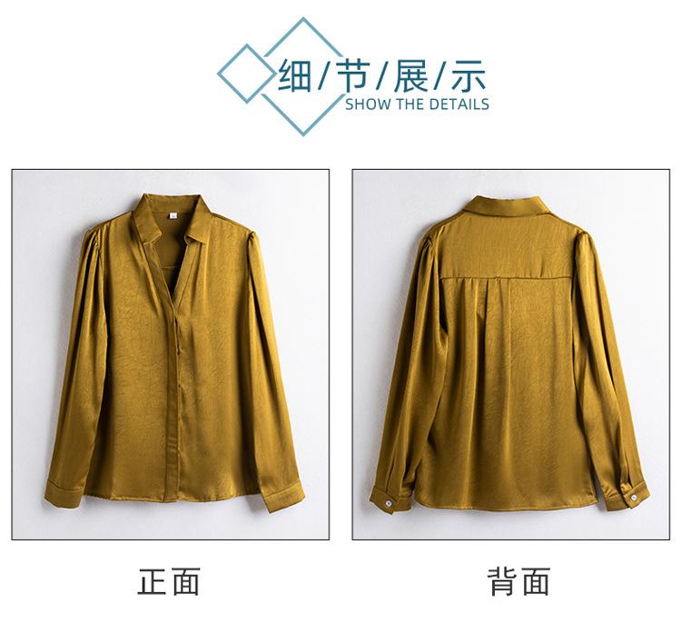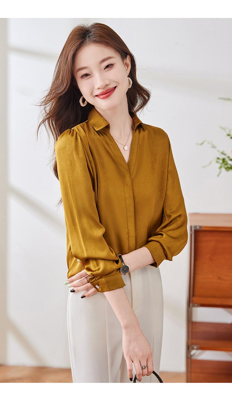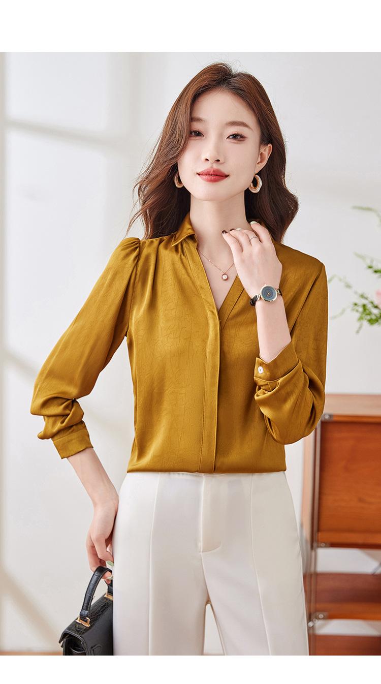 Elegante Camisa de Gasa con Cuello en V para Mujer Otoño Manga Larga Simple para Ir al Trabajo Estilo Francés Chic Top Camisa Interior de Moda Otoño