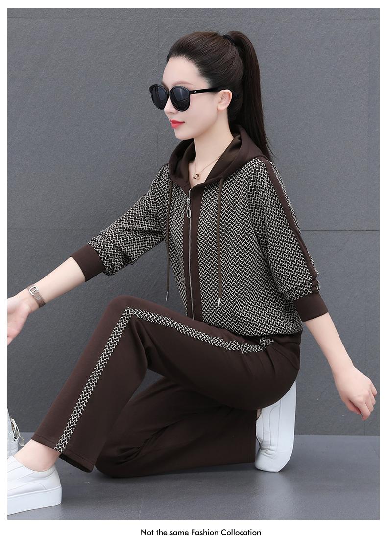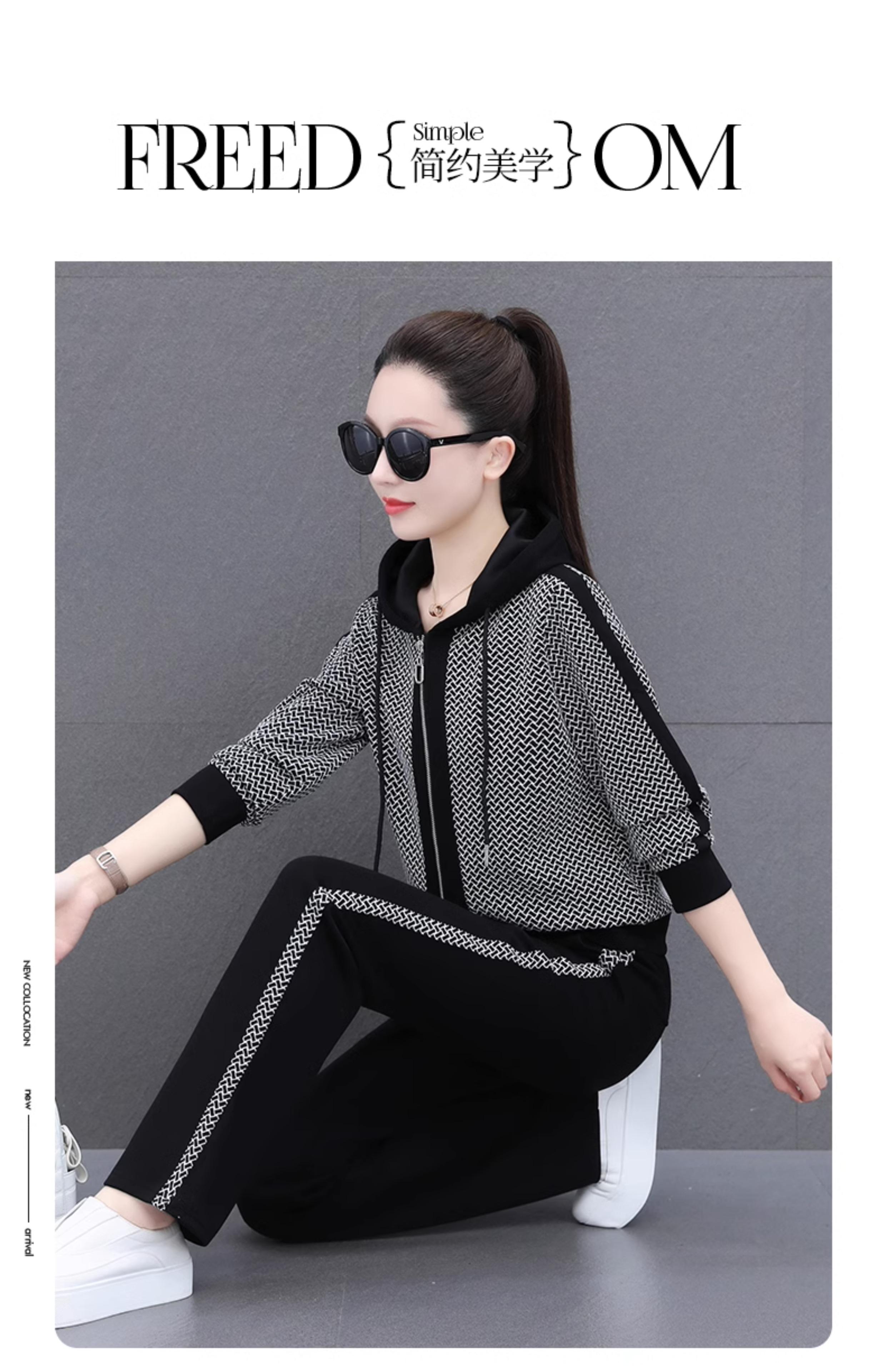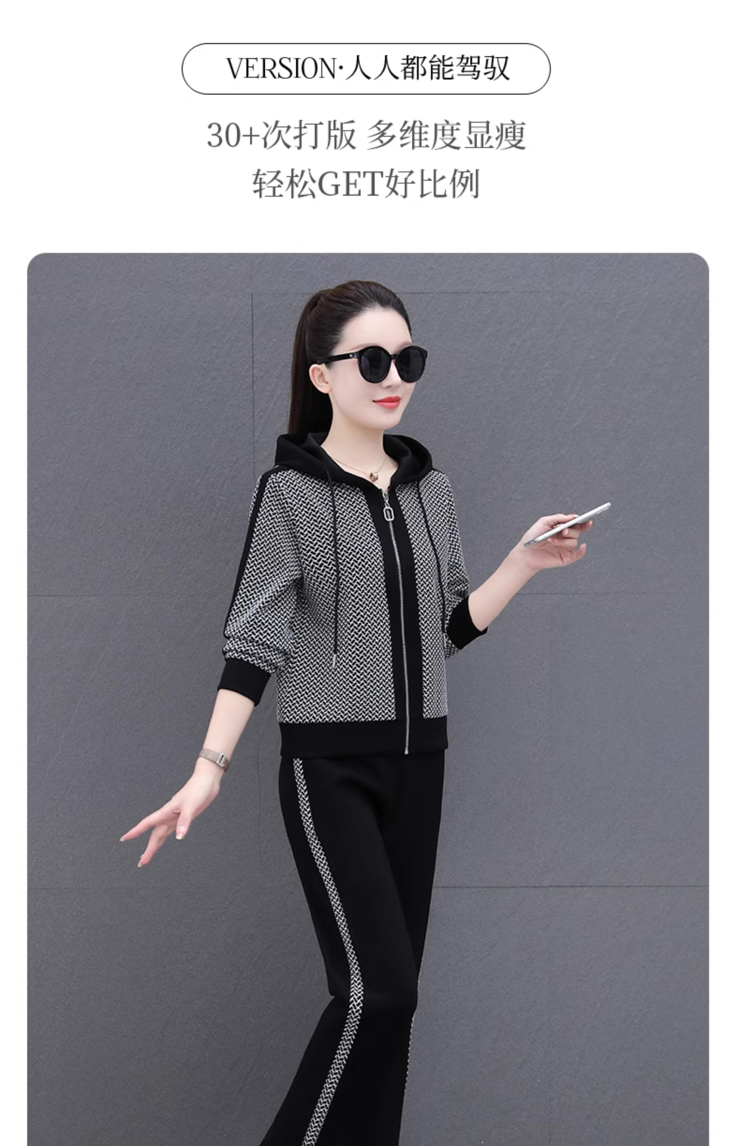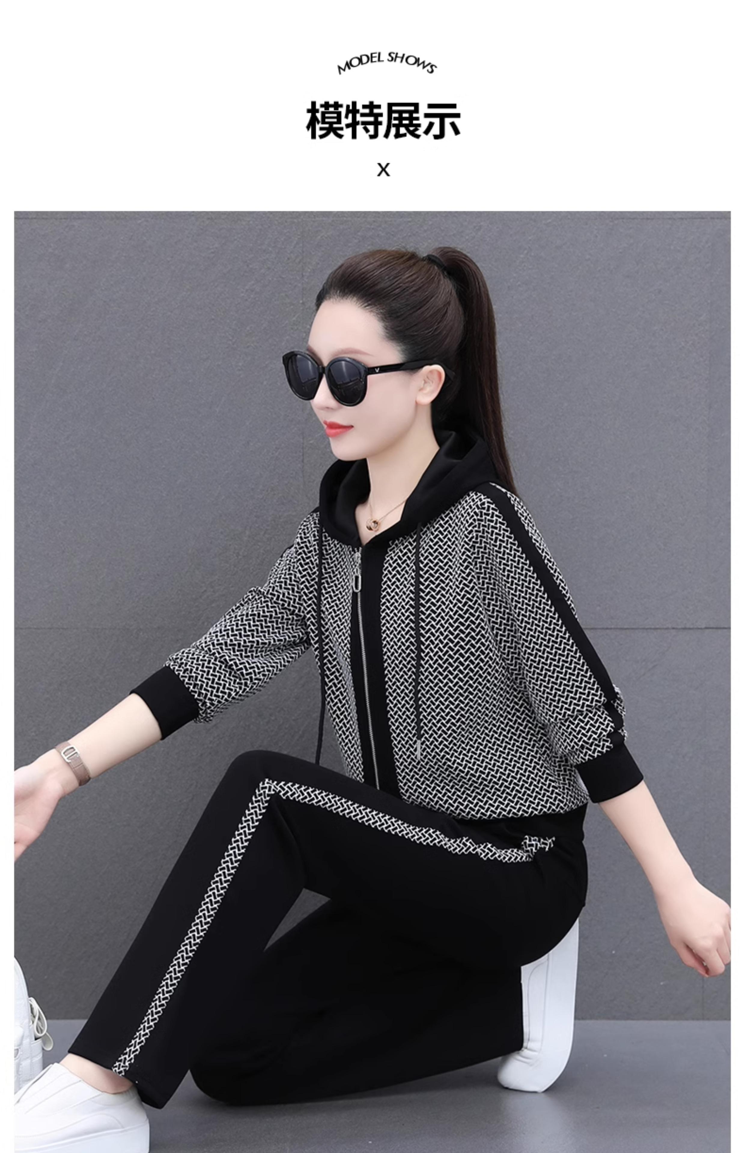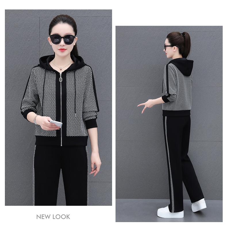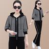 Traje deportivo para mujer, primavera y otoño 2025, nueva moda, elegante, antiedad, talla grande, con capucha, ropa para correr, conjunto informal de dos piezas