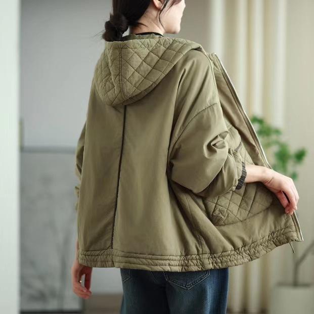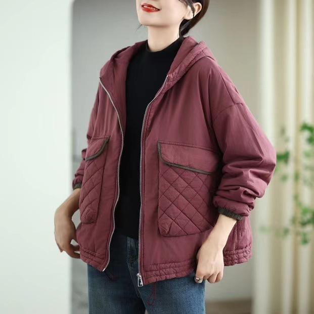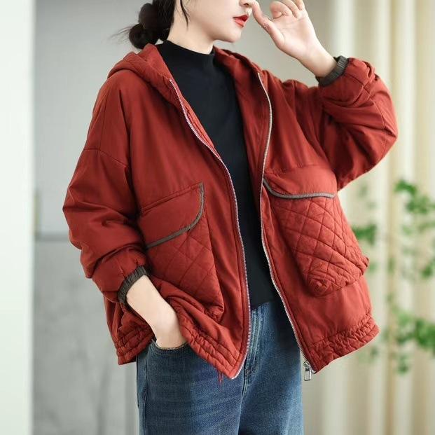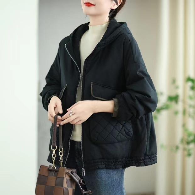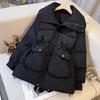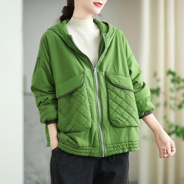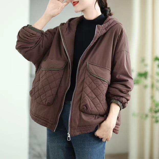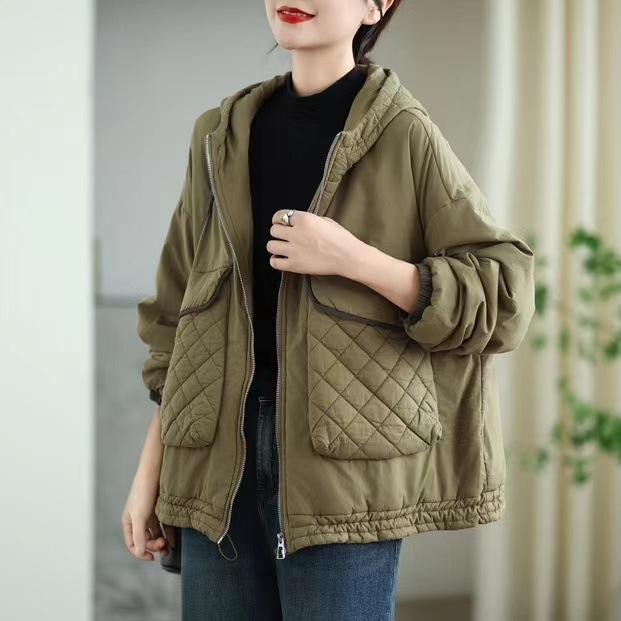 Chaqueta informal con capucha y bolsillo grande para mujer, estilo coreano, de algodón cálido, con costuras de moda, para invierno de 2024