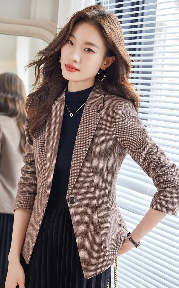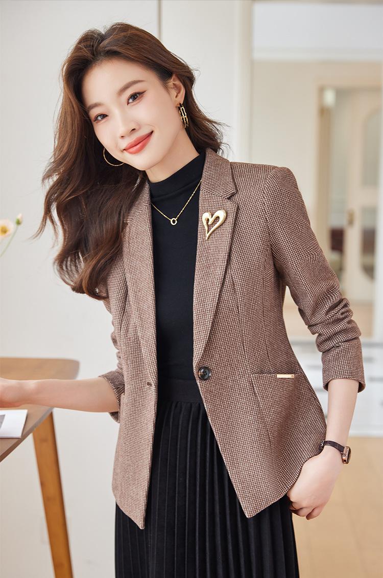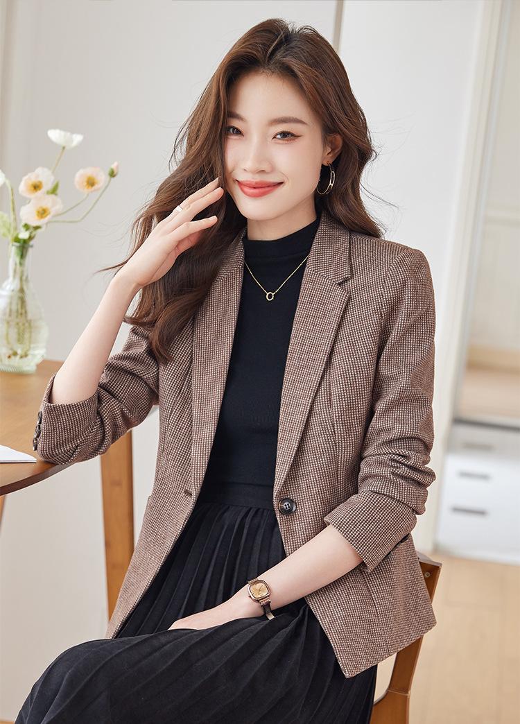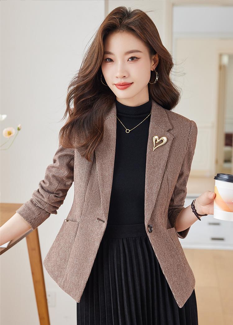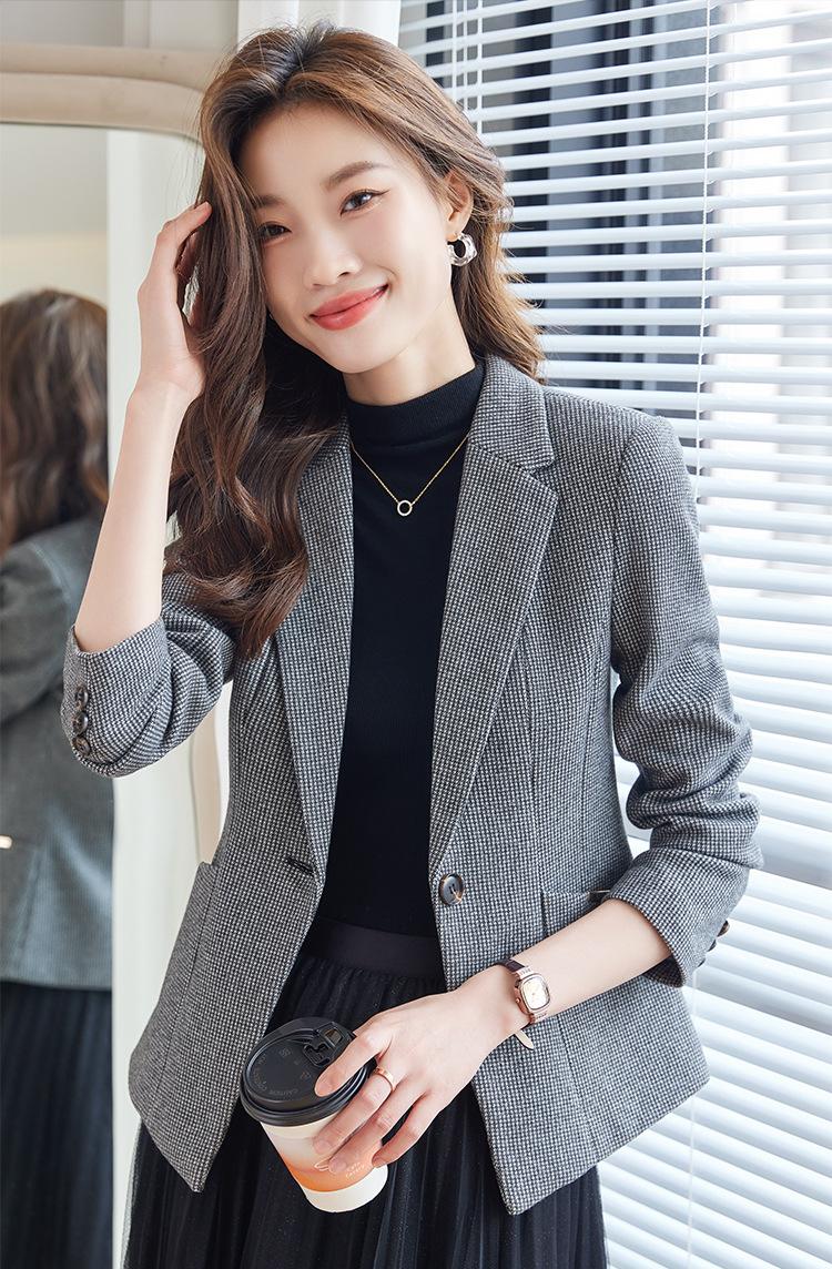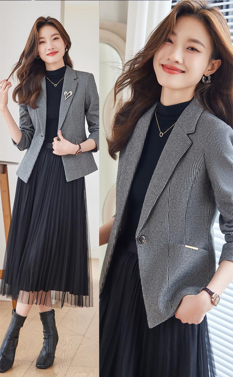 Chaqueta de Traje Pequeña de Cuadros Grises para Mujer 2023 Nuevo Sentido de Alta Gama Casual Elegante X Slim-fit Traje para Viajeros Top