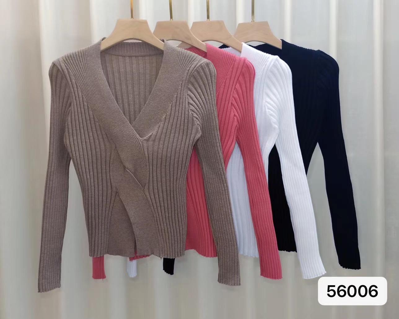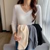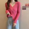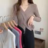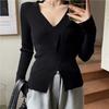 Novedades de Otoño e Invierno para Mujer, Tejidos de Punto Elegantes con Cuello en V para Exterior y para Fondo, Tops de Moda Slim de Manga Larga