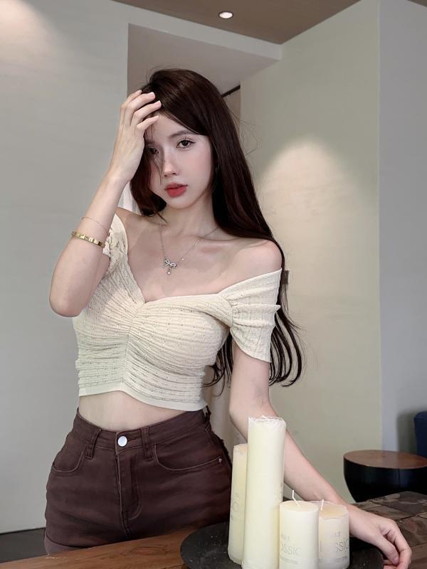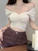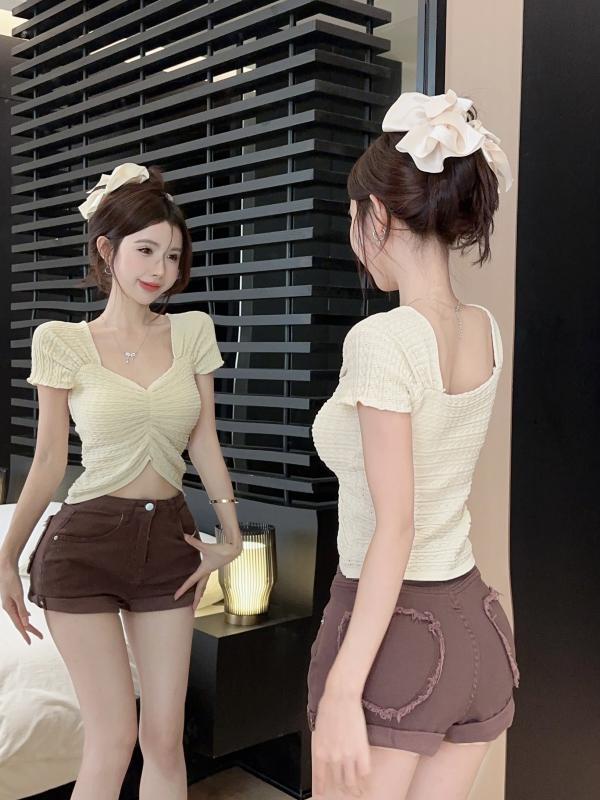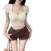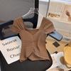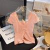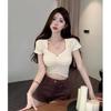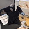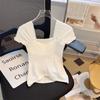 Deseo Puro Chica Caliente Cuello Cuadrado Suéter Tejido Clavícula Ombliguera Corta Diseño Nicho Sexy Camiseta Manga Corta Mujer Verano