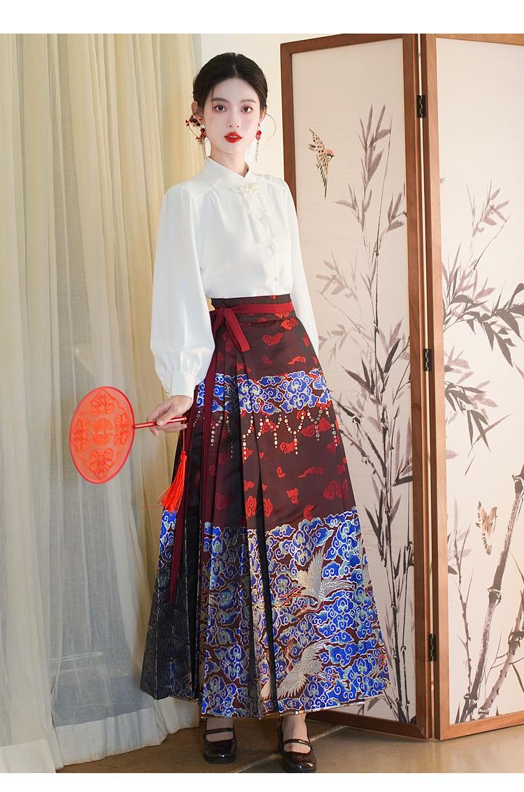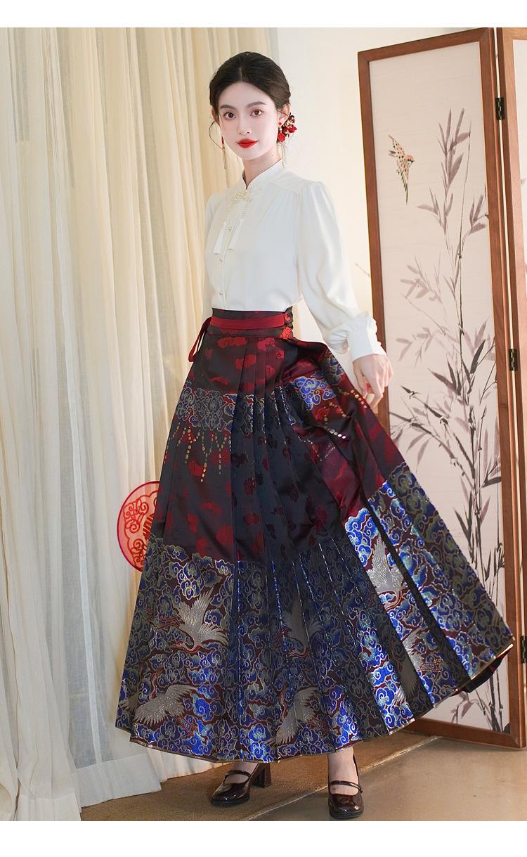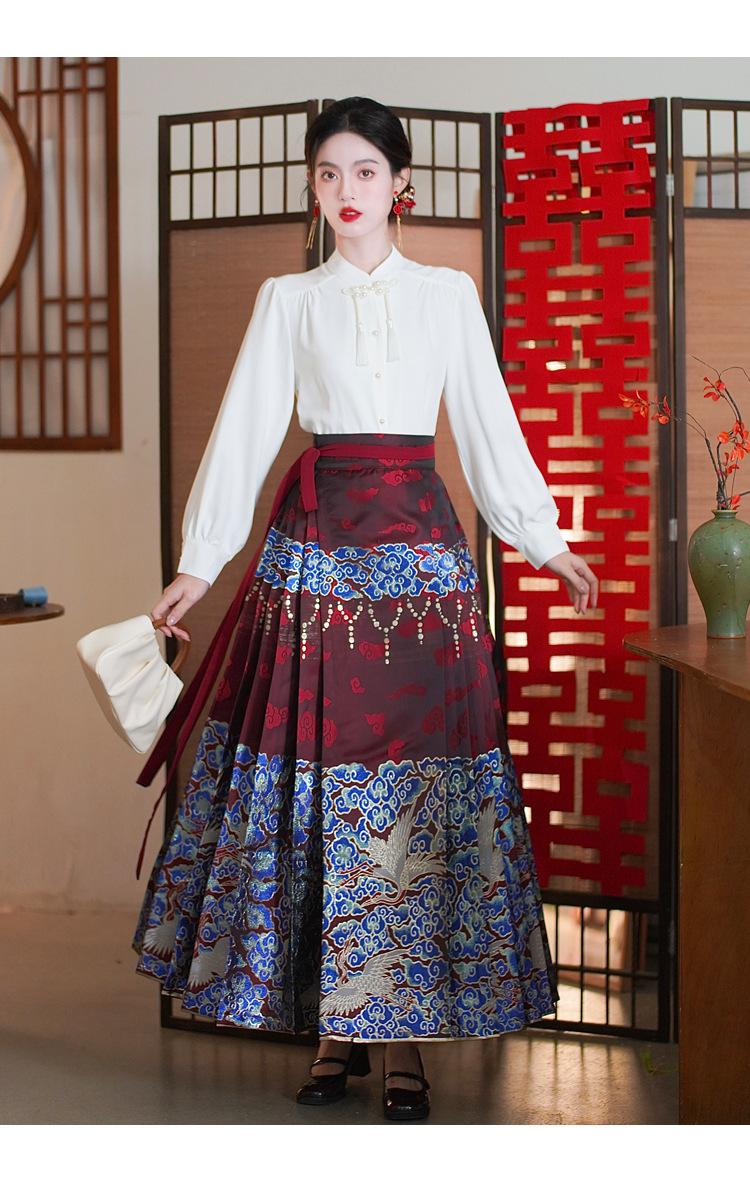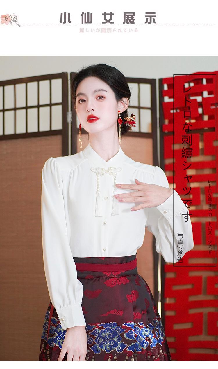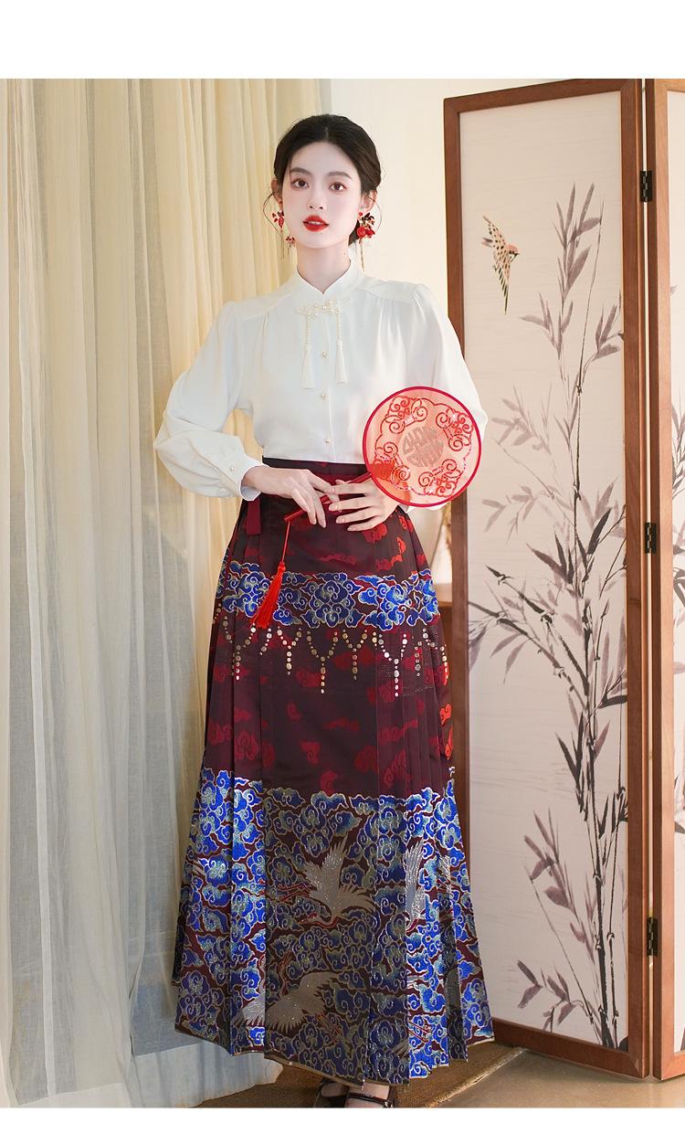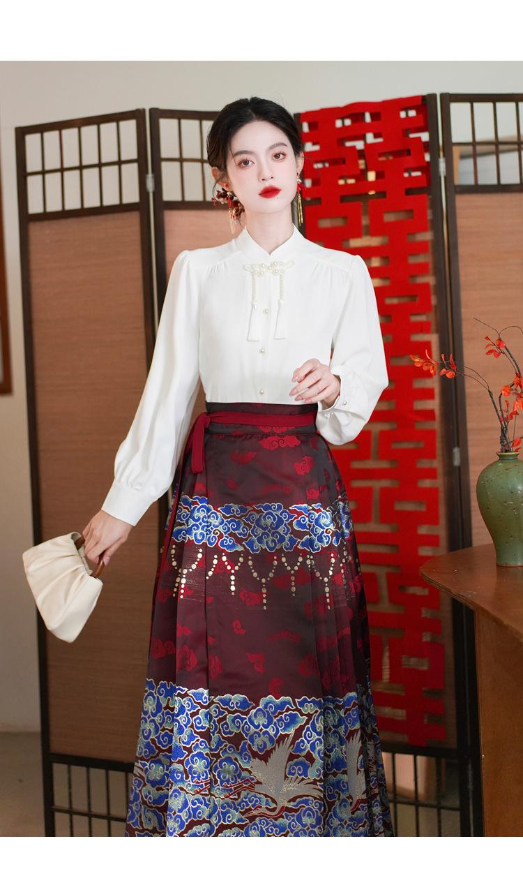 Nuevo Bordado Nacional Estilo Chino Hanfu Dinastía Ming Otoño 2025 Nuevo Top de Mujer Set Falda Mamian Retro Mejorada
