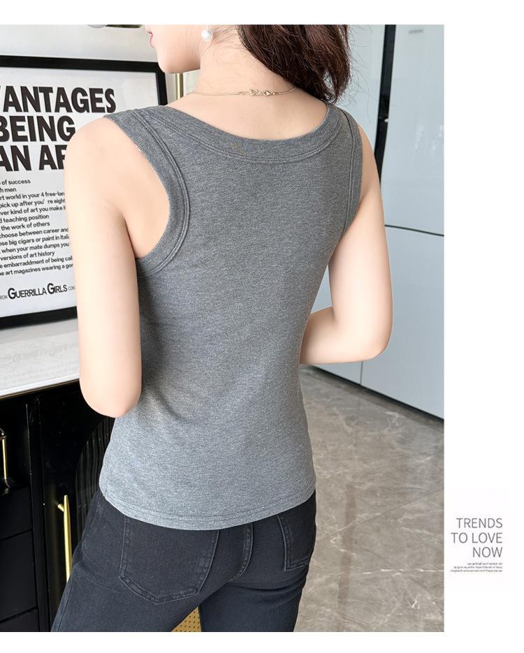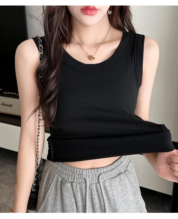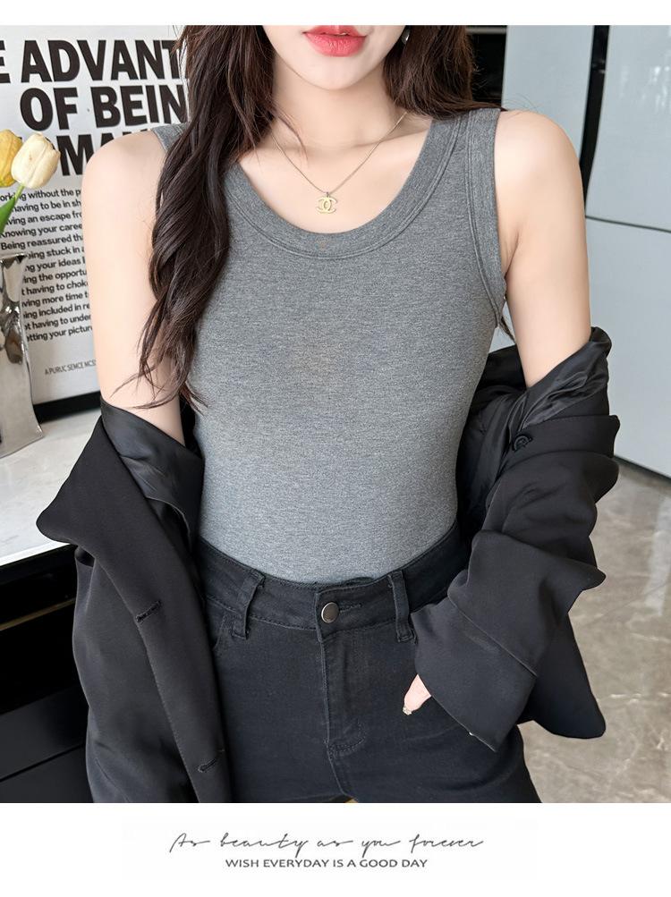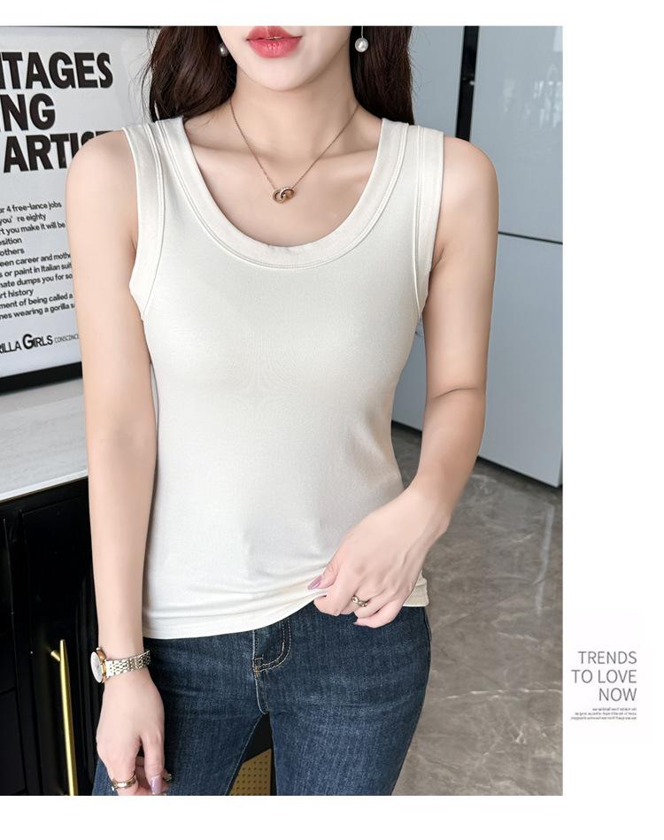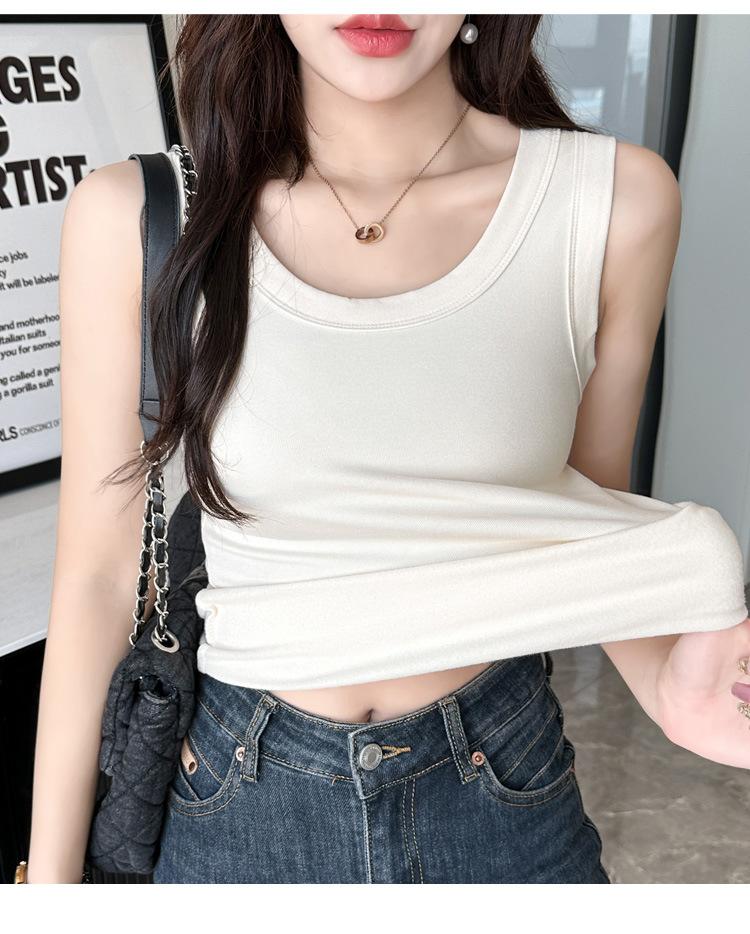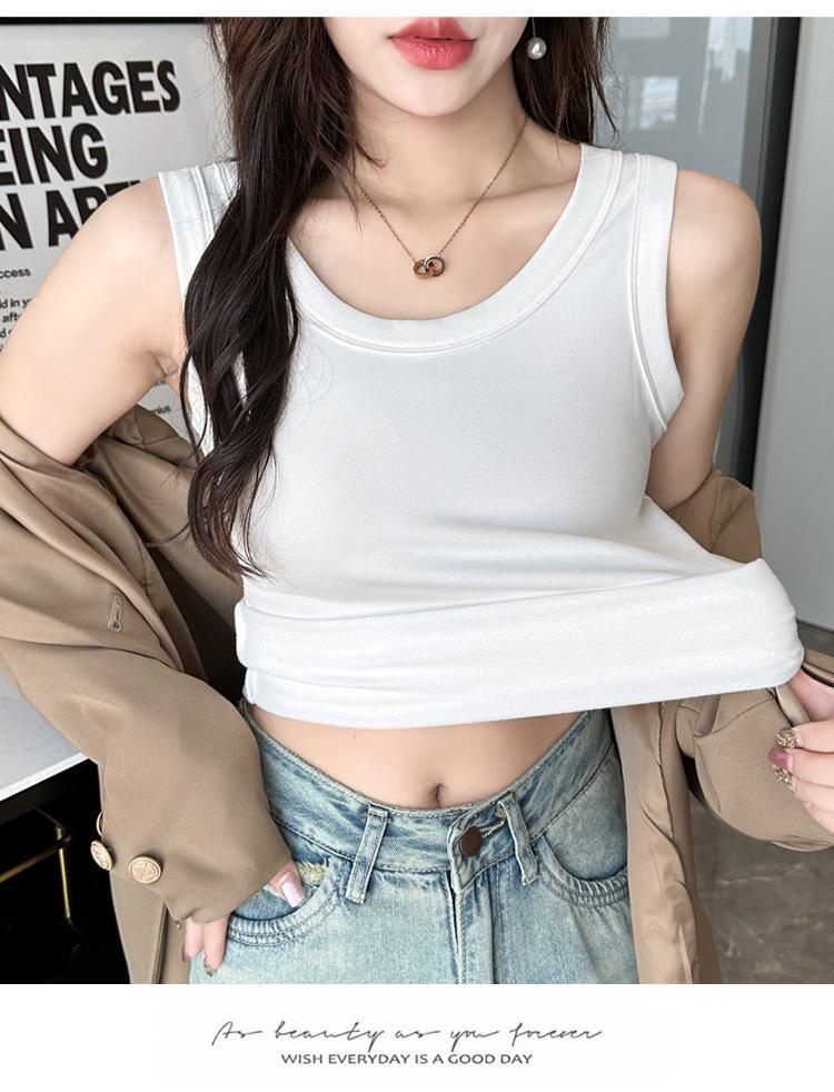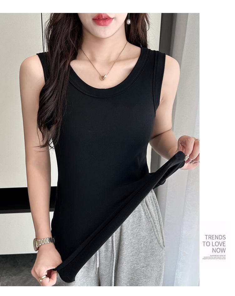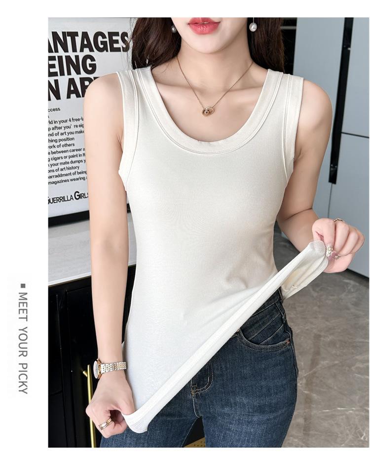 Chaleco cálido de otoño e invierno para mujer, camisa base con tirantes forrados de vellón, nuevo top ajustado, adelgazante, sin mangas, combinable con todo para primavera y otoño.