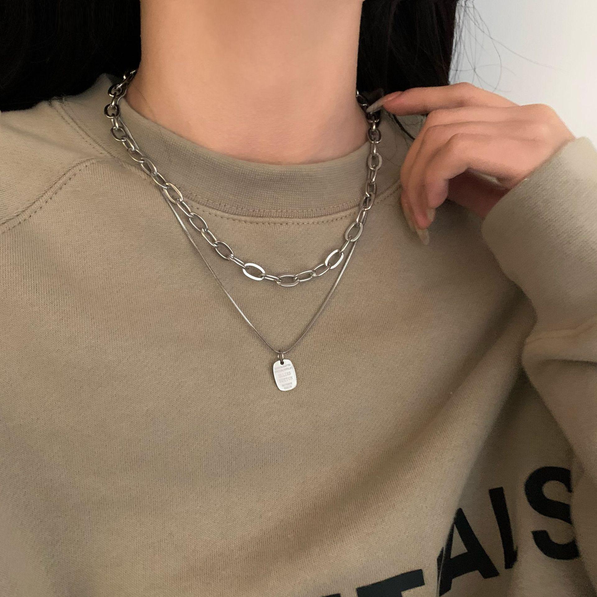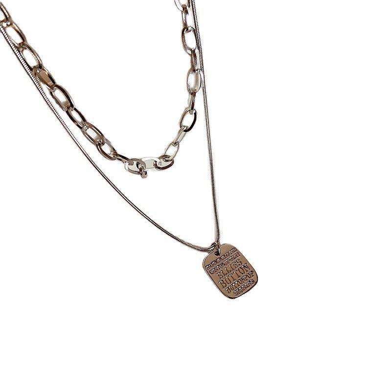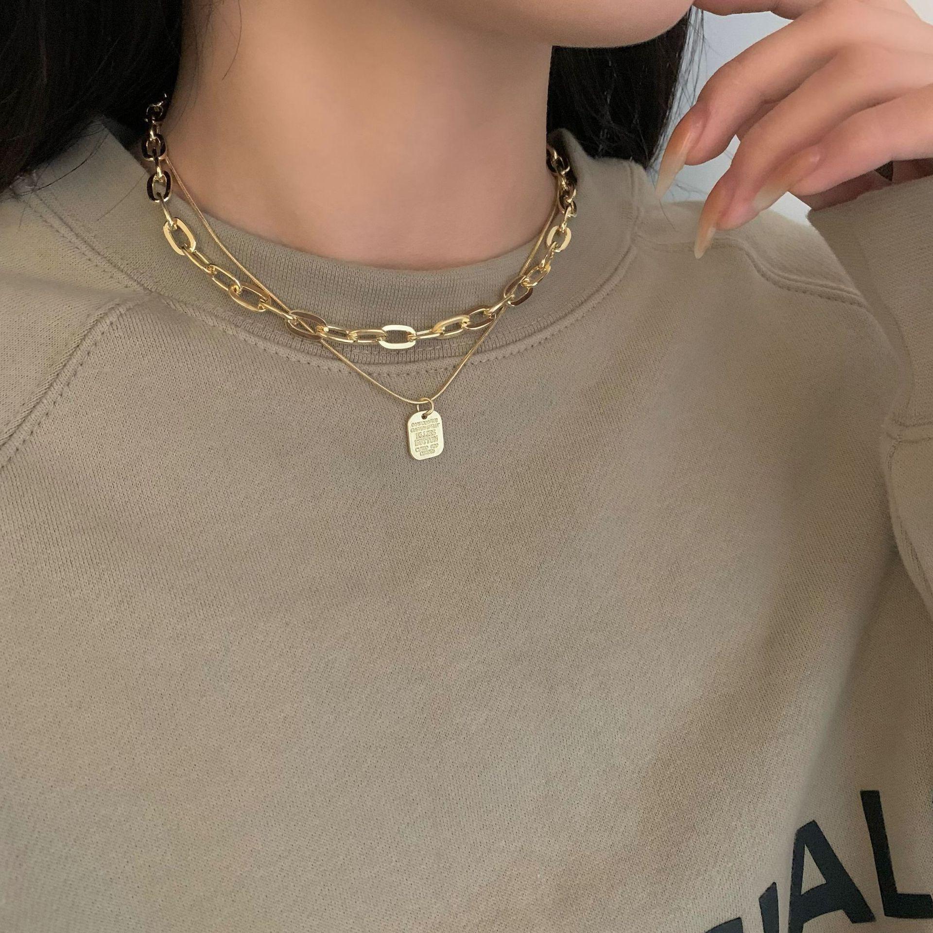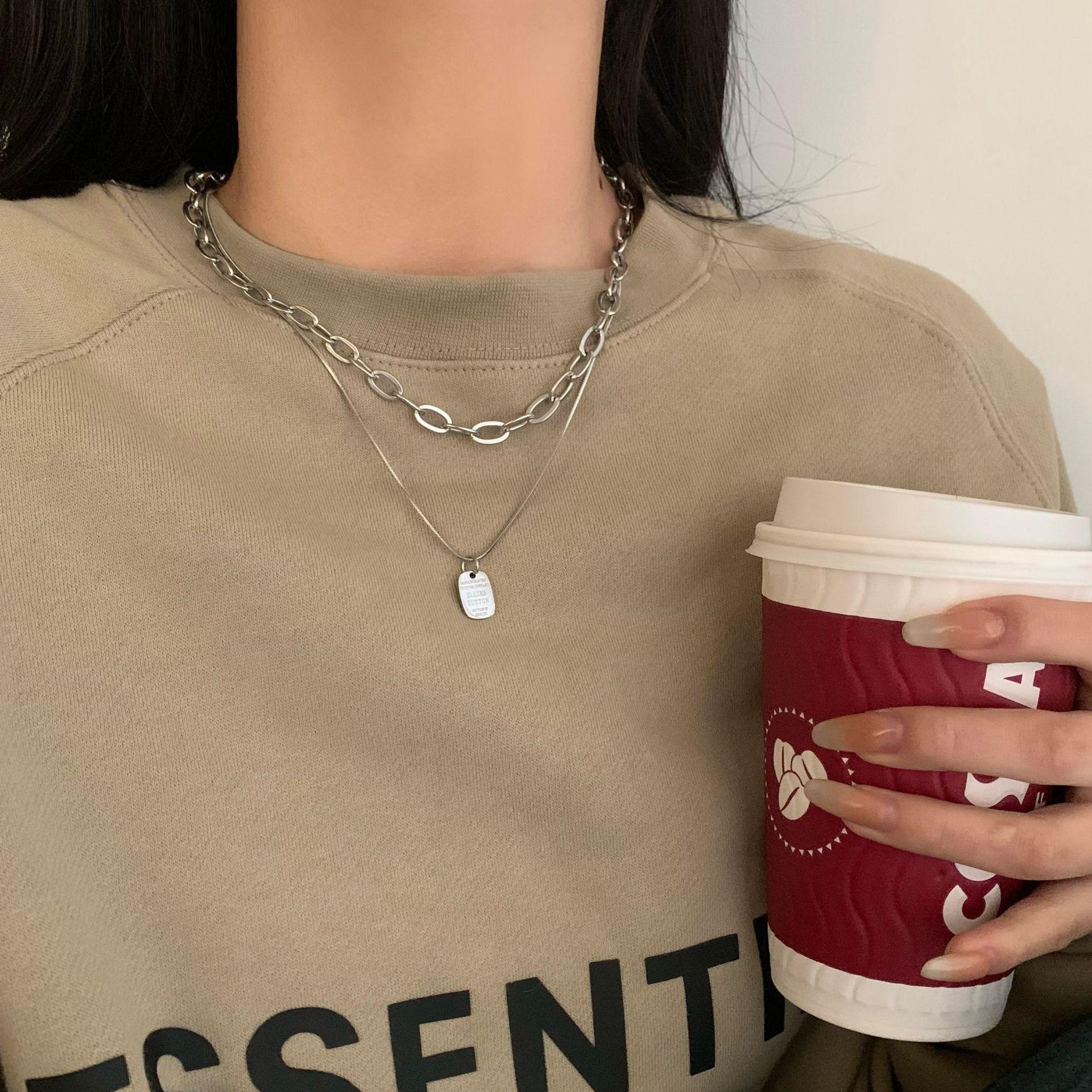 Collar Personalizado de Doble Capa de Comercio Exterior Collar de Etiqueta de Letra de Moda de Celebridad de Internet Collar Elegante Simple Estilo Ins Cadena para Sudadera