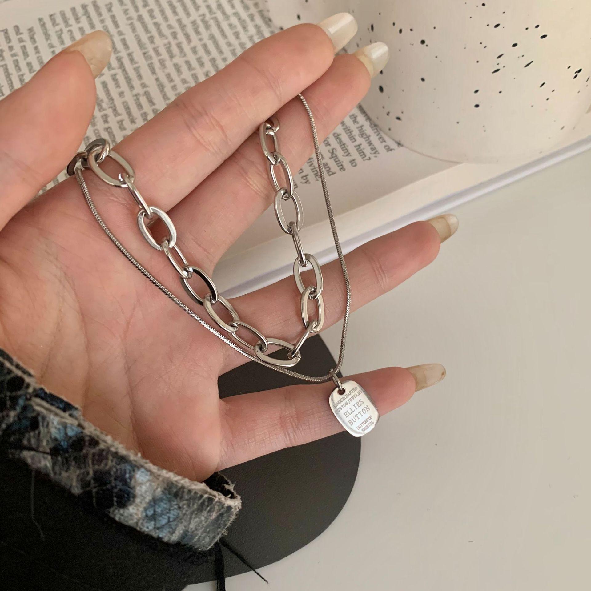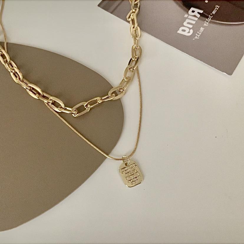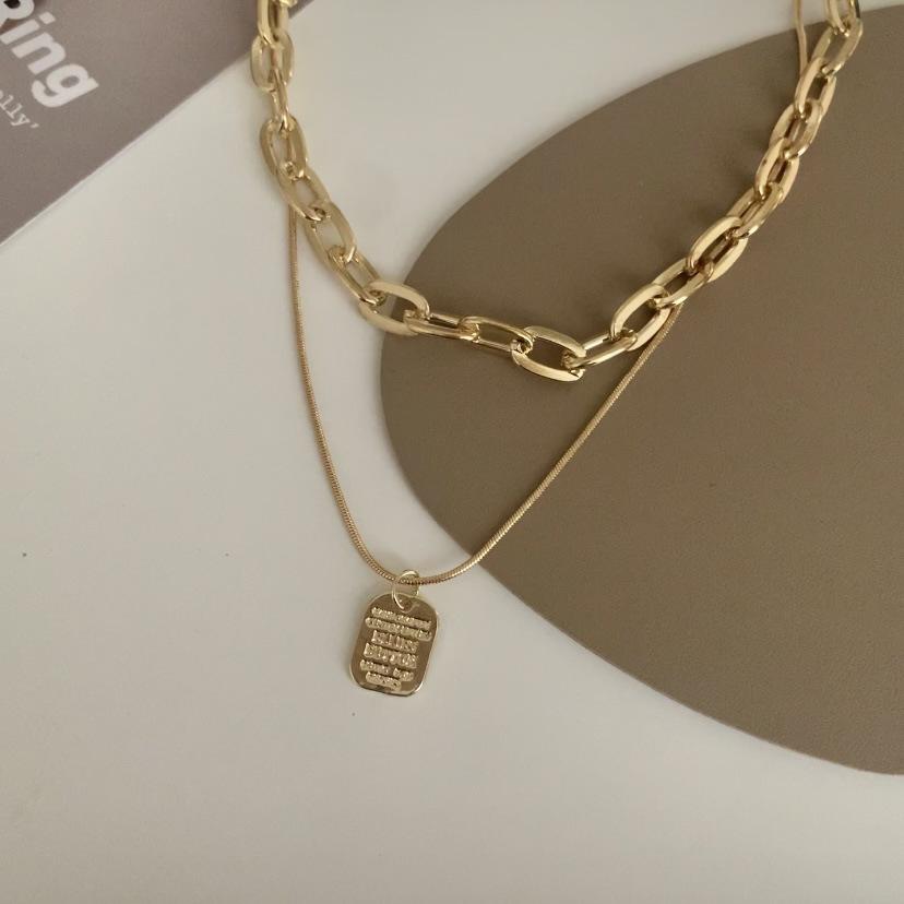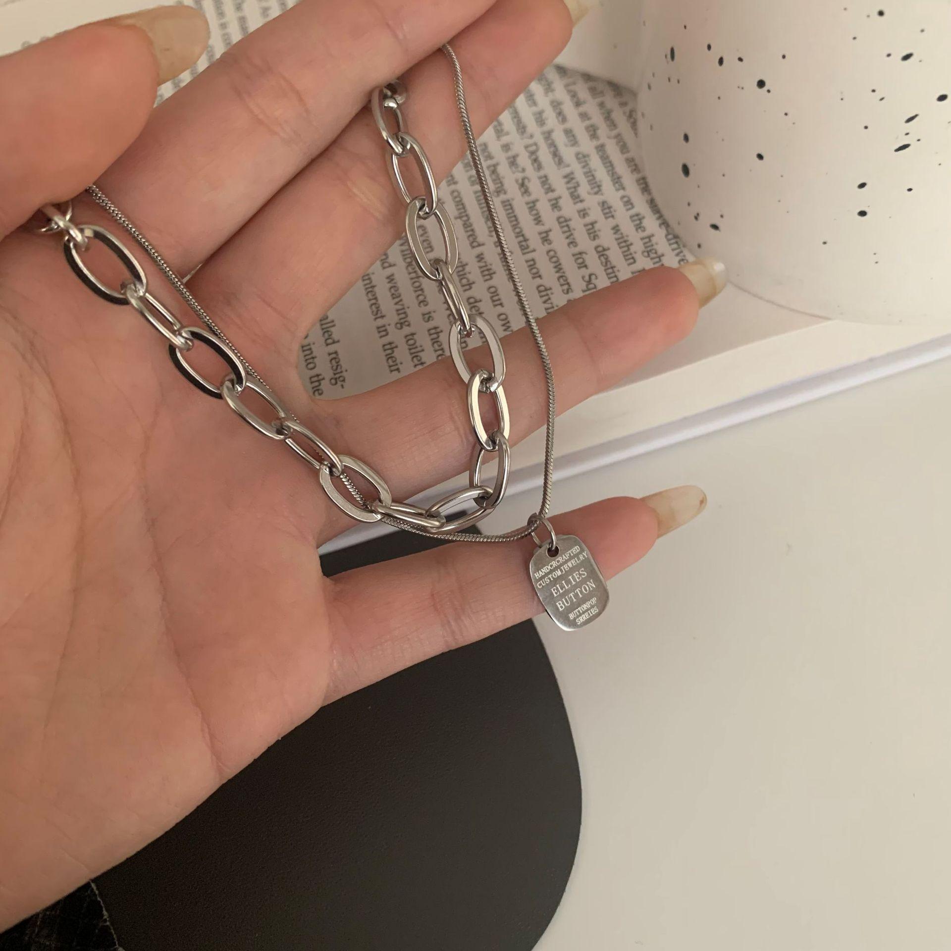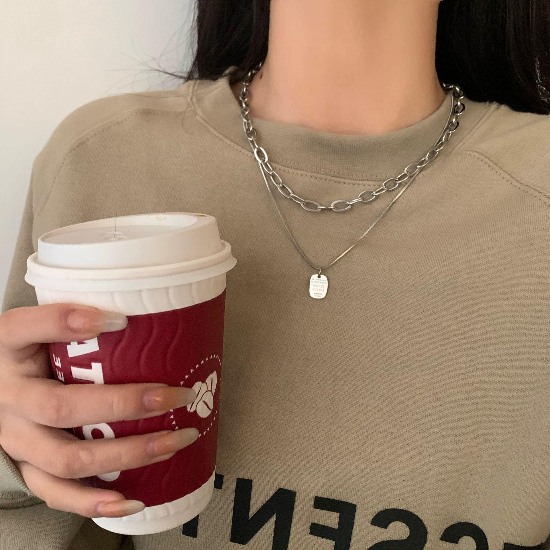 Collar Personalizado de Doble Capa de Comercio Exterior Collar de Etiqueta de Letra de Moda de Celebridad de Internet Collar Elegante Simple Estilo Ins Cadena para Sudadera
