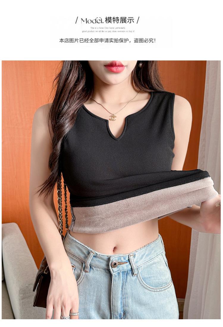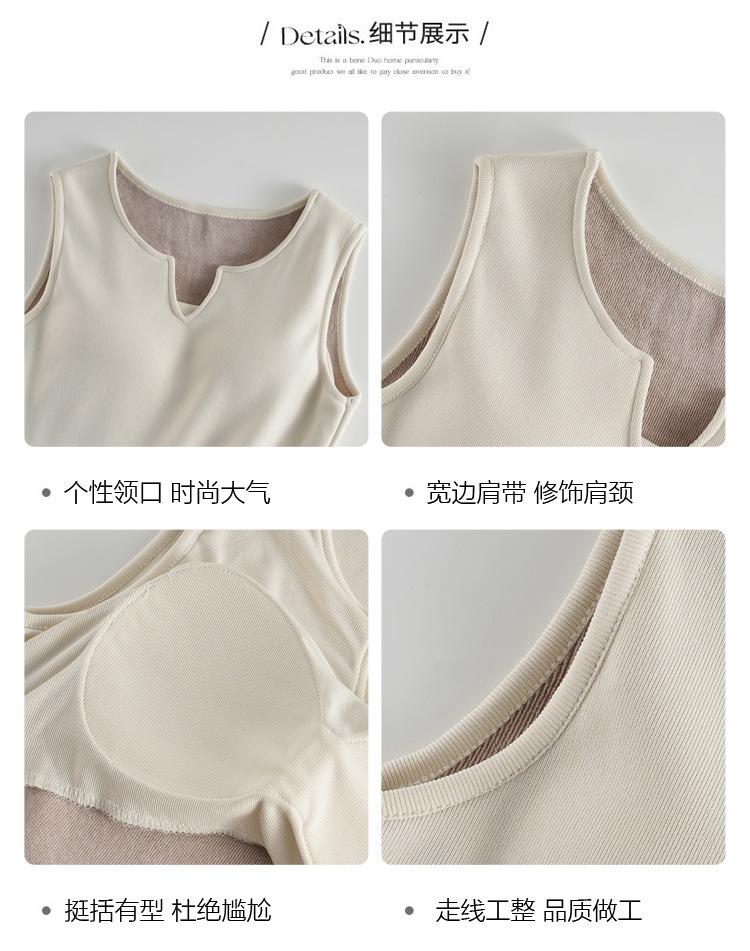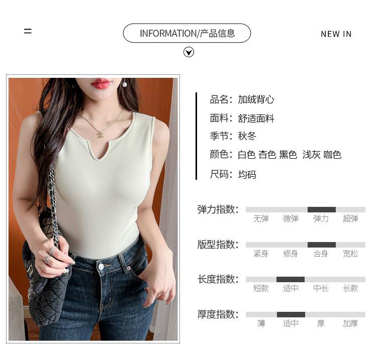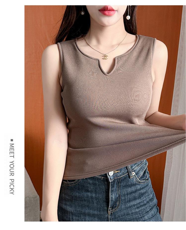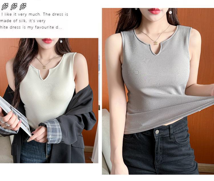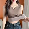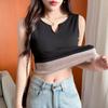 Chaleco Cálido con Almohadilla en el Pecho para Mujer con Forro Polar Grueso Cuello en V Otoño e Invierno Nuevo sin Mangas Base Ajustado Combinable Top de Tirantes