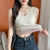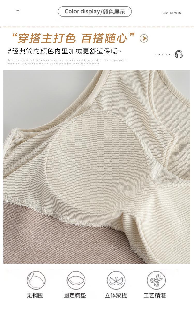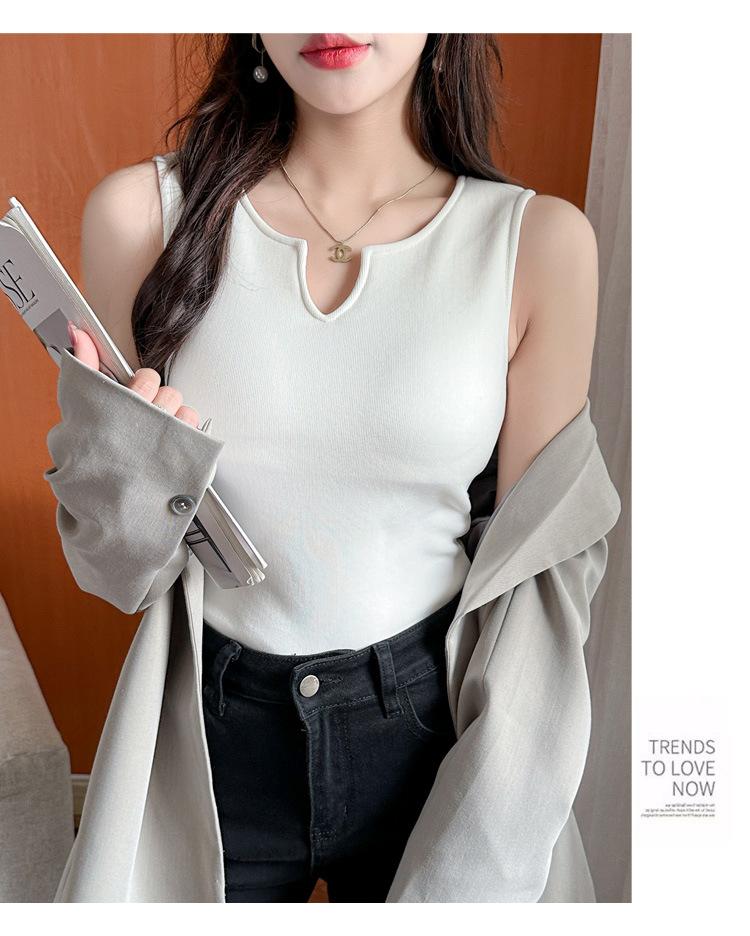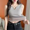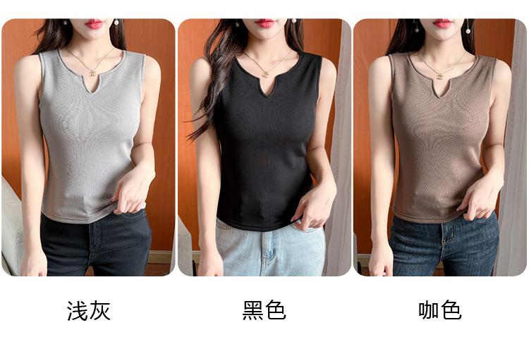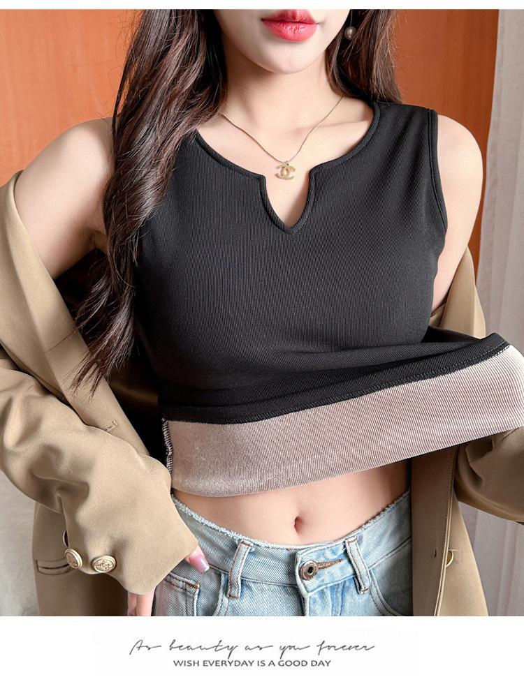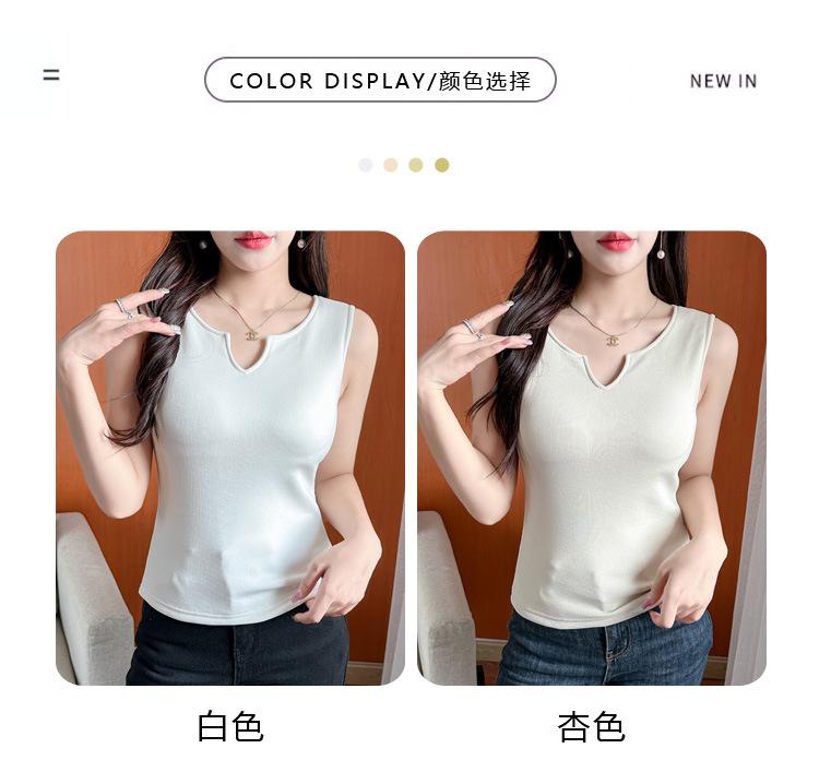 Chaleco Cálido con Almohadilla en el Pecho para Mujer con Forro Polar Grueso Cuello en V Otoño e Invierno Nuevo sin Mangas Base Ajustado Combinable Top de Tirantes