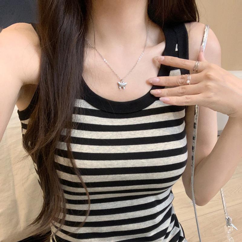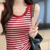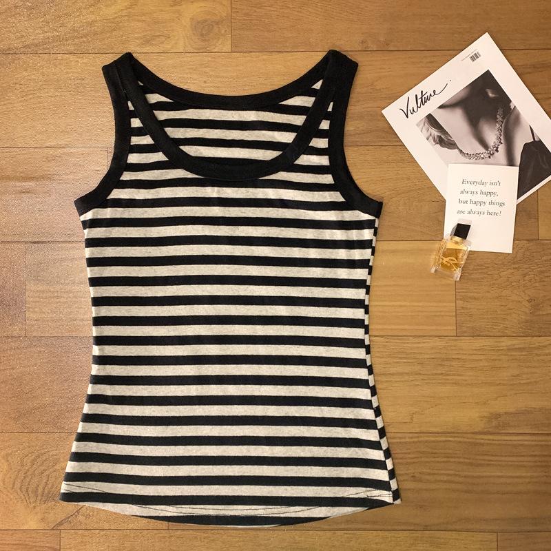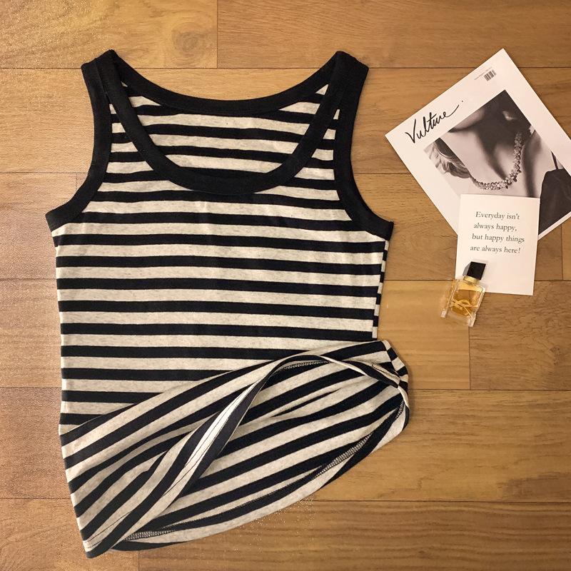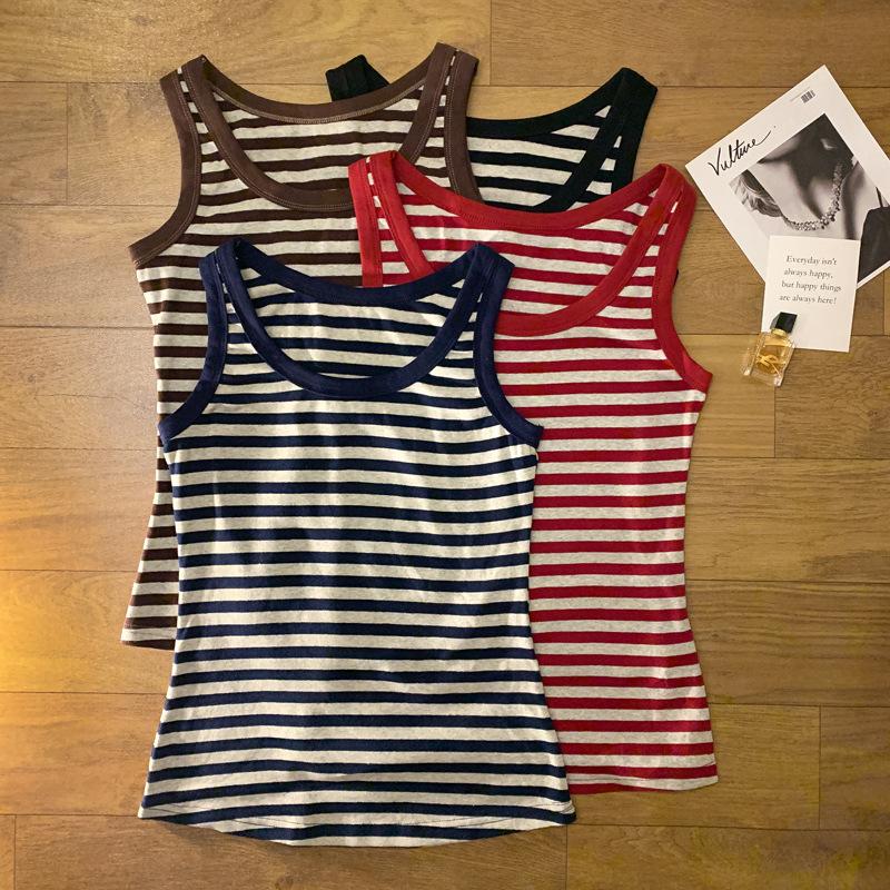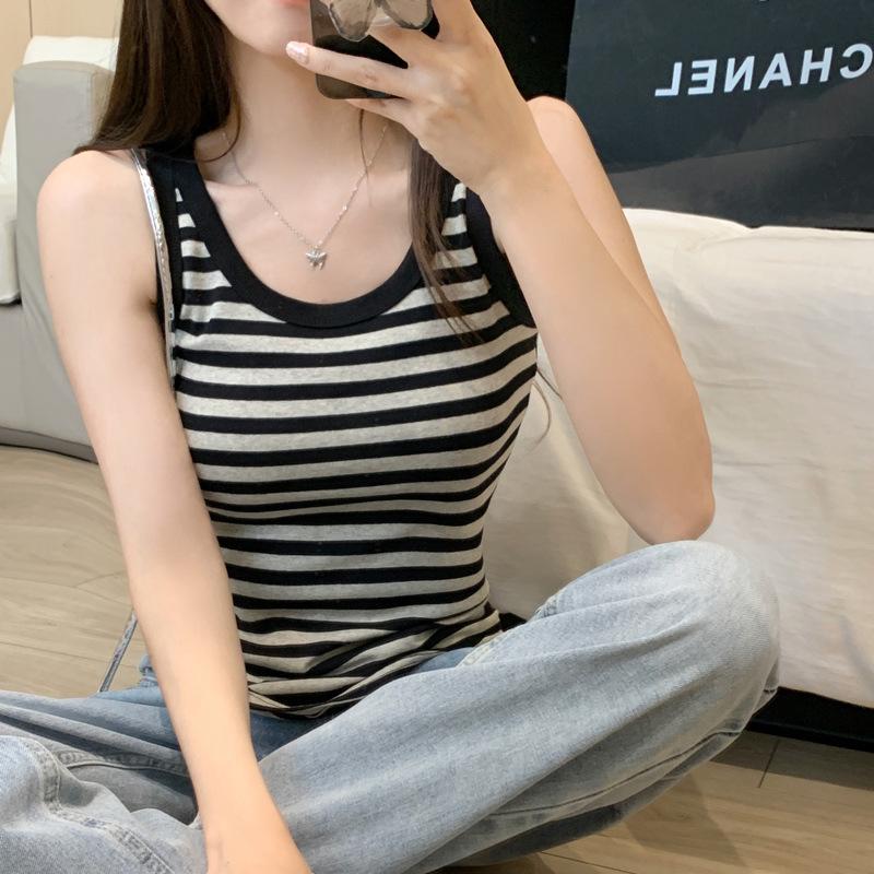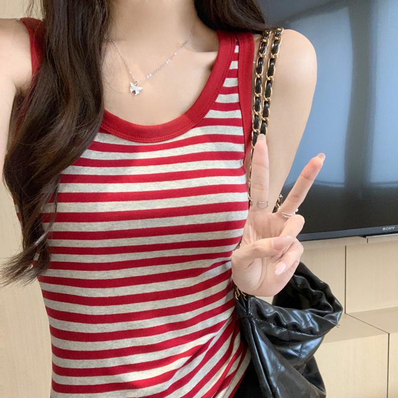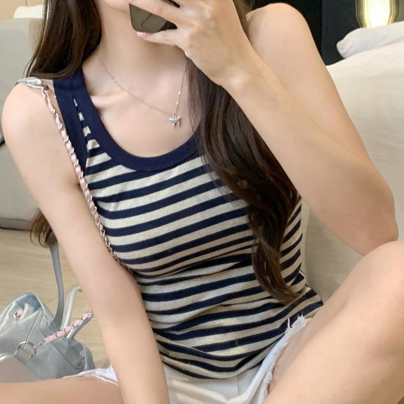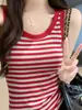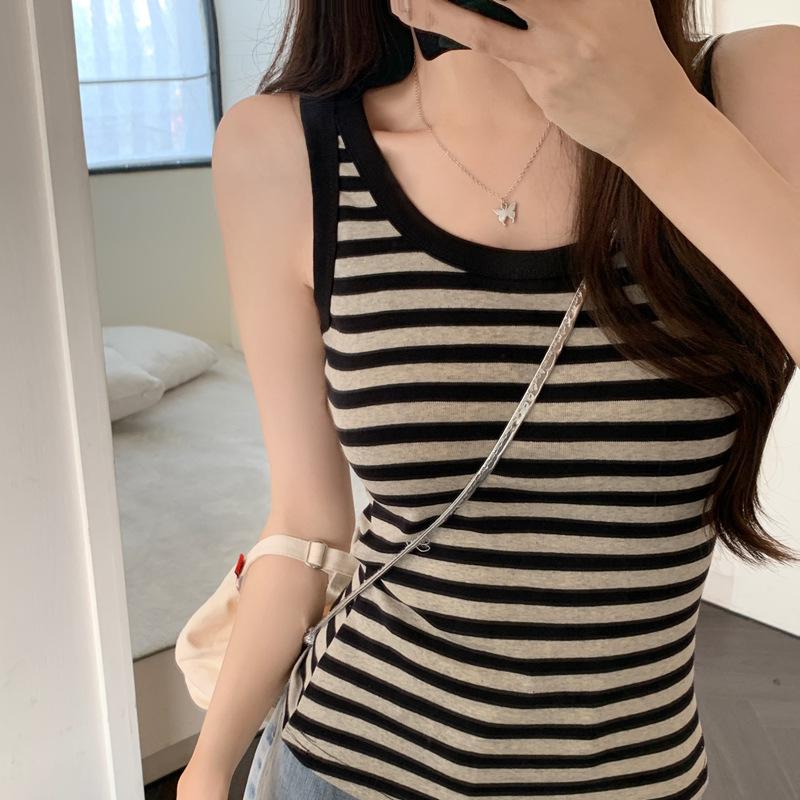 Camisola fina de verano entallada para mujer, con rayas y cuello en U, combinable con todo.