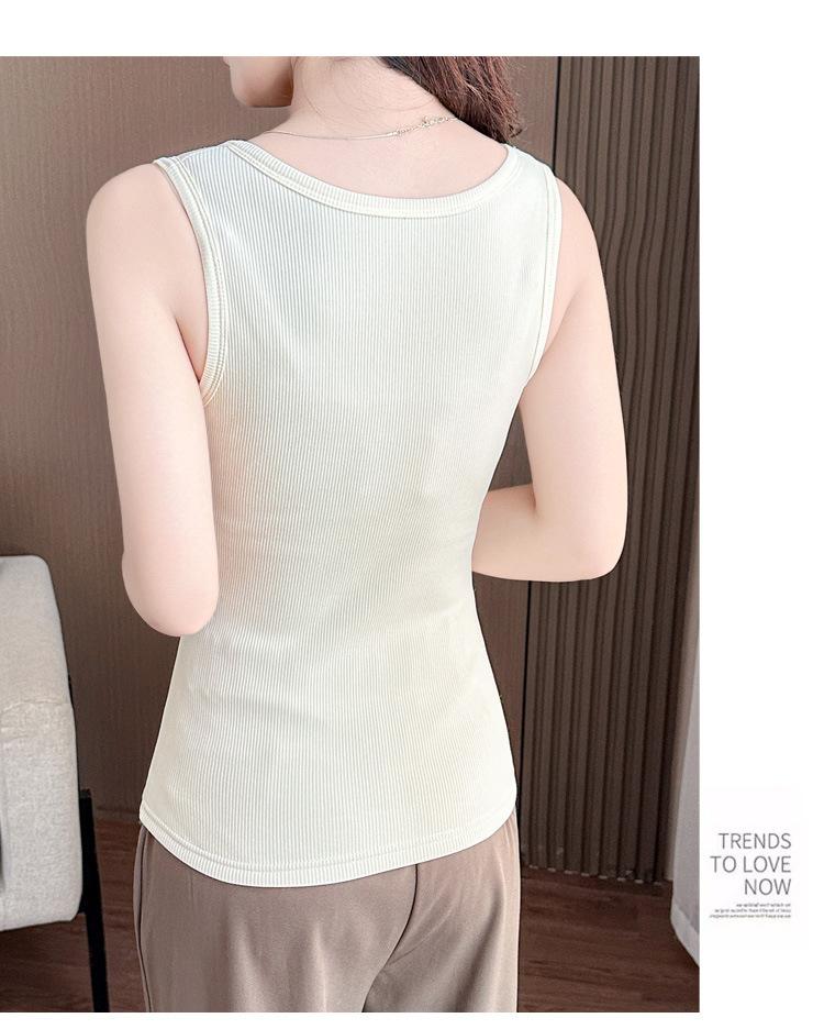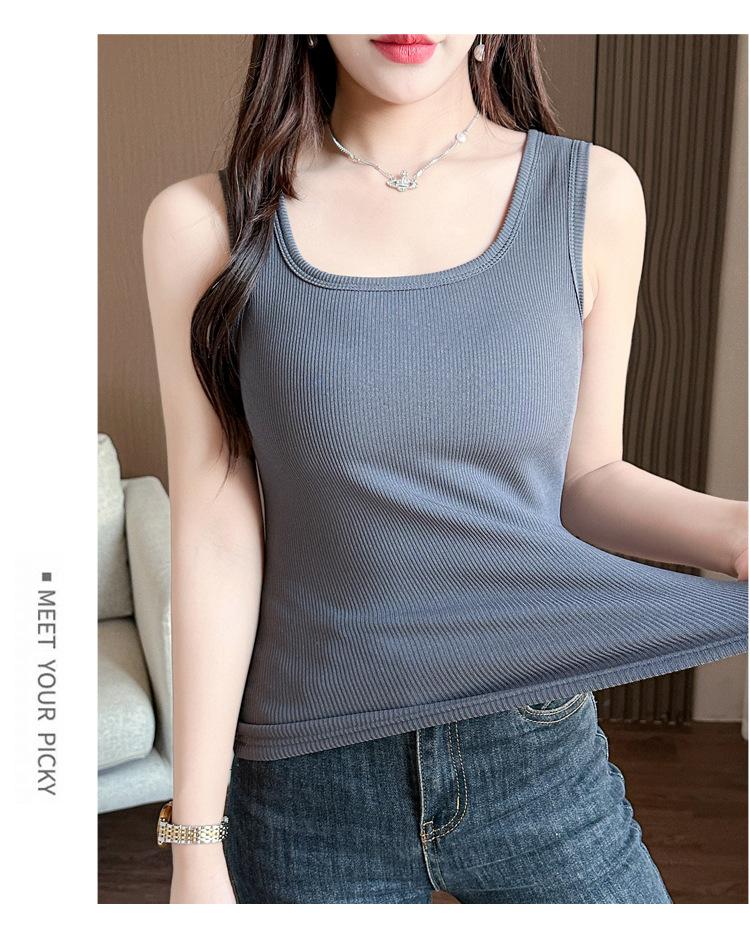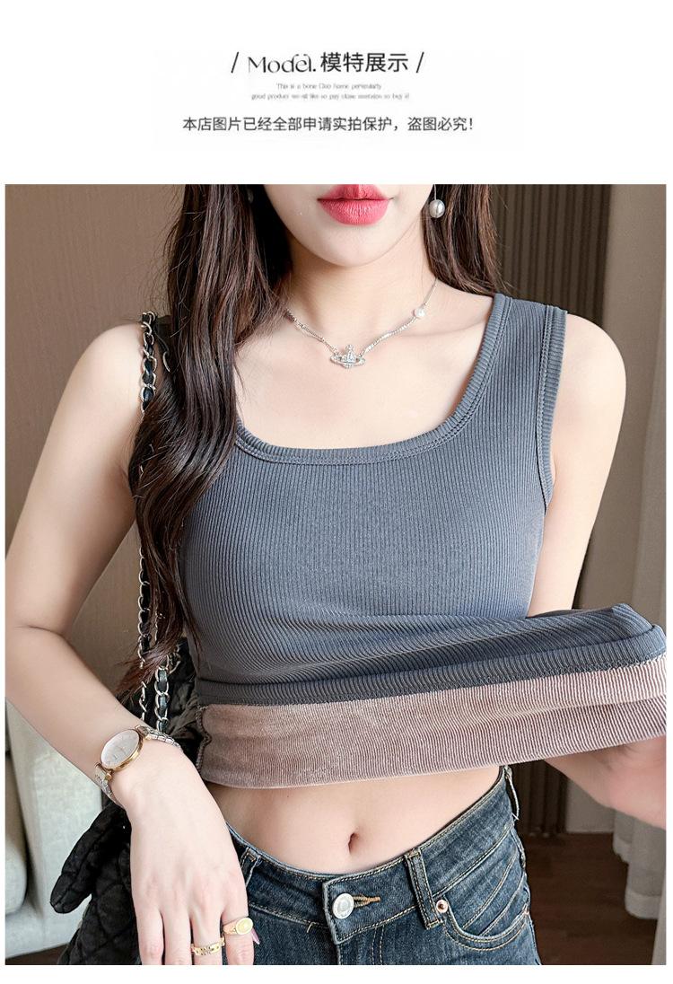 Chaleco Cálido para Mujer con Forro Polar Engrosado de Cuello Redondo de Una Pieza de Terciopelo Otoño e Invierno Ajustado Camiseta Interior Cálida para Mujer