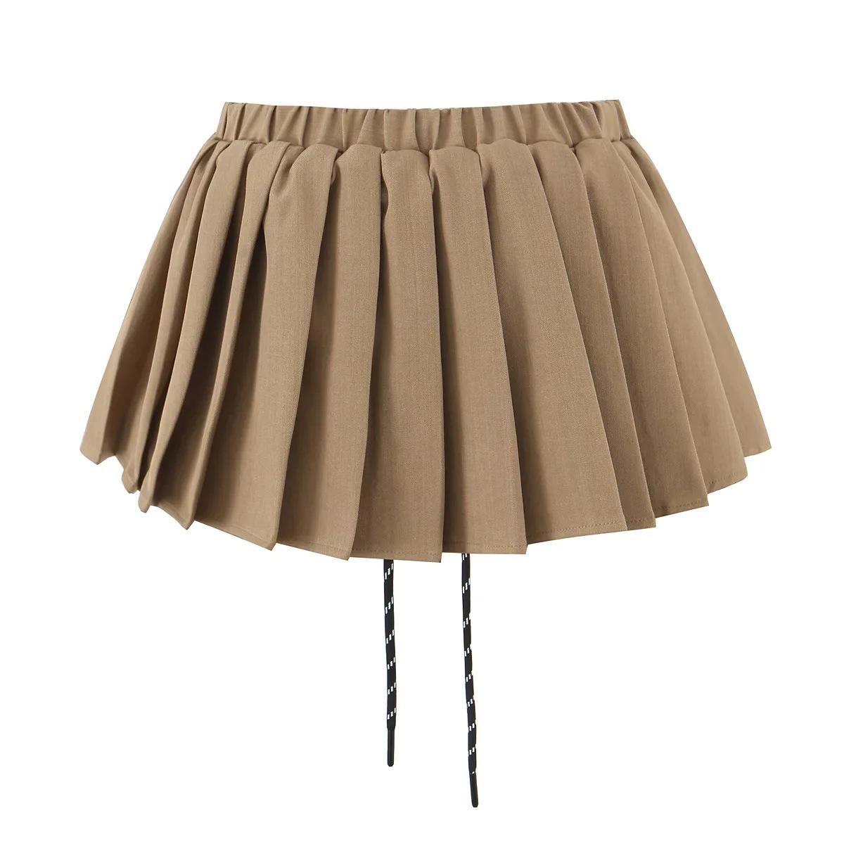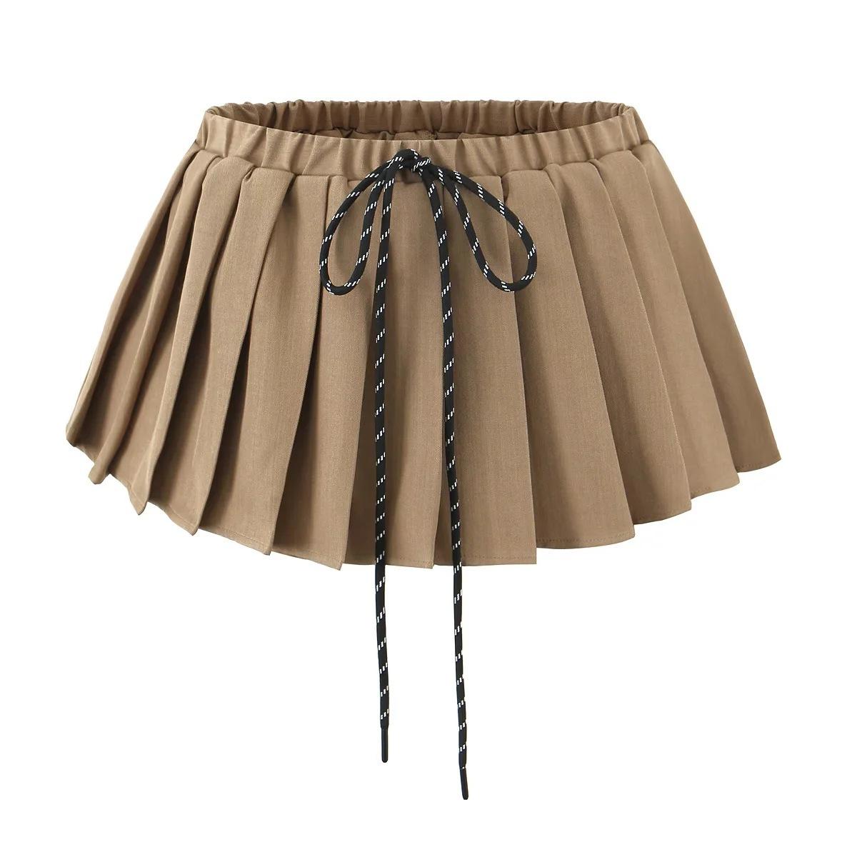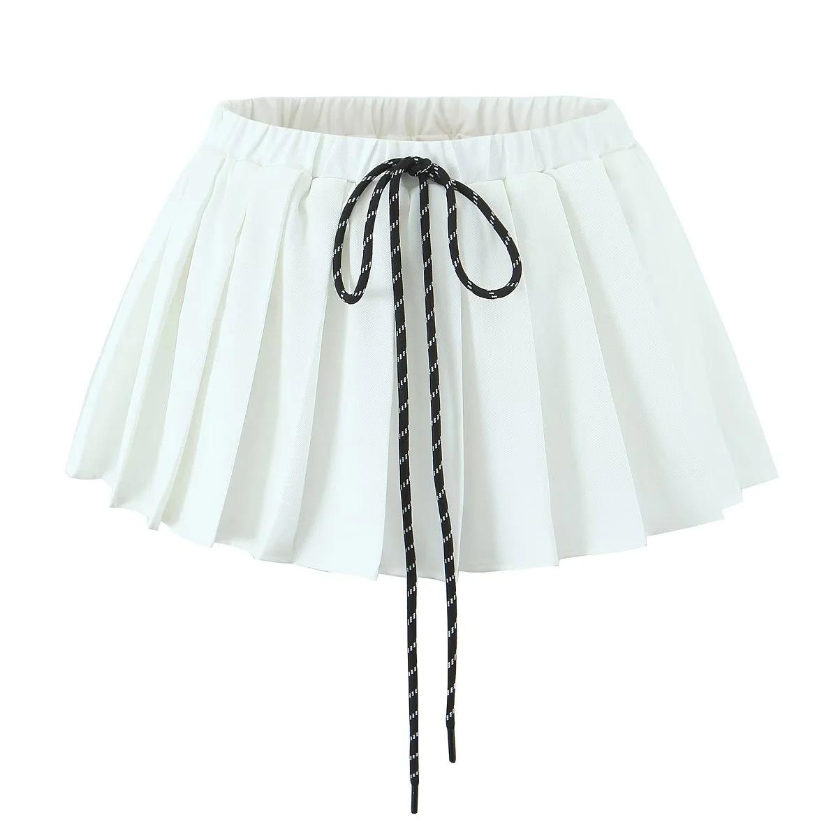 Falda plisada con cordón estilo Academia Americana para mujer, verano 2025, dulce y picante, adelgazante, cintura alta, antiedad, línea A.