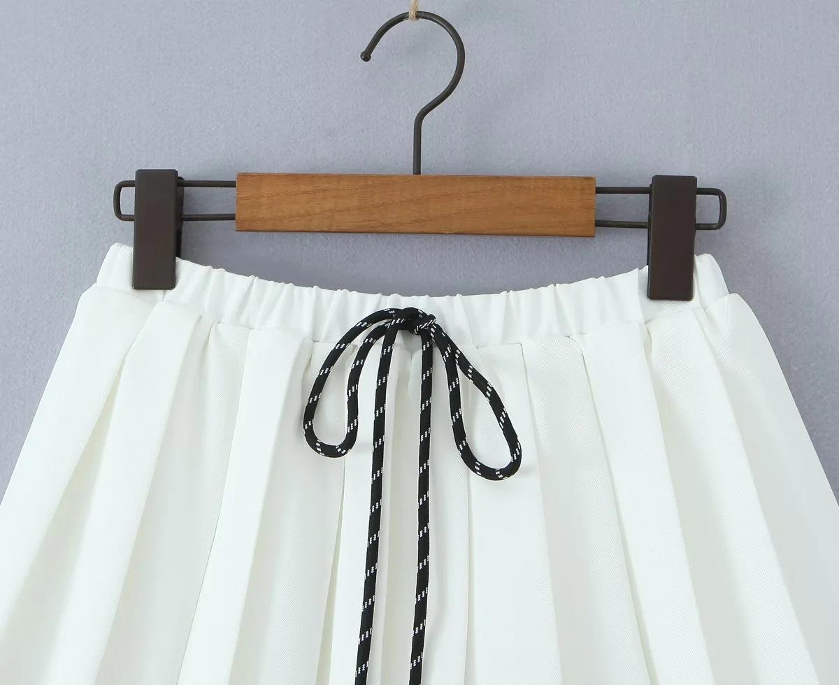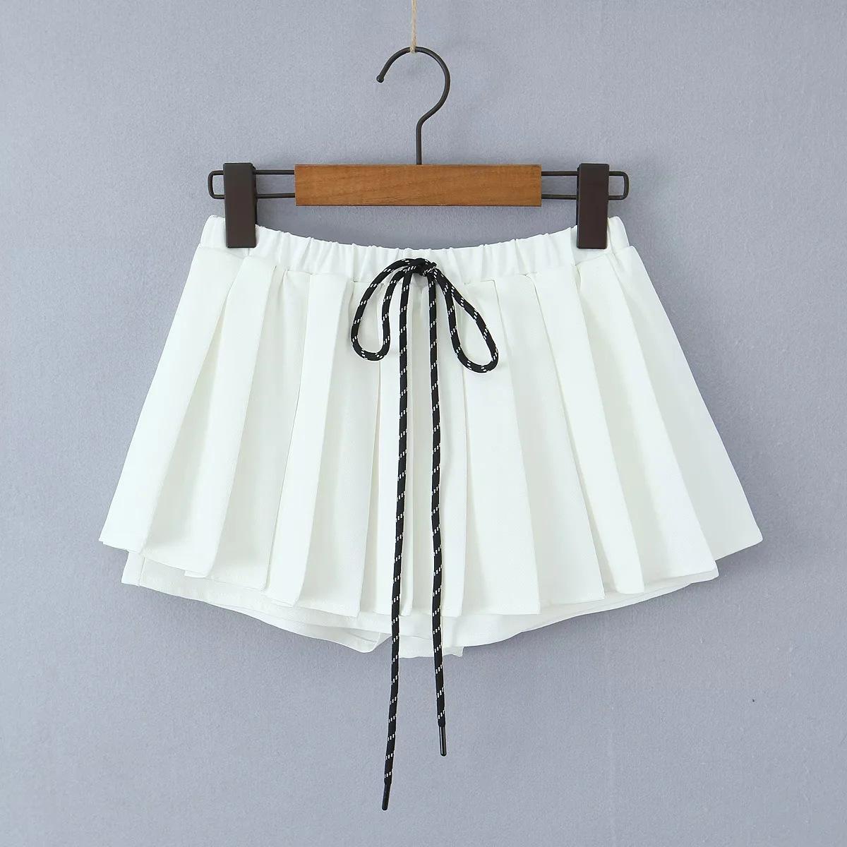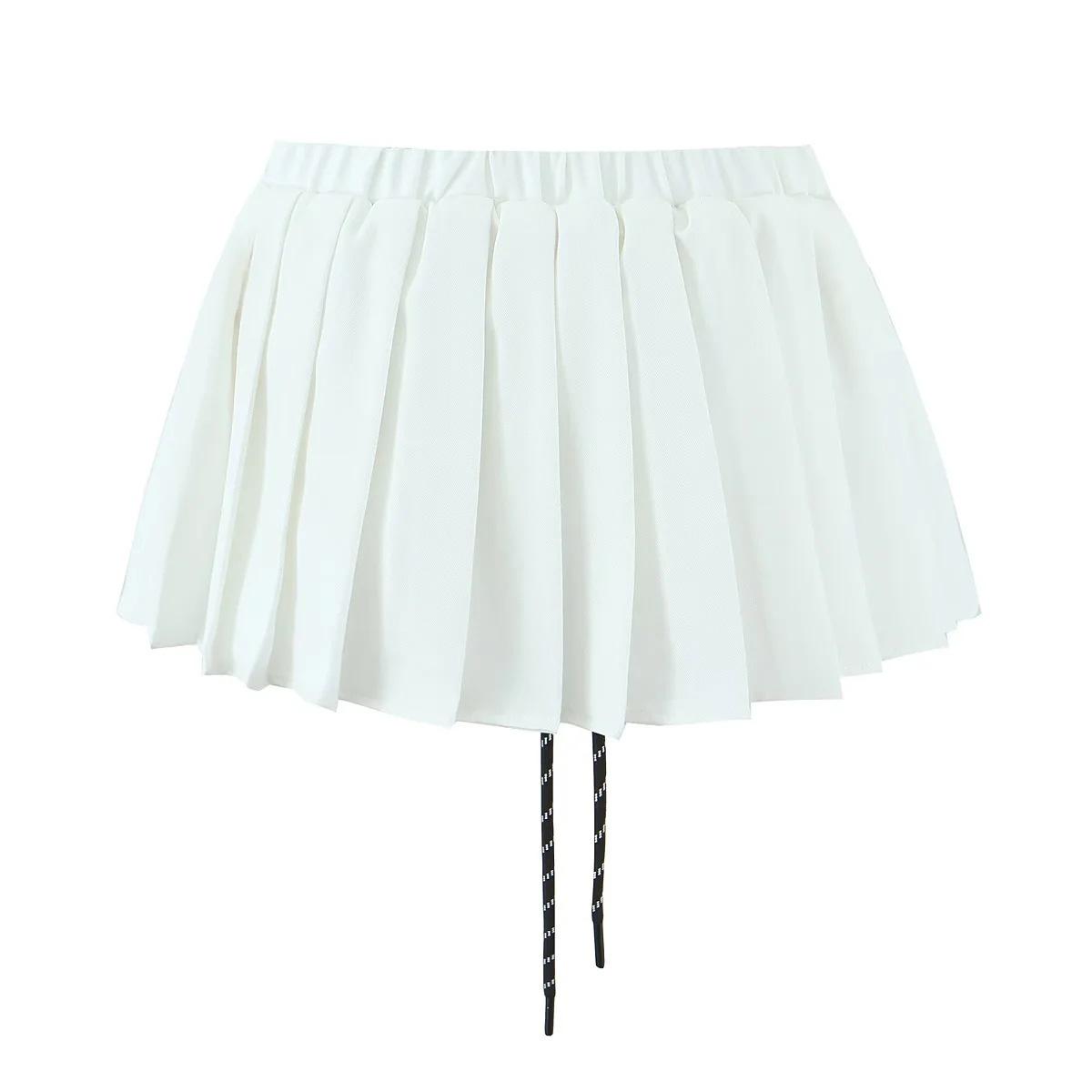Falda plisada con cordón estilo Academia Americana para mujer, verano 2025, dulce y picante, adelgazante, cintura alta, antiedad, línea A.