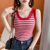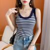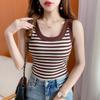 Otoño e invierno Nuevo chaleco térmico a rayas para mujer con forro polar engrosado cuello redondo de una pieza de terciopelo con tirantes ajustado camiseta interior