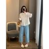 Camisa de manga larga con cuello de encaje y costura de nicho francés de IN BE 25 Spring Design Sense