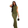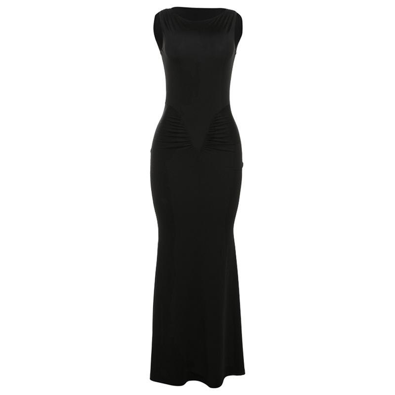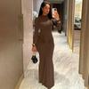 Vestido de manga larga con cuello redondo y plisado ajustado para mujer, primavera y otoño 2024, disponible en stock, venta al por mayor.