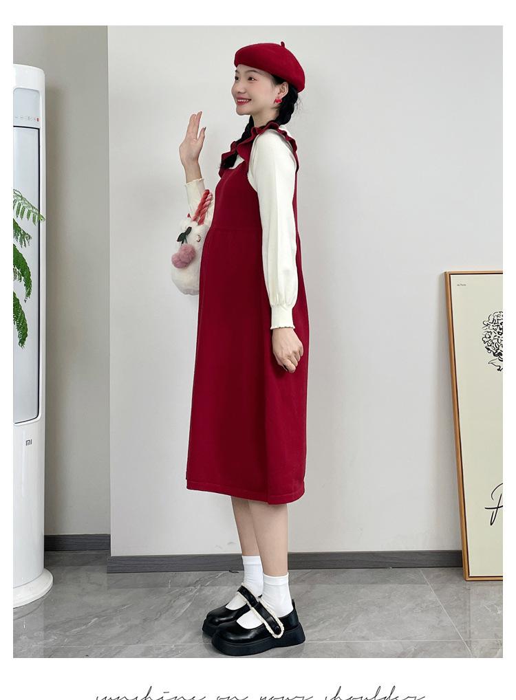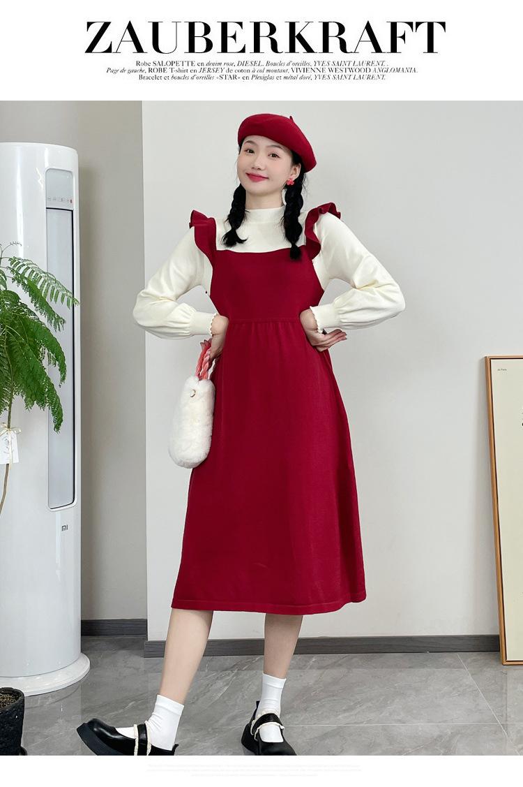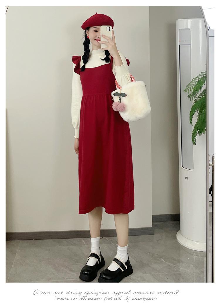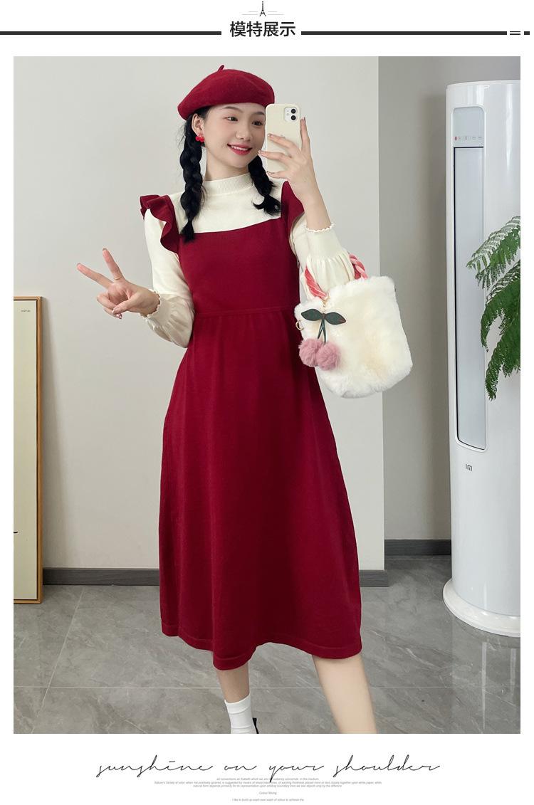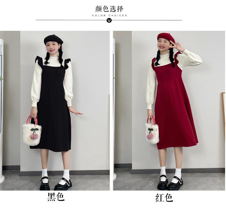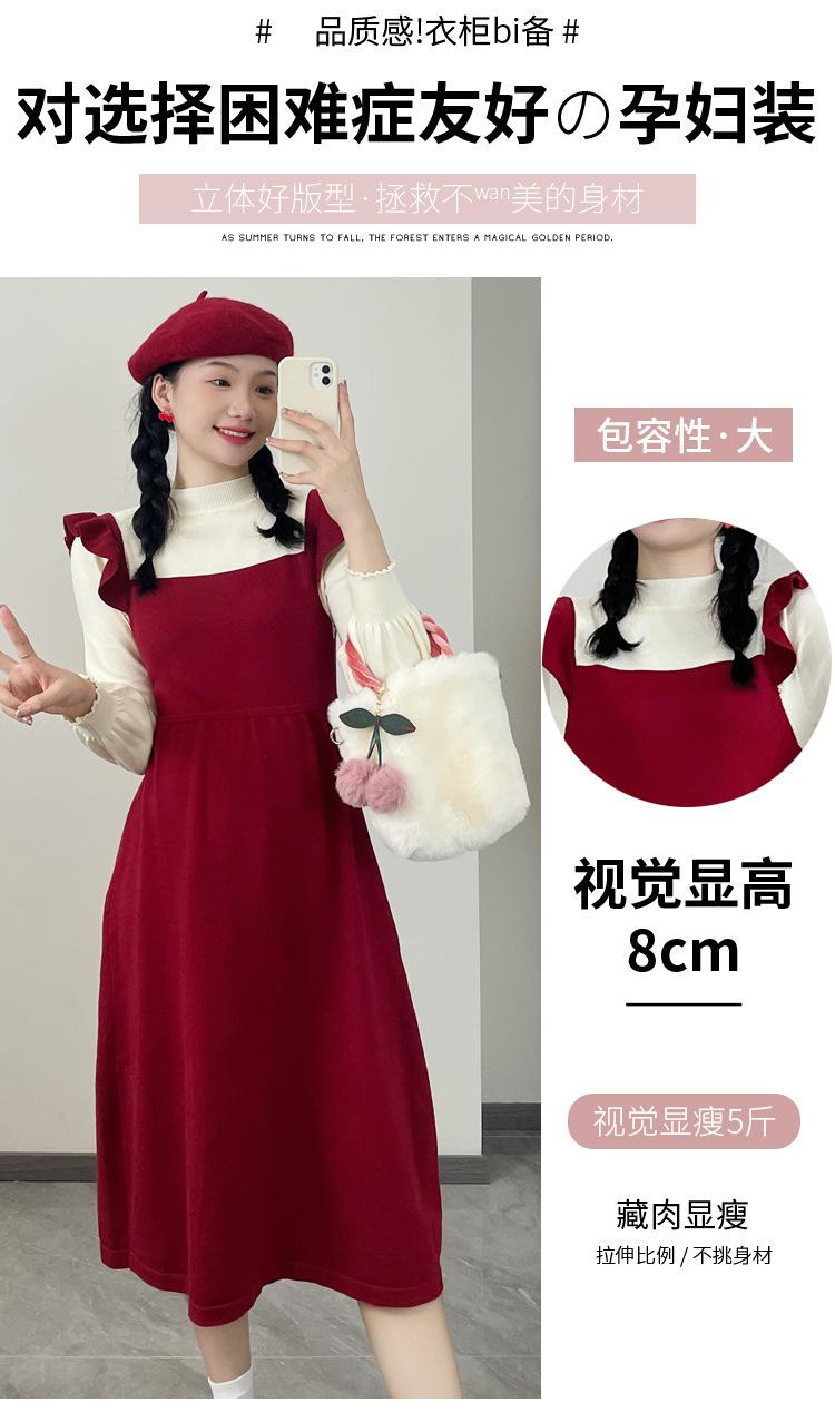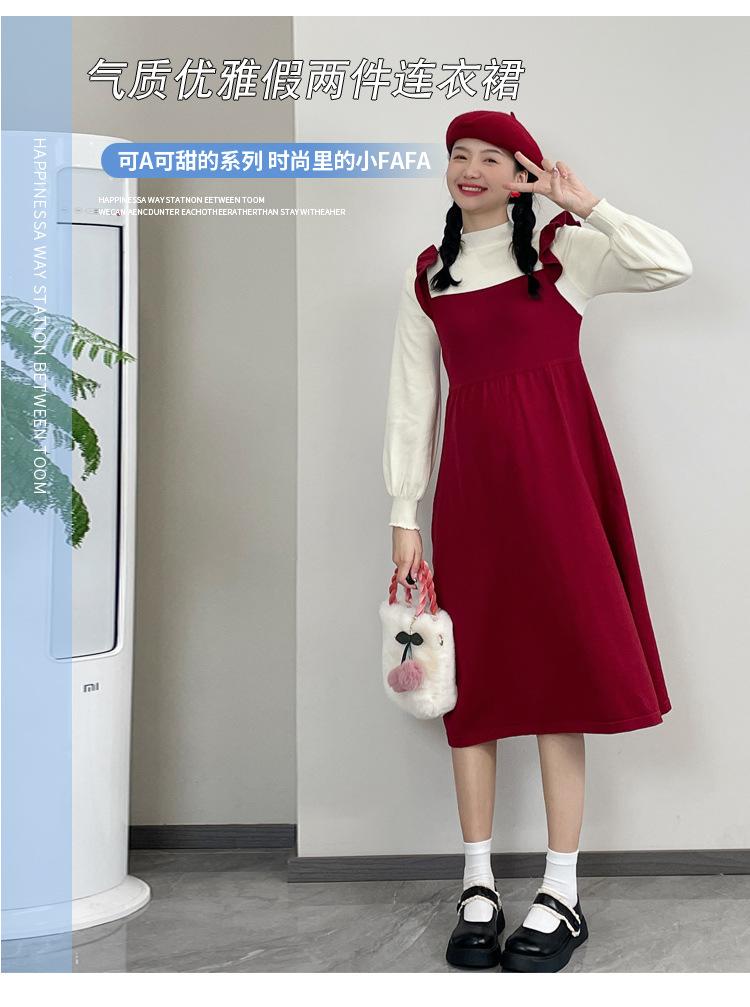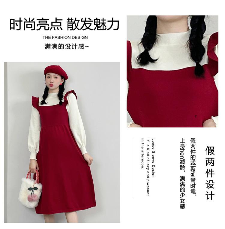 Ropa de maternidad 2024 otoño e invierno nuevo celebridad de internet suave falso de dos piezas reductor de edad holgado tejido grueso vestido suéter para mujeres embarazadas