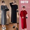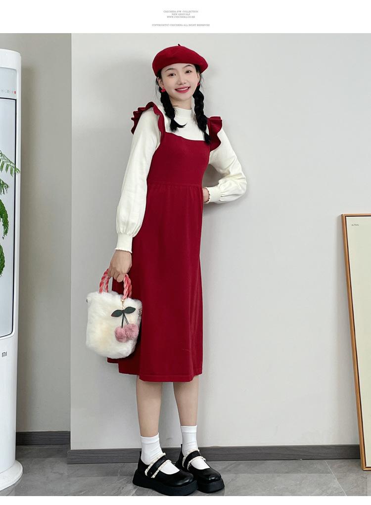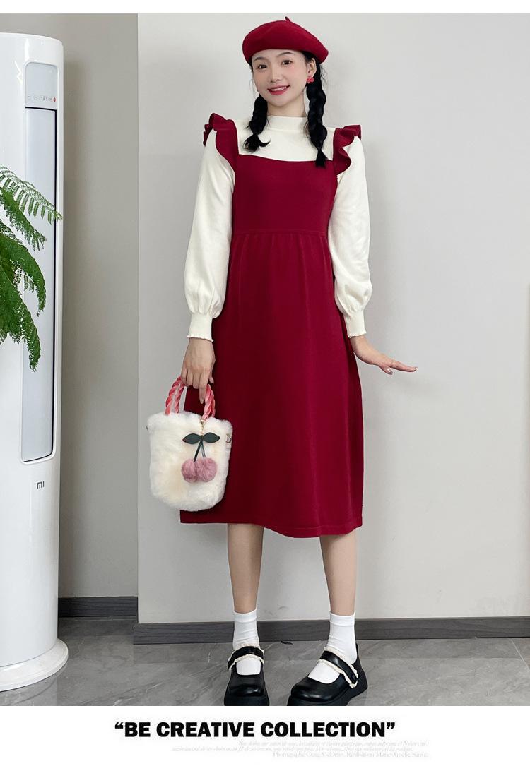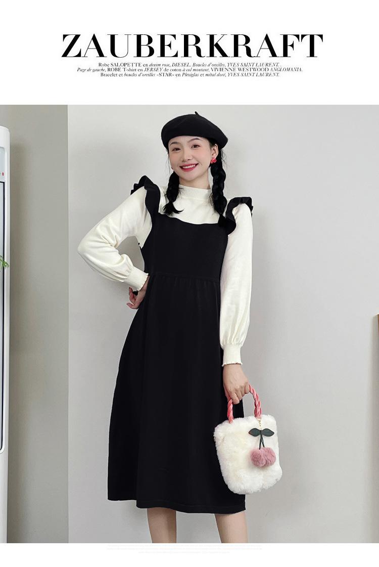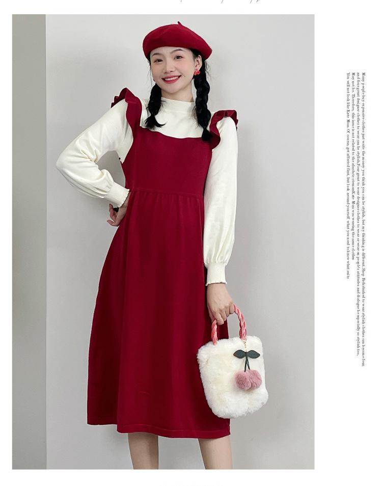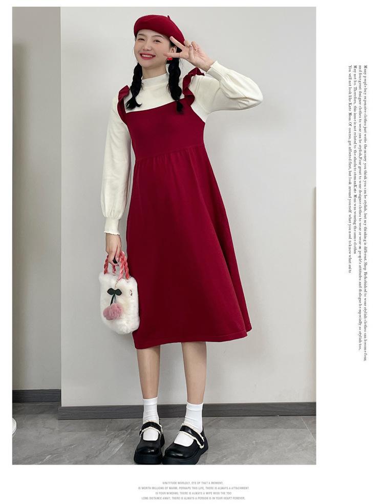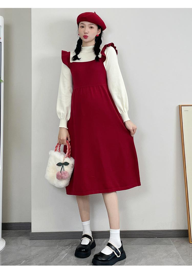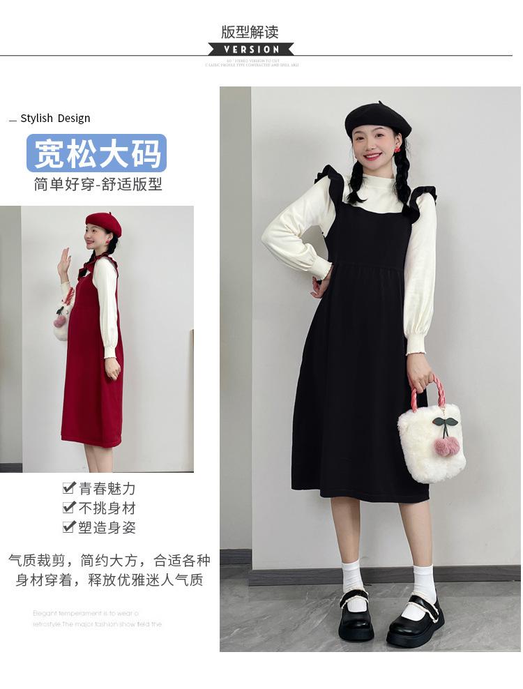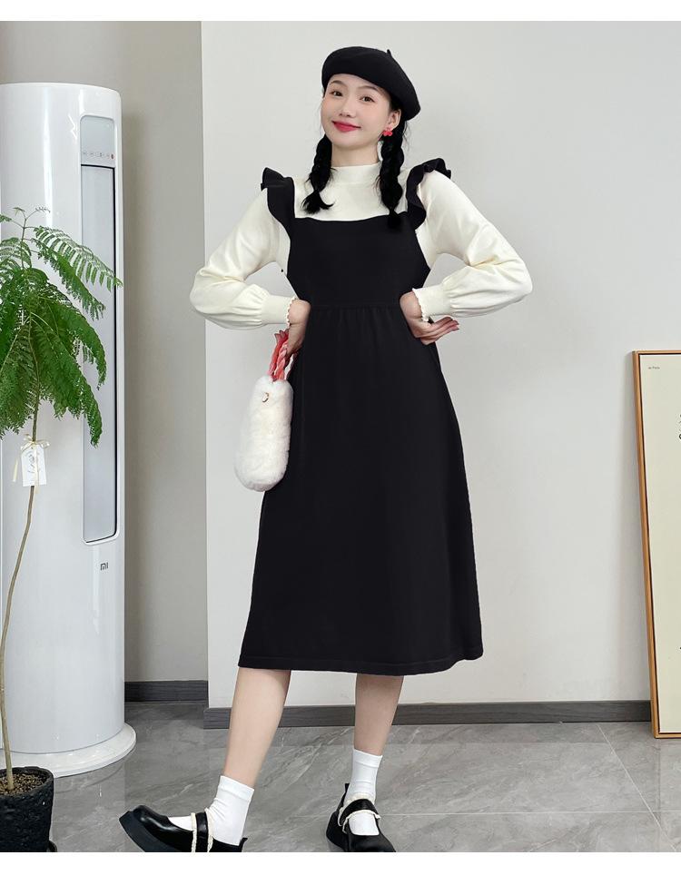 Ropa de maternidad 2024 otoño e invierno nuevo celebridad de internet suave falso de dos piezas reductor de edad holgado tejido grueso vestido suéter para mujeres embarazadas