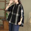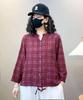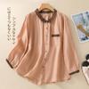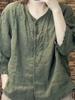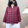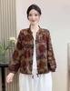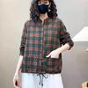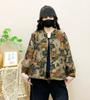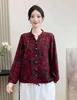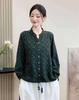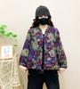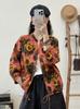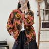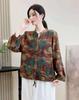 2025 Primavera y Otoño Nuevo Cárdigan Corto Estampado de Algodón y Lino Tops para Mujer Retro Suelto Talla Grande Manga Larga Cuello Alto
