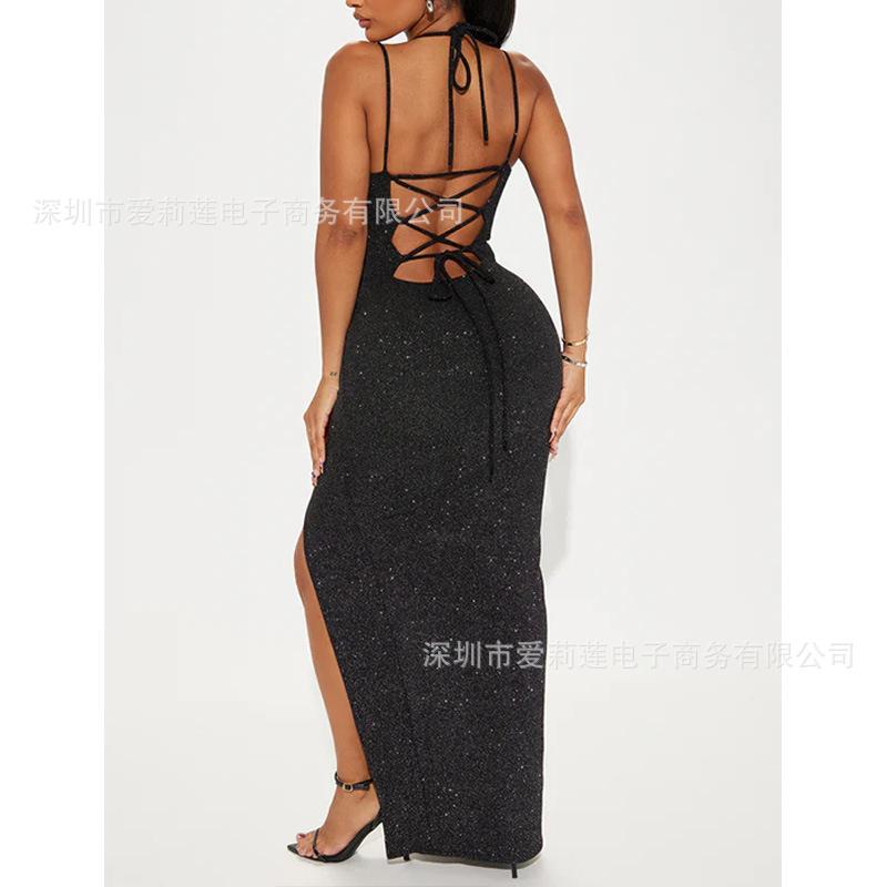 Vestido largo sexy sin espalda, con abertura y estilo Amazon, primavera y verano 2025.