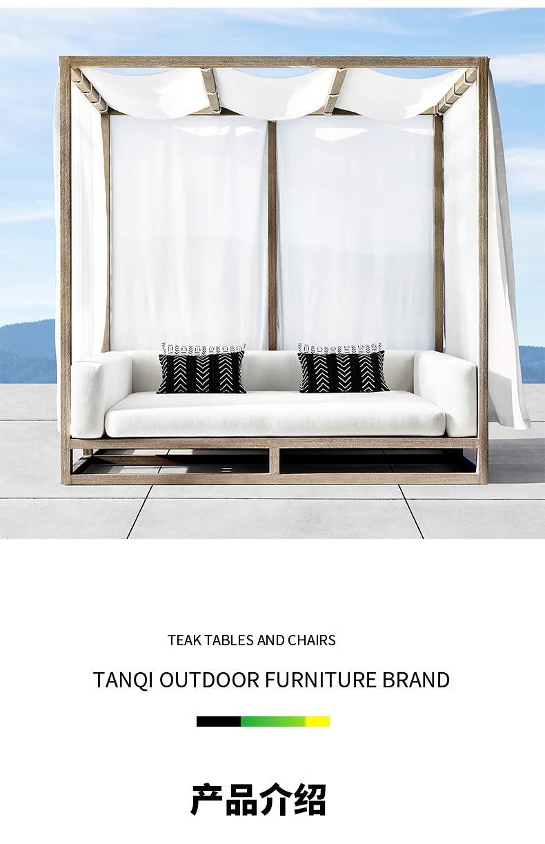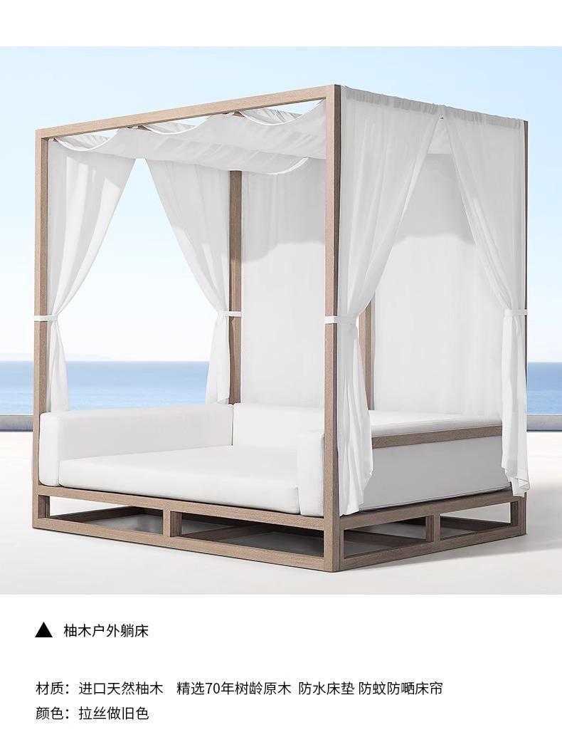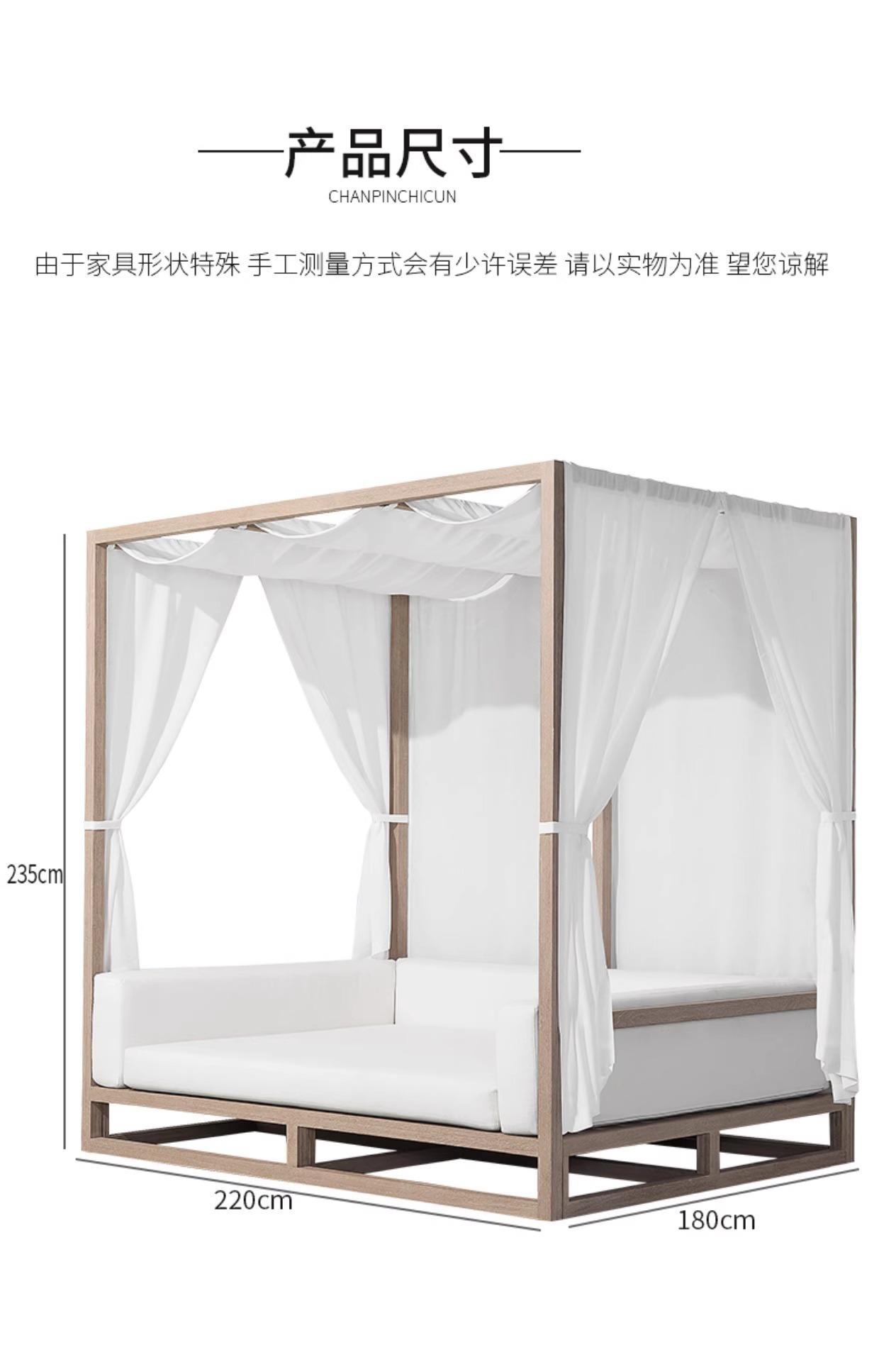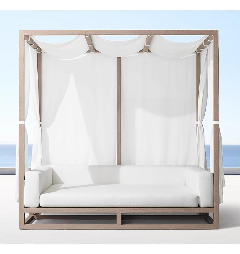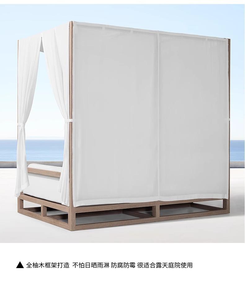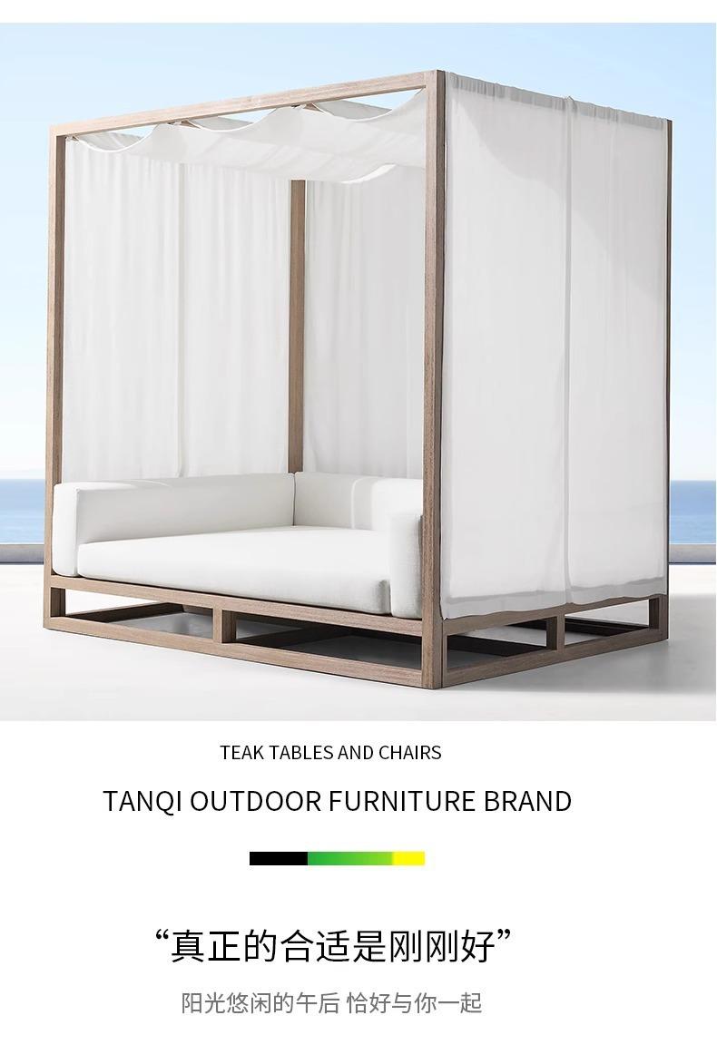Cama Grande Reclinable de Teca para Exterior Exterior Hotel Sala Modelo Cama Reclinable Doble Anticorrosión Muebles de Madera Protección Solar y Protección contra la Lluvia