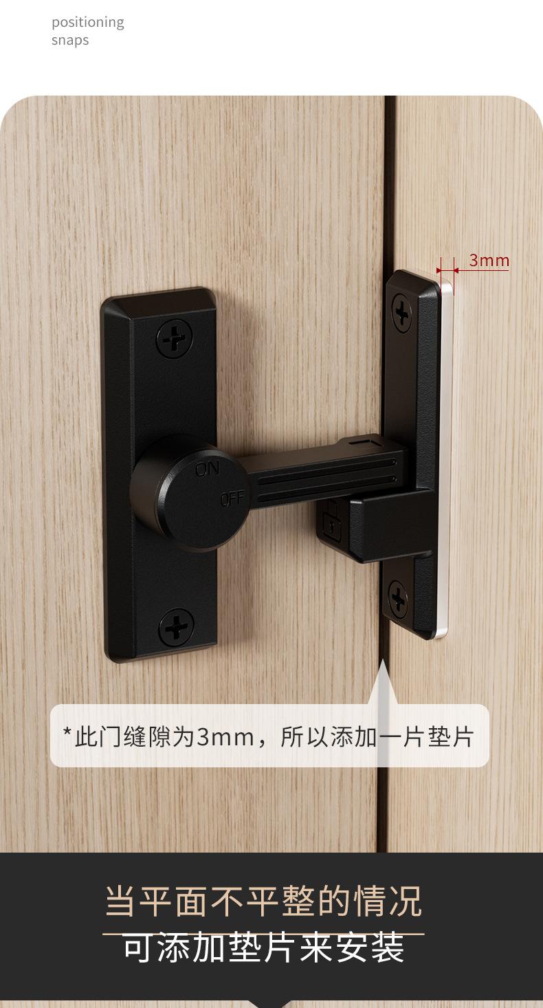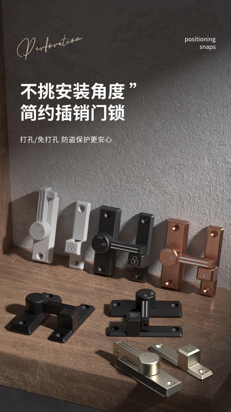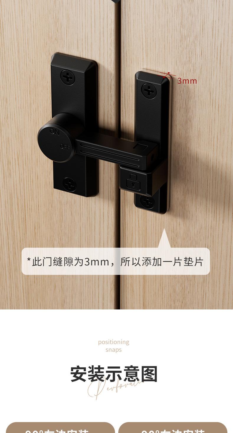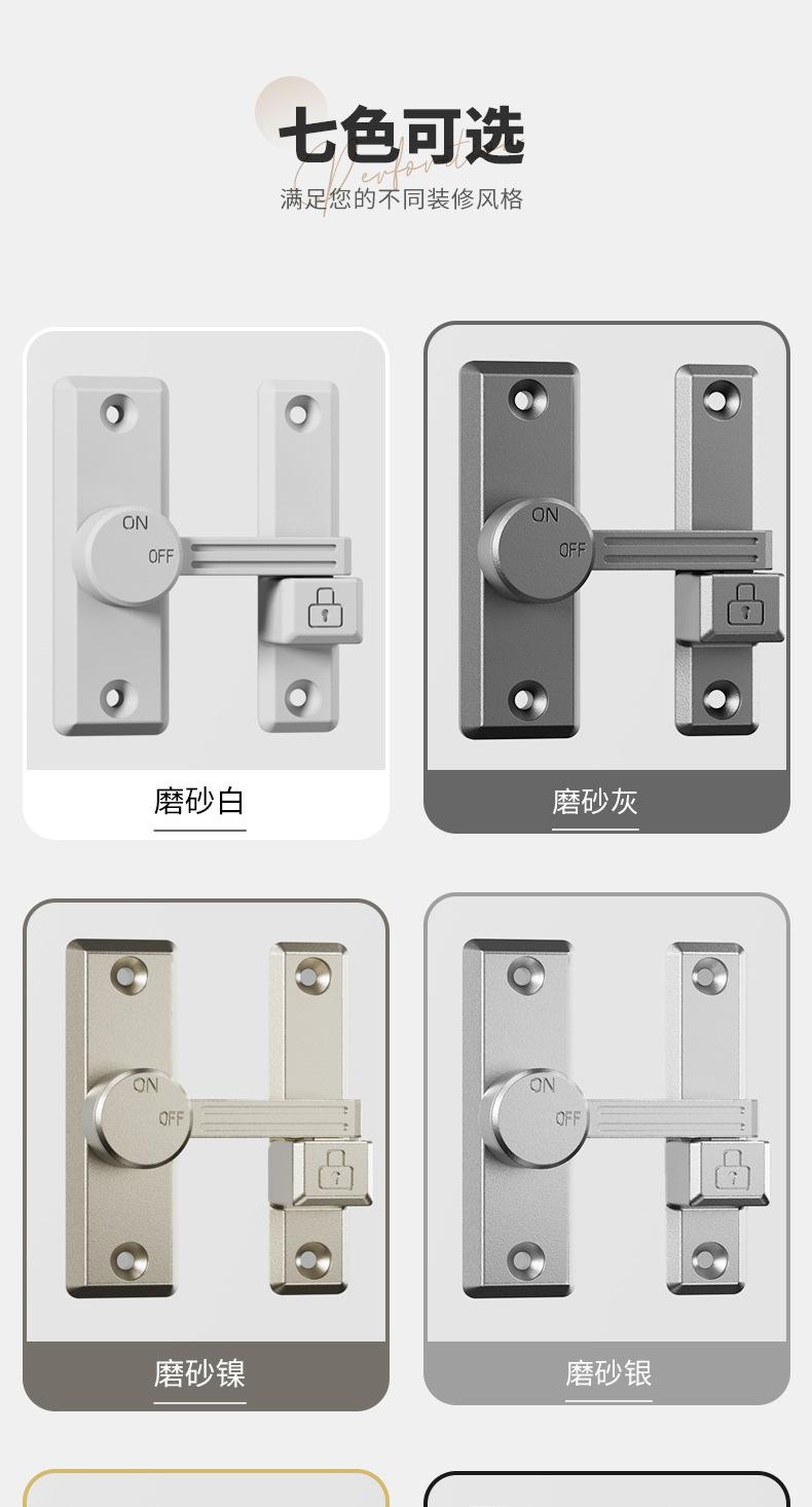 Cerradura de puerta sin perforaciones, cerradura de seguridad, hebilla de puerta luminosa, cerradura de pestillo de puerta corrediza montada en superficie, fundición de precisión de aleación de zinc, hebilla de puerta de 90 grados