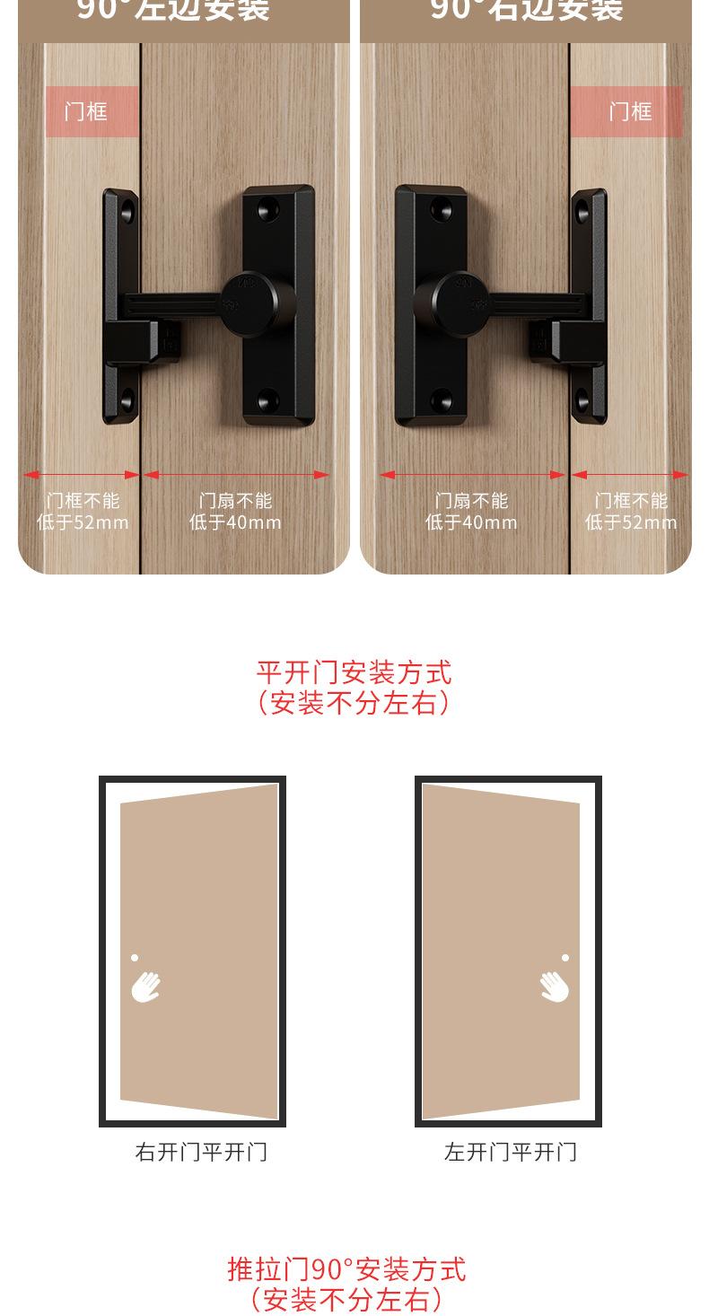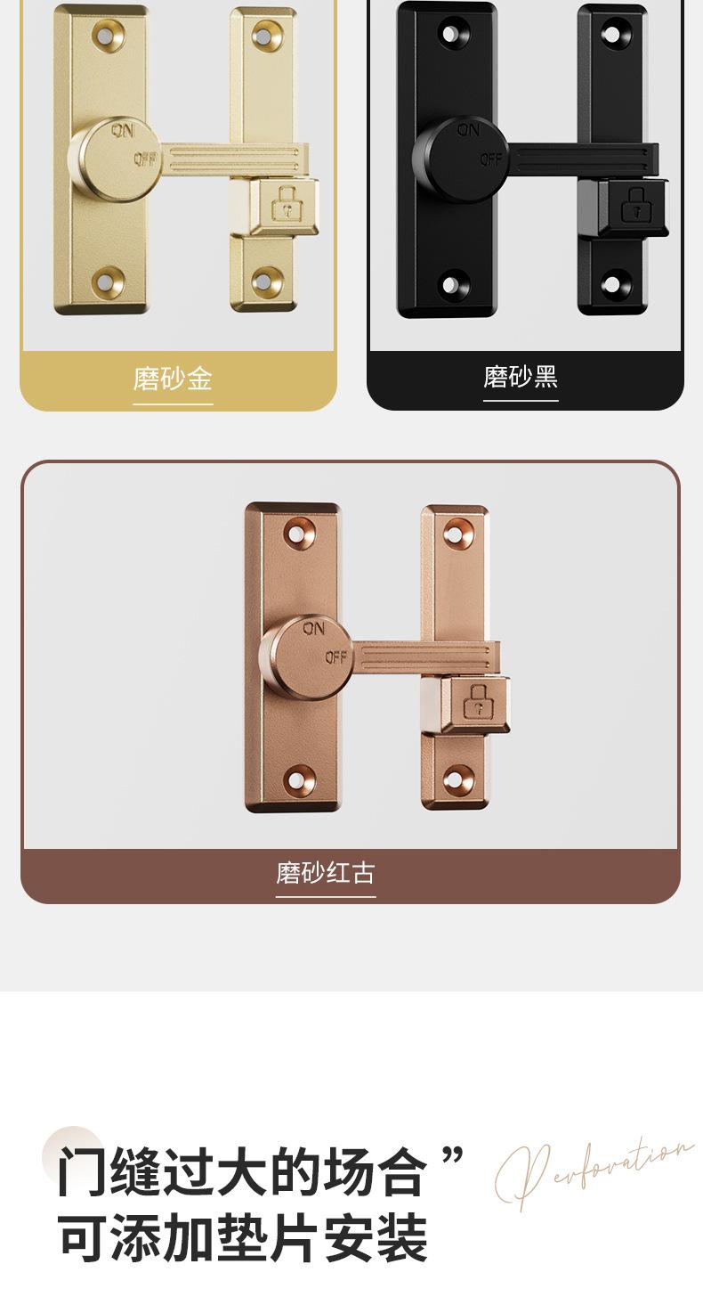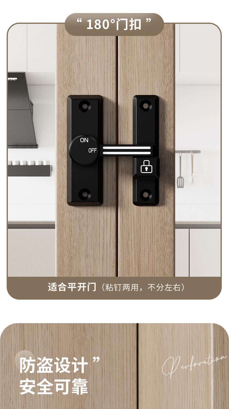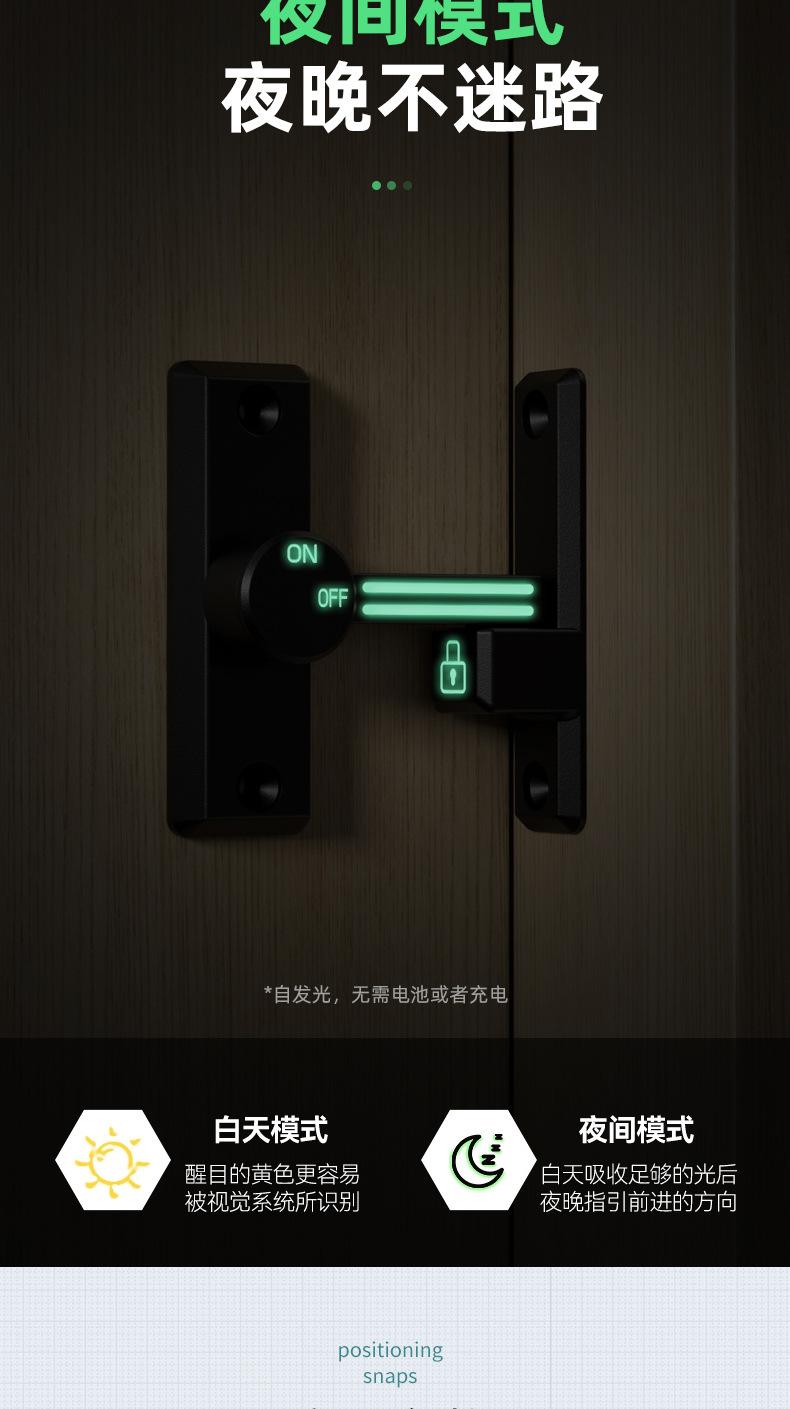 Cerradura de puerta sin perforaciones, cerradura de seguridad, hebilla de puerta luminosa, cerradura de pestillo de puerta corrediza montada en superficie, fundición de precisión de aleación de zinc, hebilla de puerta de 90 grados