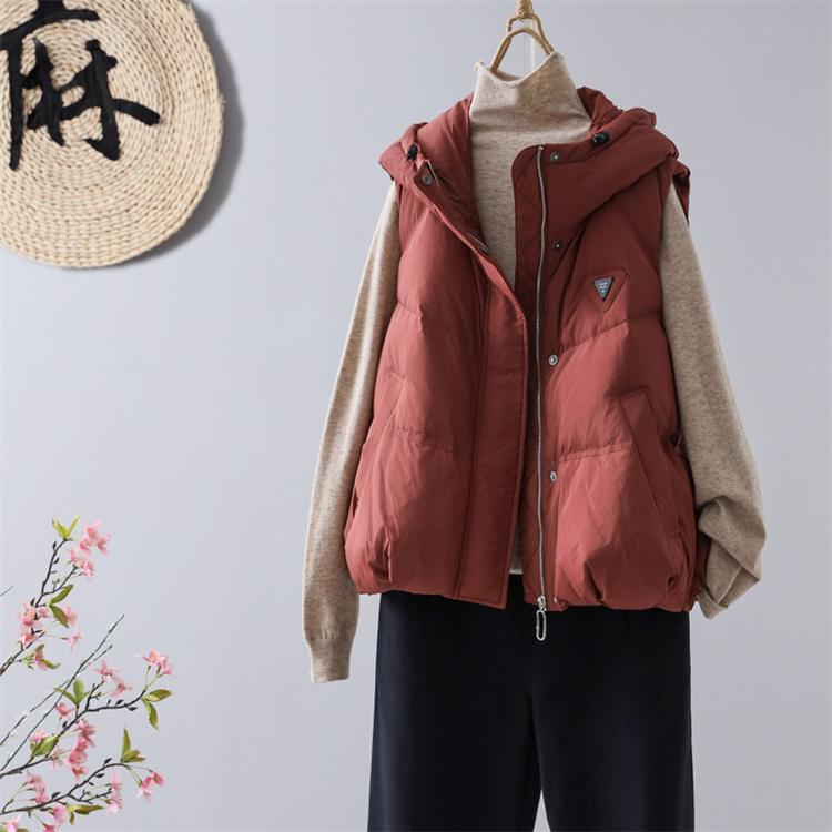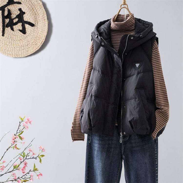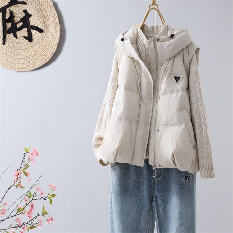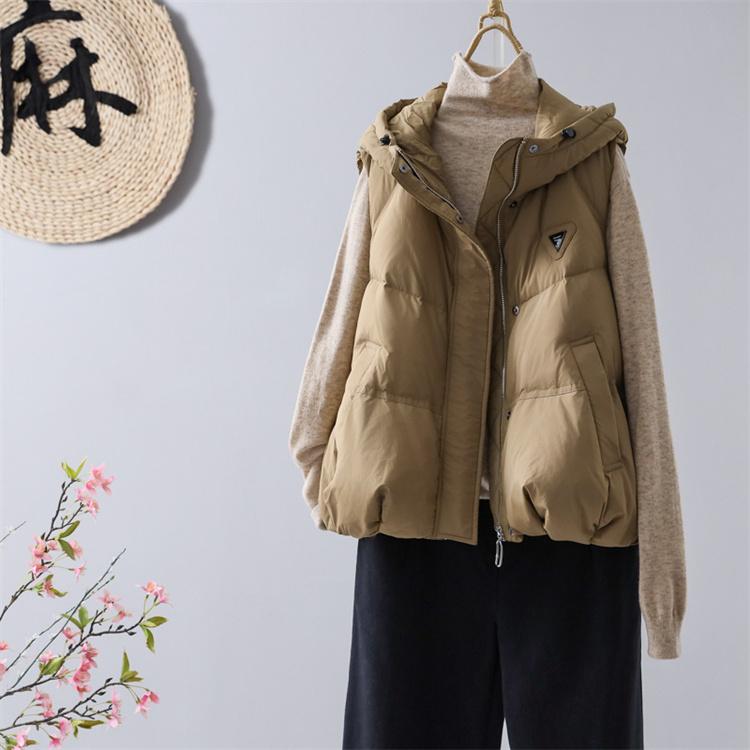 Chaleco de plumas con capucha estilo coreano para mujer, nuevo chaleco de plumas blanco de pato, combina con todo, otoño e invierno 2024