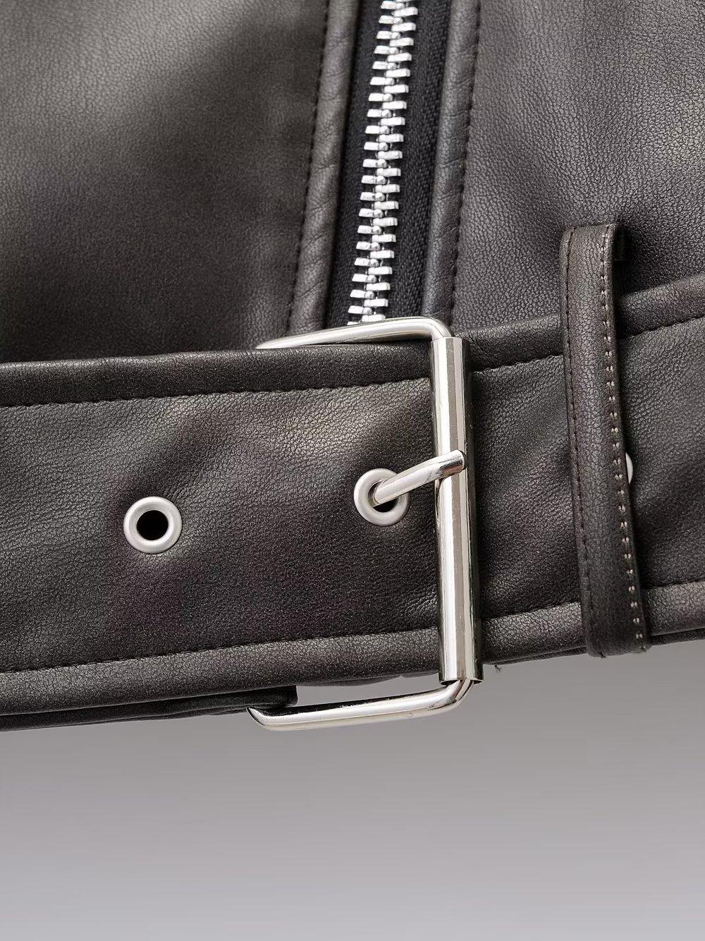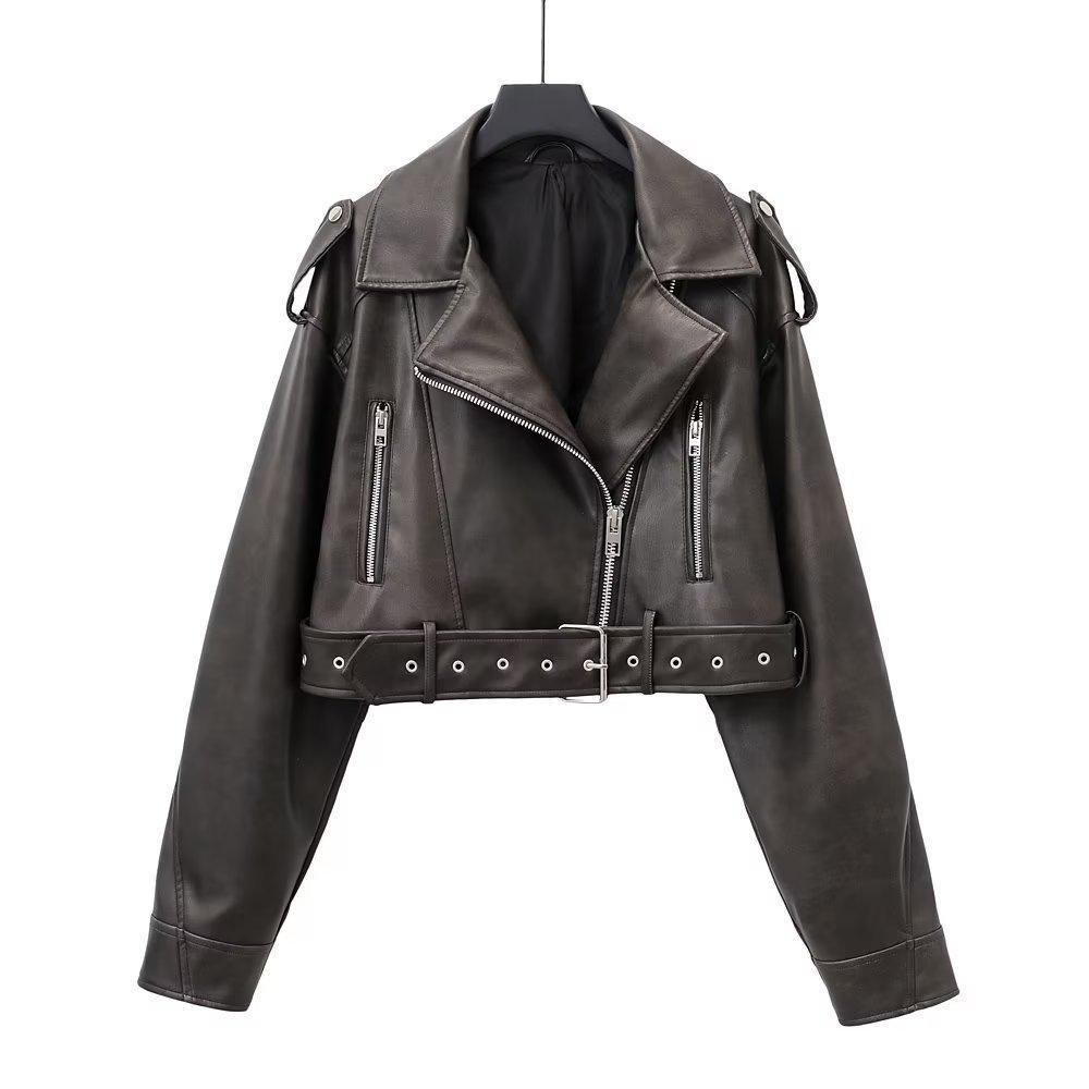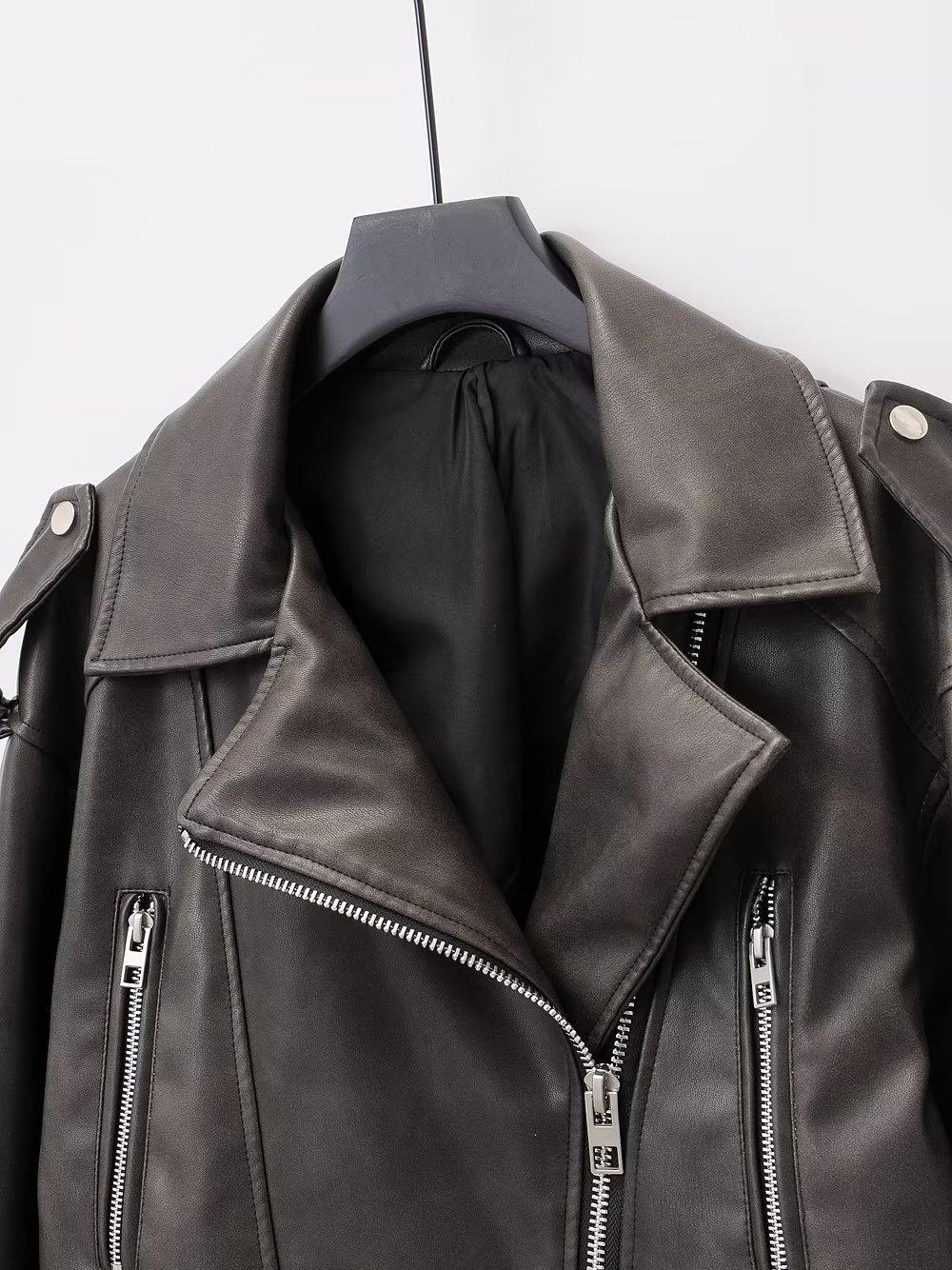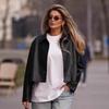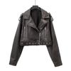 2023 Otoño Nuevo Europeo y Americano Transfronterizo Moda Urbana para Mujer Chaqueta Lavada de Imitación Cuero Estilo Motociclista Pu con Cremallera