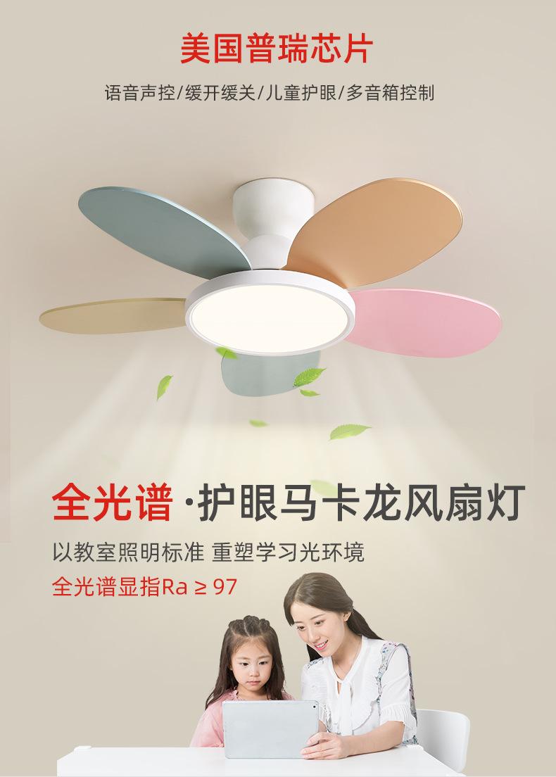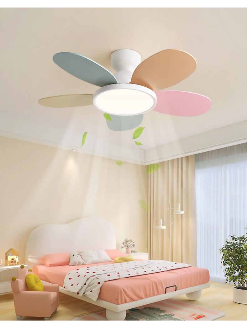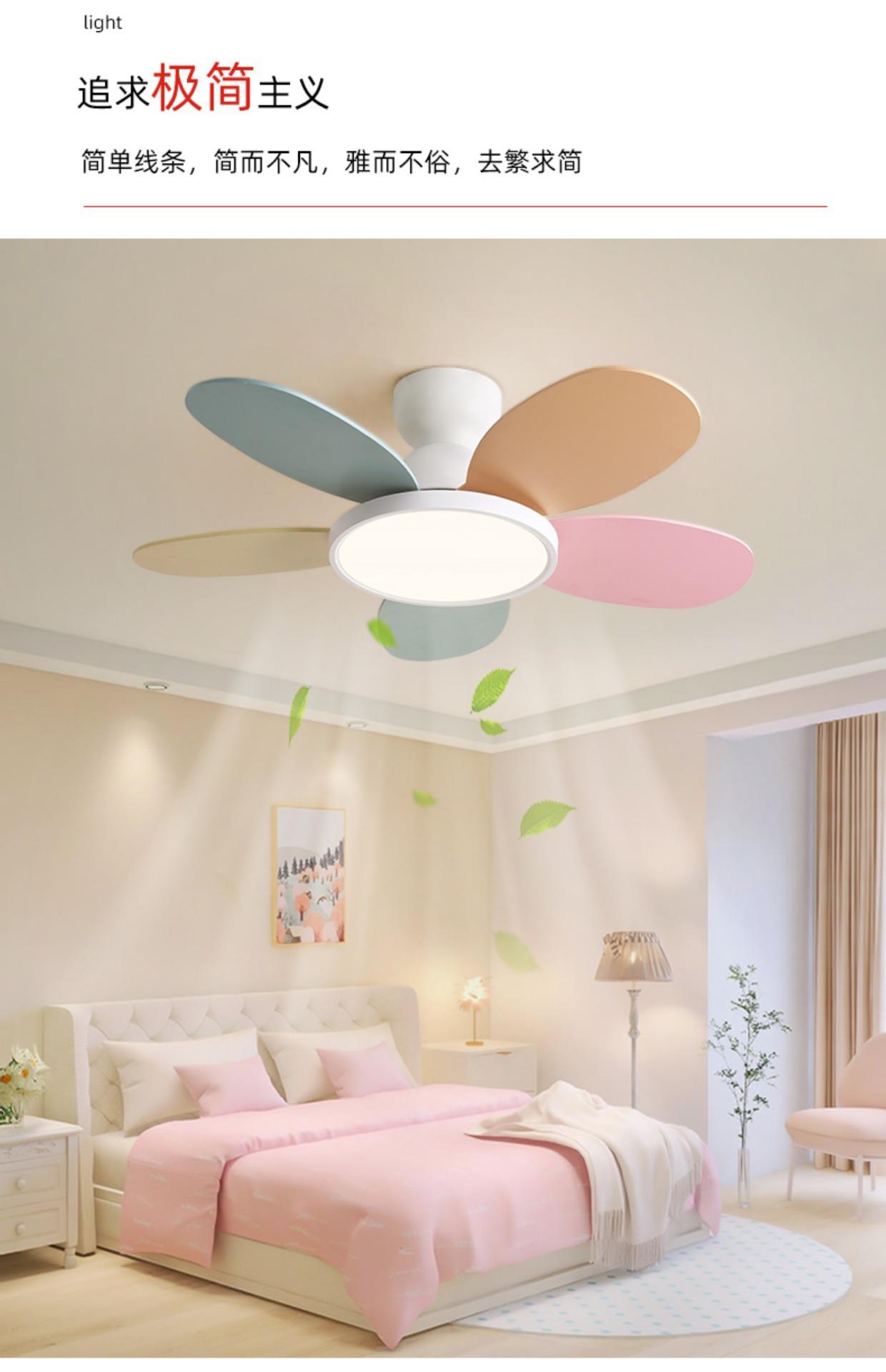 Luz de ventilador para habitación infantil moderna simple cálida macaron dormitorio invisible silencioso ventilador eléctrico luz de techo integrada para habitación