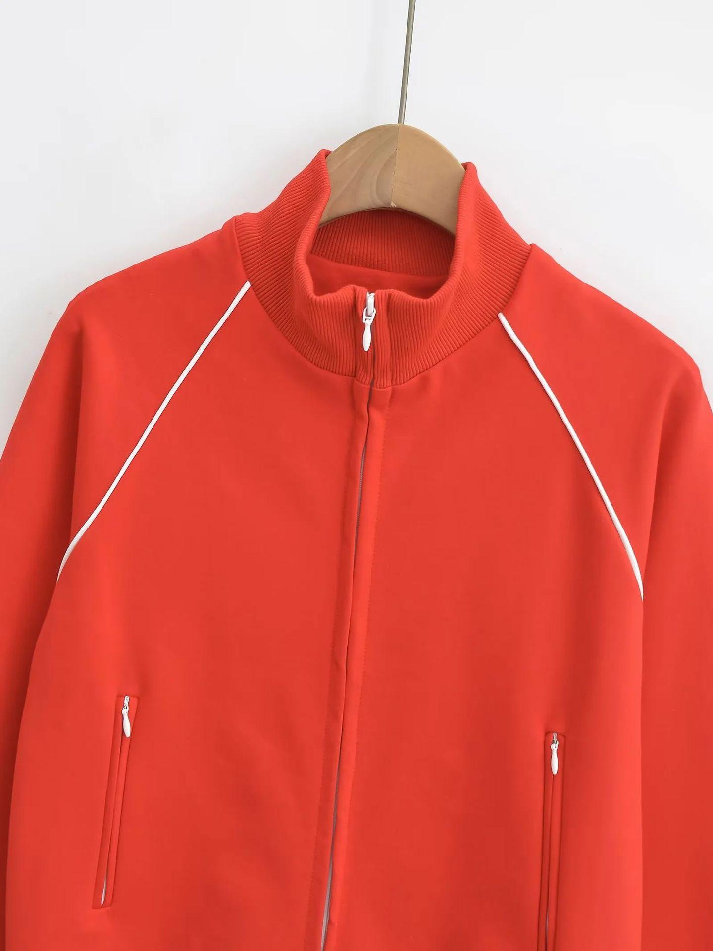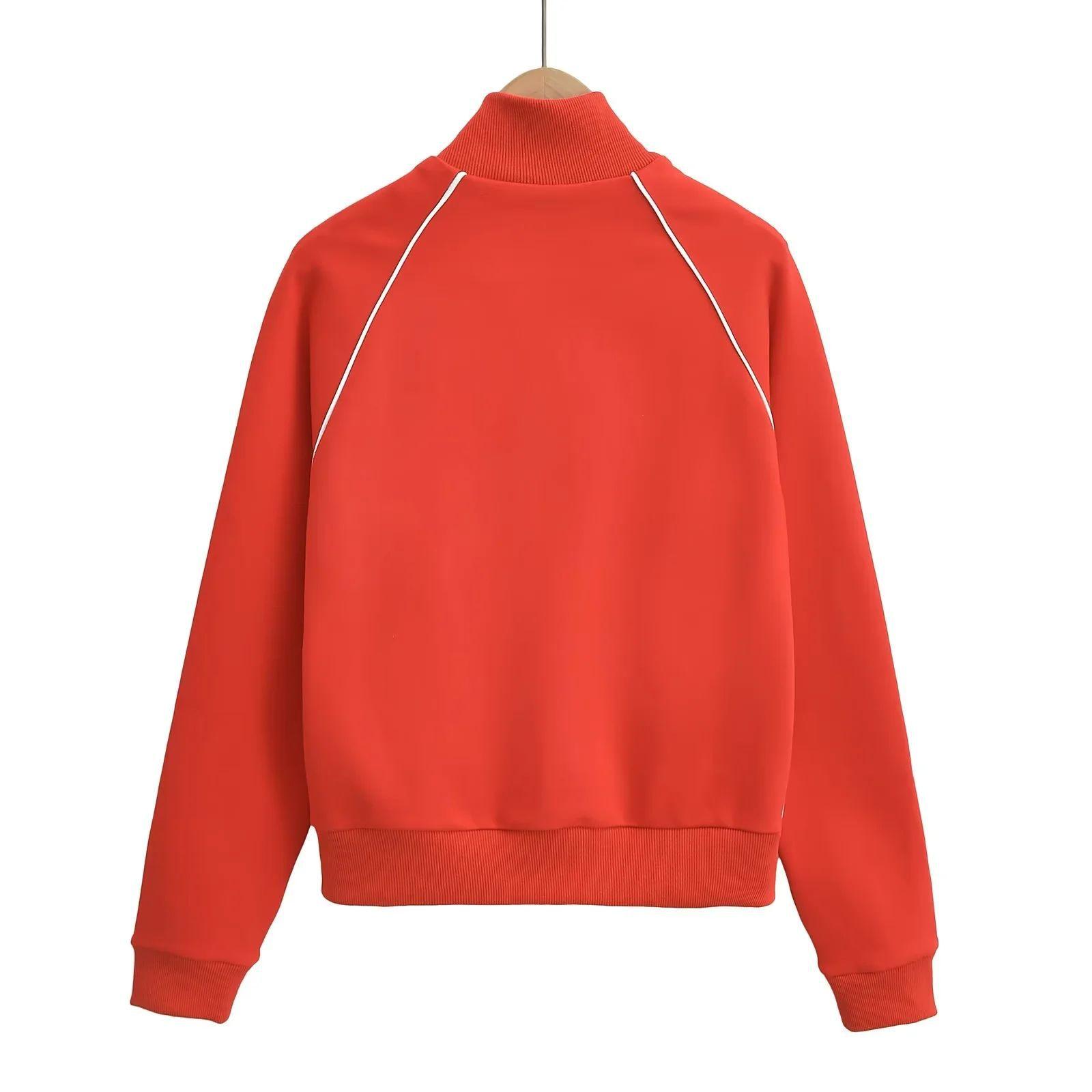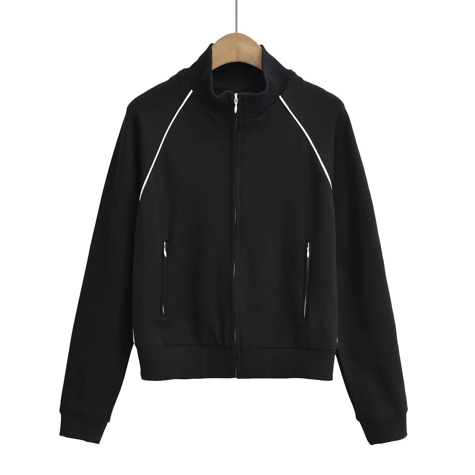 Estilo Americano Estilo Miumiu Fashionistas de Calle Chaqueta con Cuello para Mujer Otoño e Invierno Nuevo Suelta Combinable con Todo Cremallera Rayada
