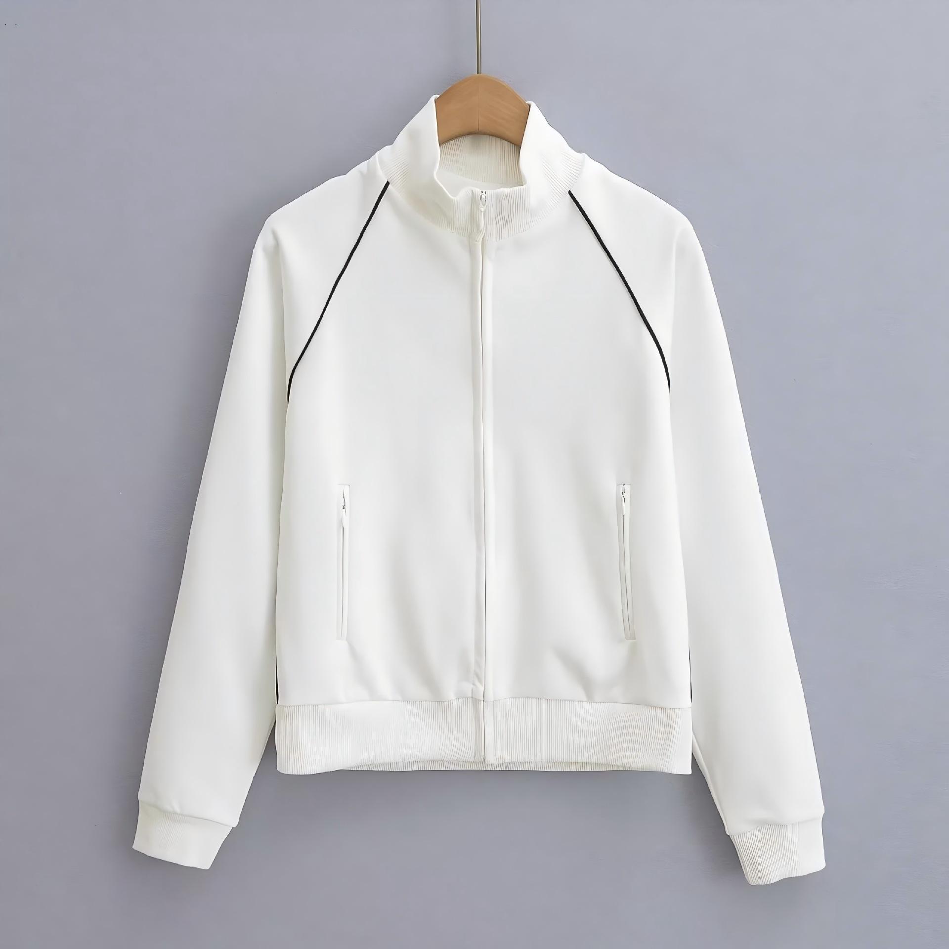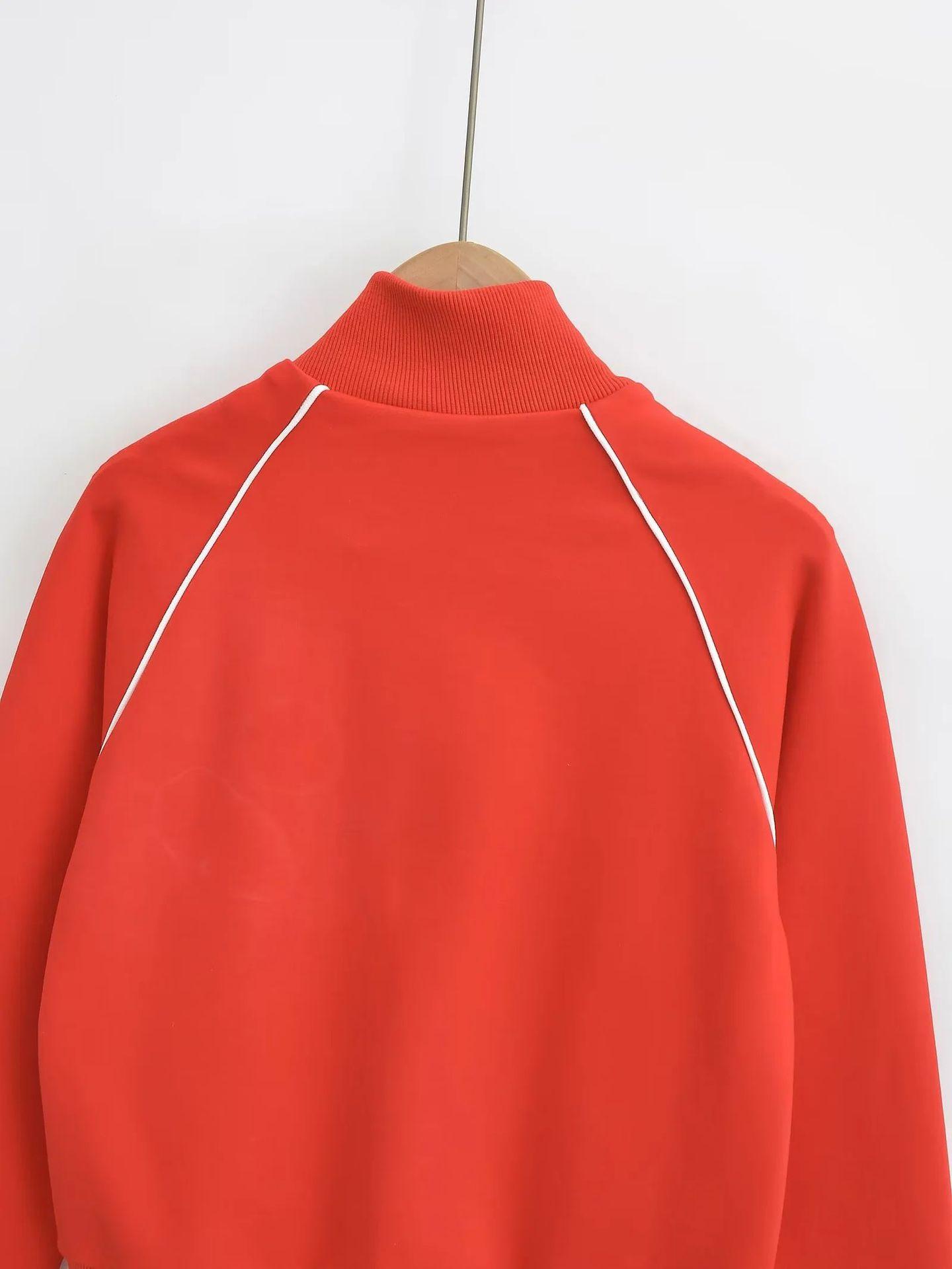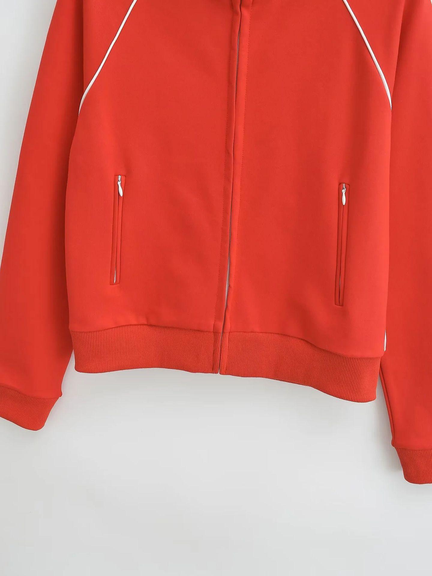 Estilo Americano Estilo Miumiu Fashionistas de Calle Chaqueta con Cuello para Mujer Otoño e Invierno Nuevo Suelta Combinable con Todo Cremallera Rayada