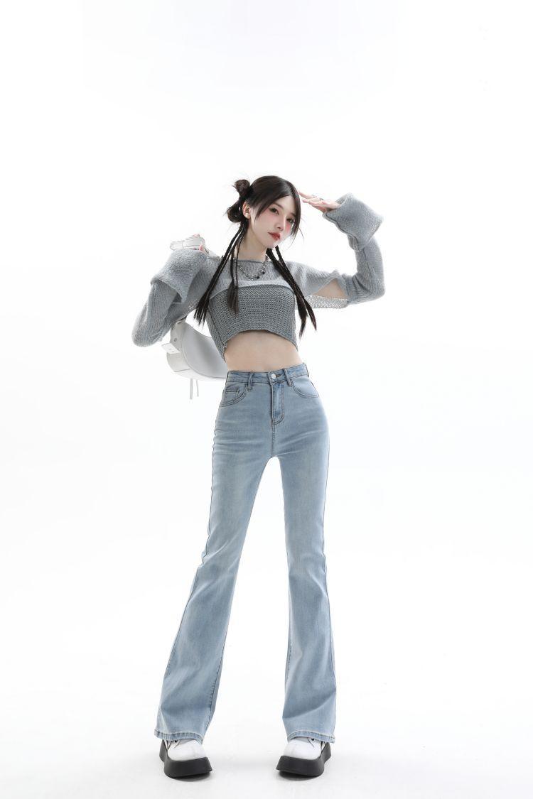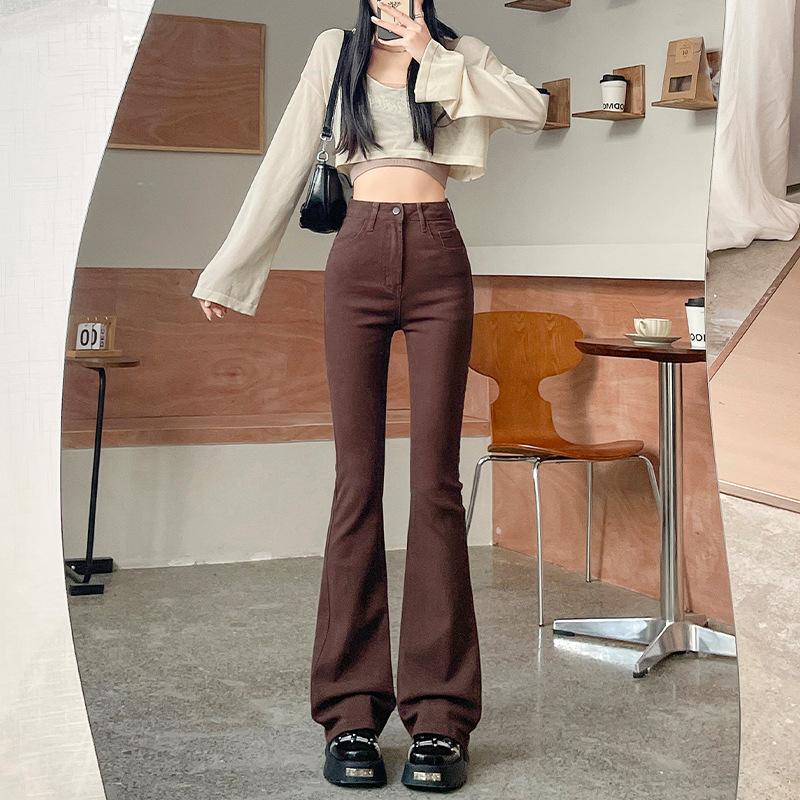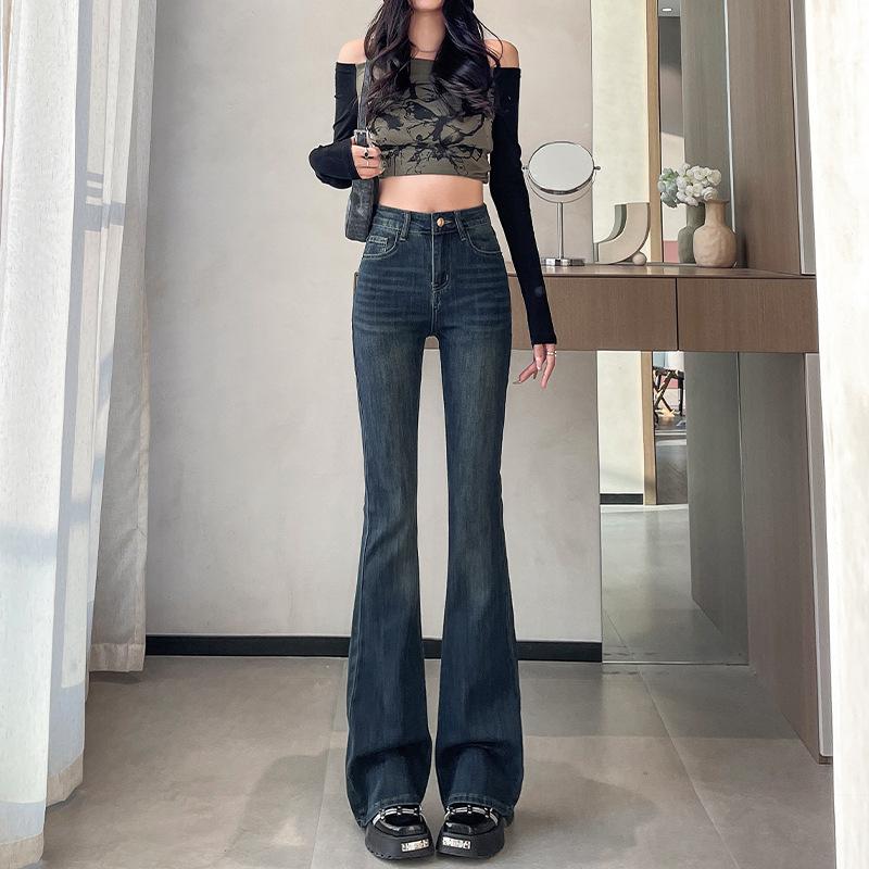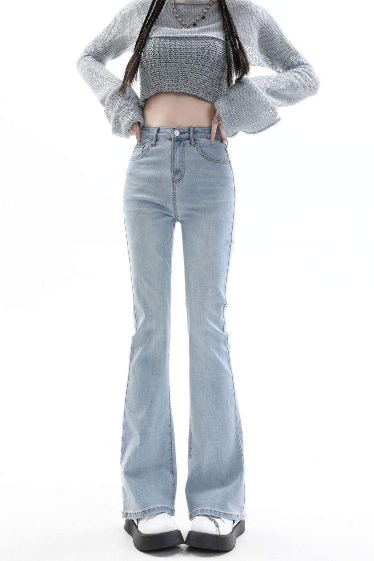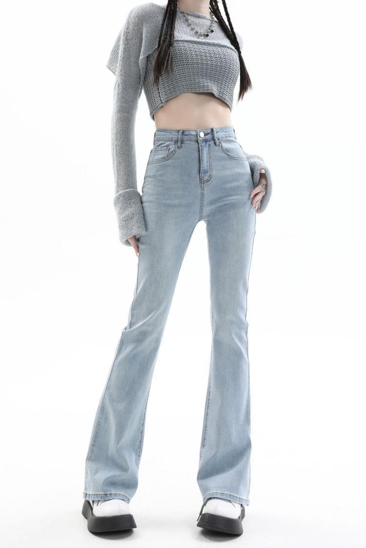 Jeans Retro de Cintura Alta Micro-acampanados para Niña Verano Casual Slim-fit Elásticos Trompeta Herradura Pantalones Largos