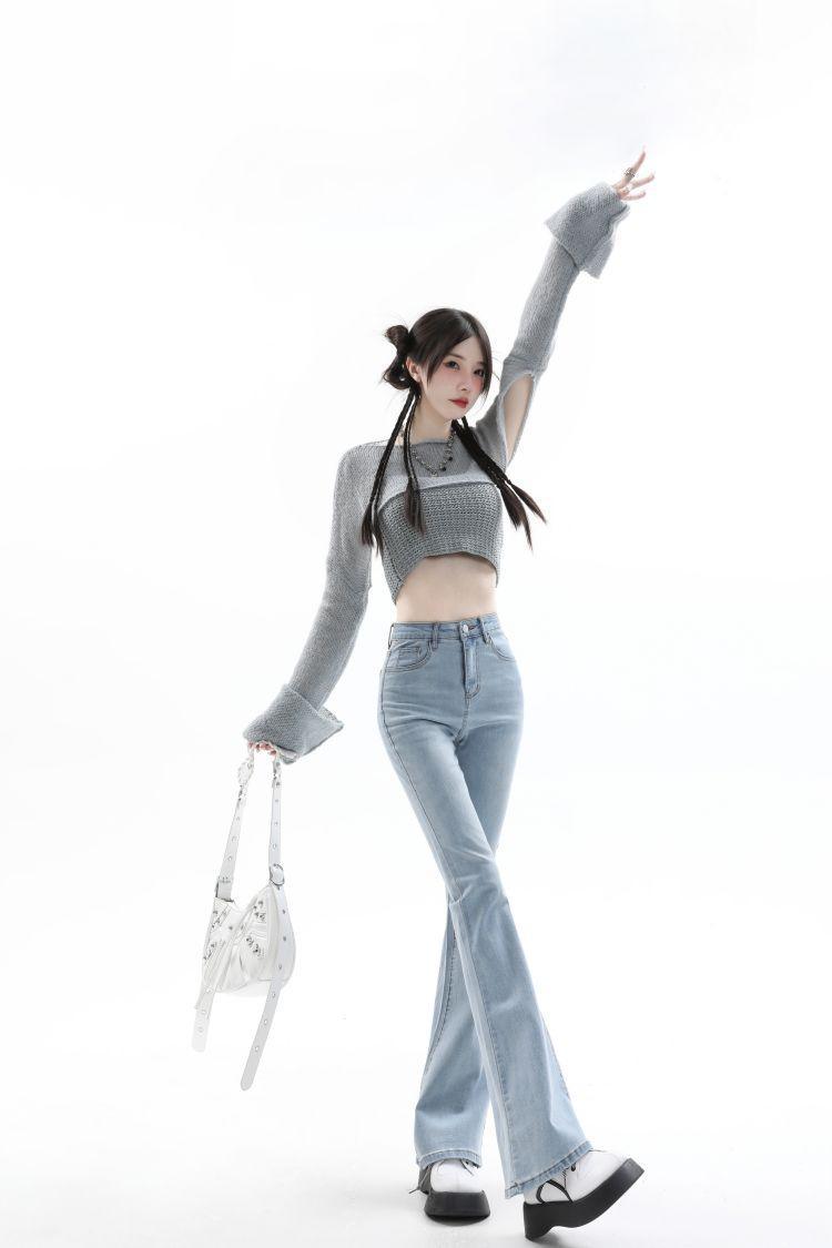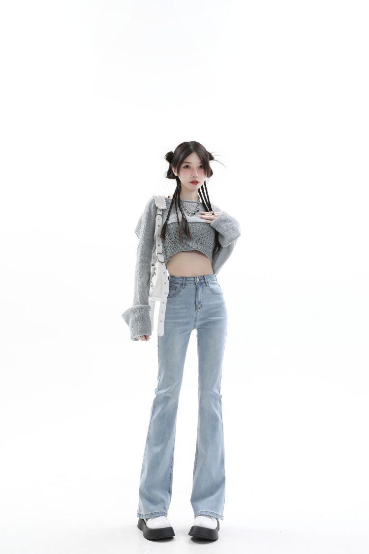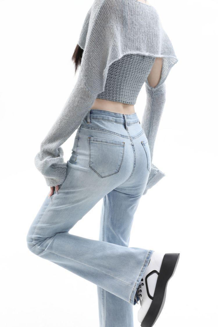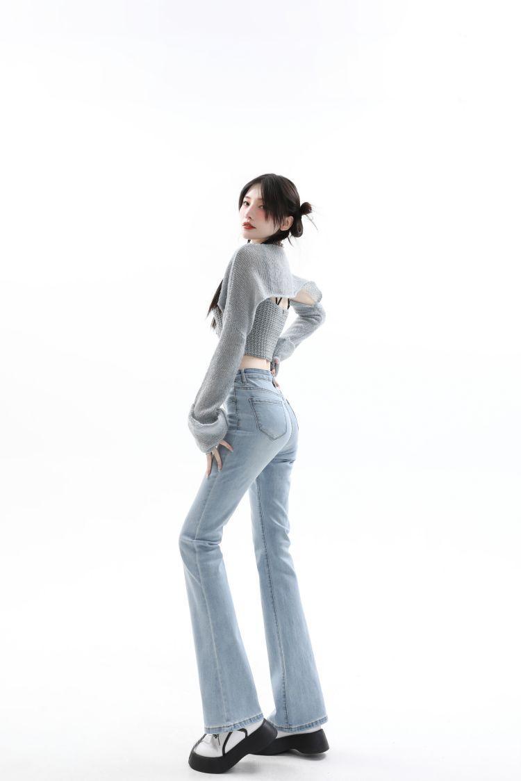 Jeans Retro de Cintura Alta Micro-acampanados para Niña Verano Casual Slim-fit Elásticos Trompeta Herradura Pantalones Largos