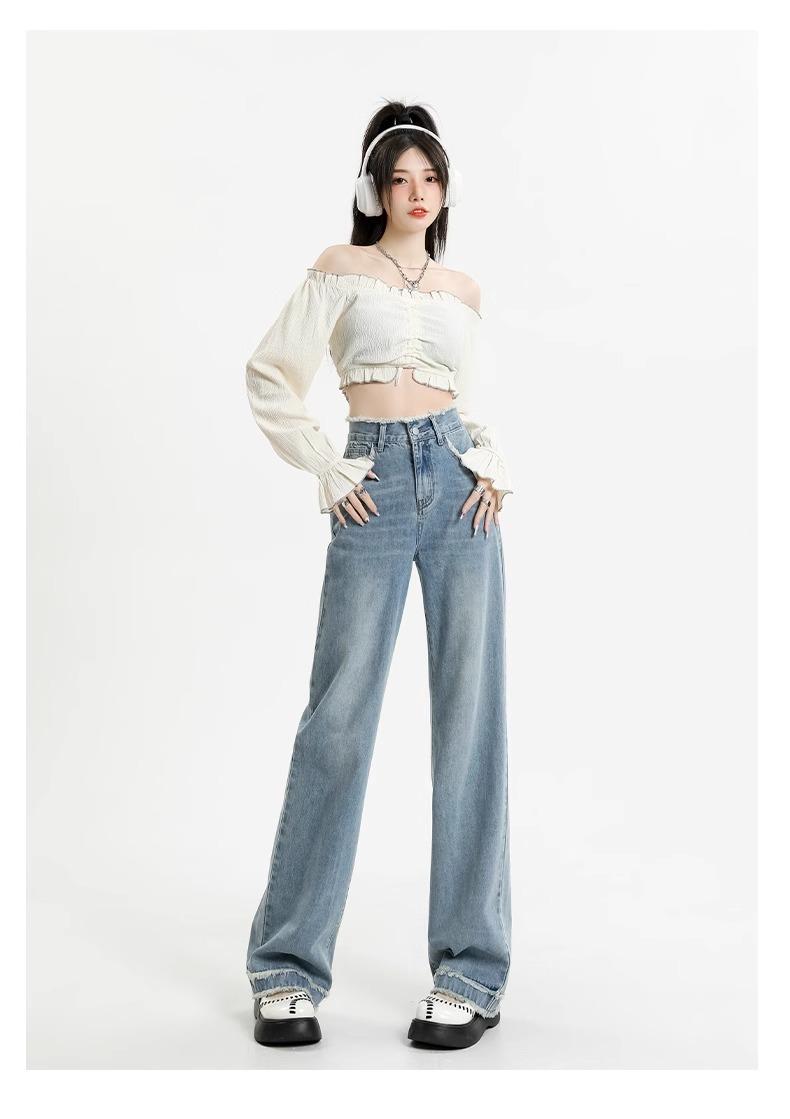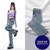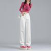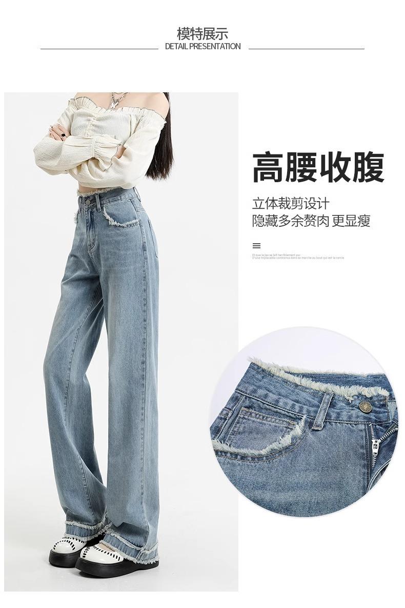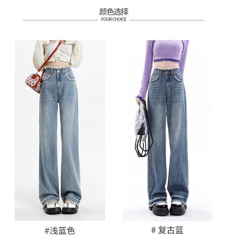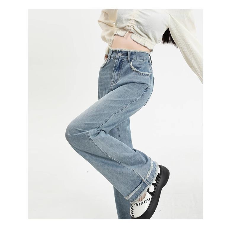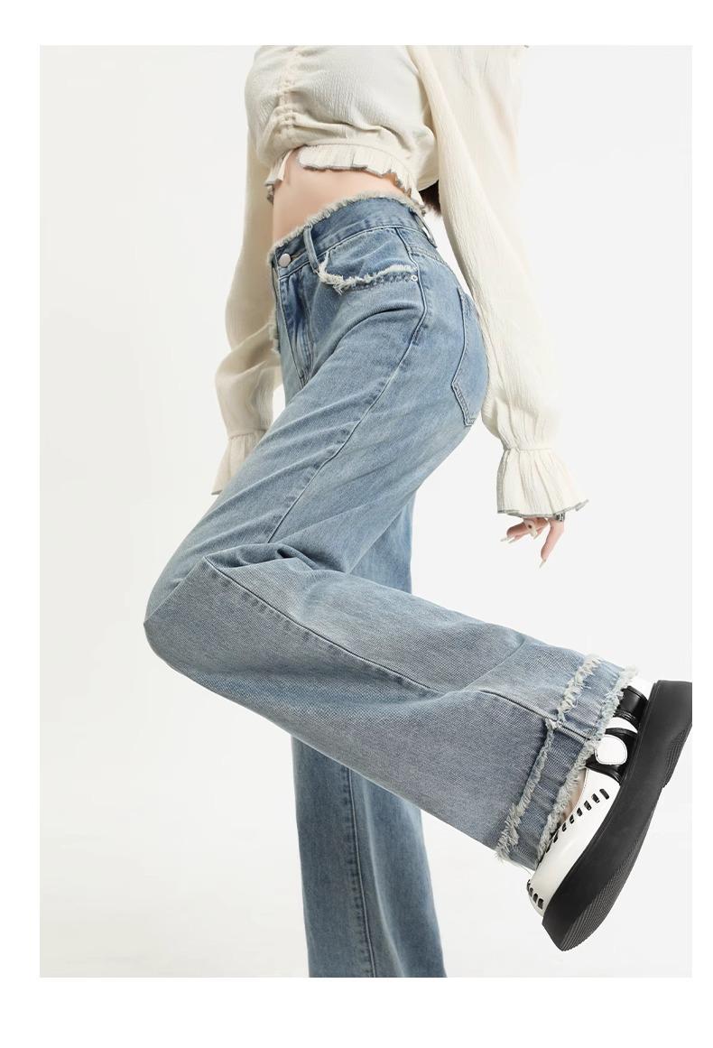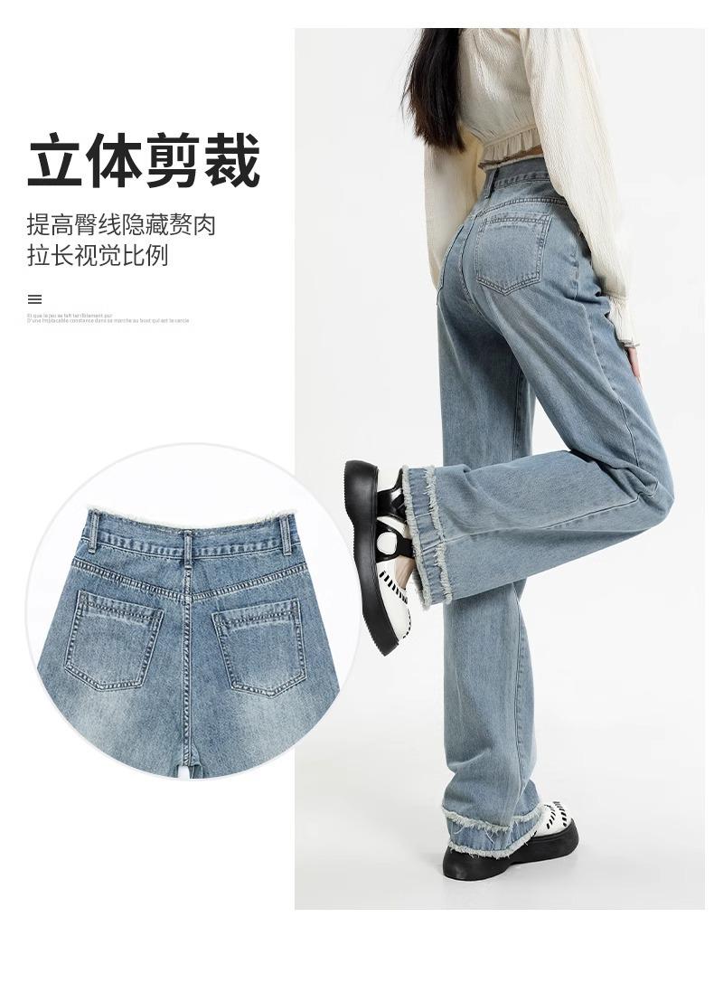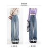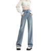 Pantalones vaqueros rectos de cintura alta de color claro para mujer, de primavera, combinables, nuevos, de moda, sencillos, holgados, ajustados, de lana, con pierna ancha.