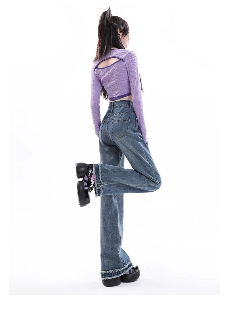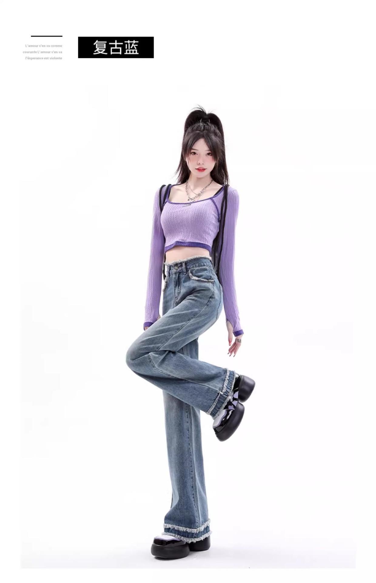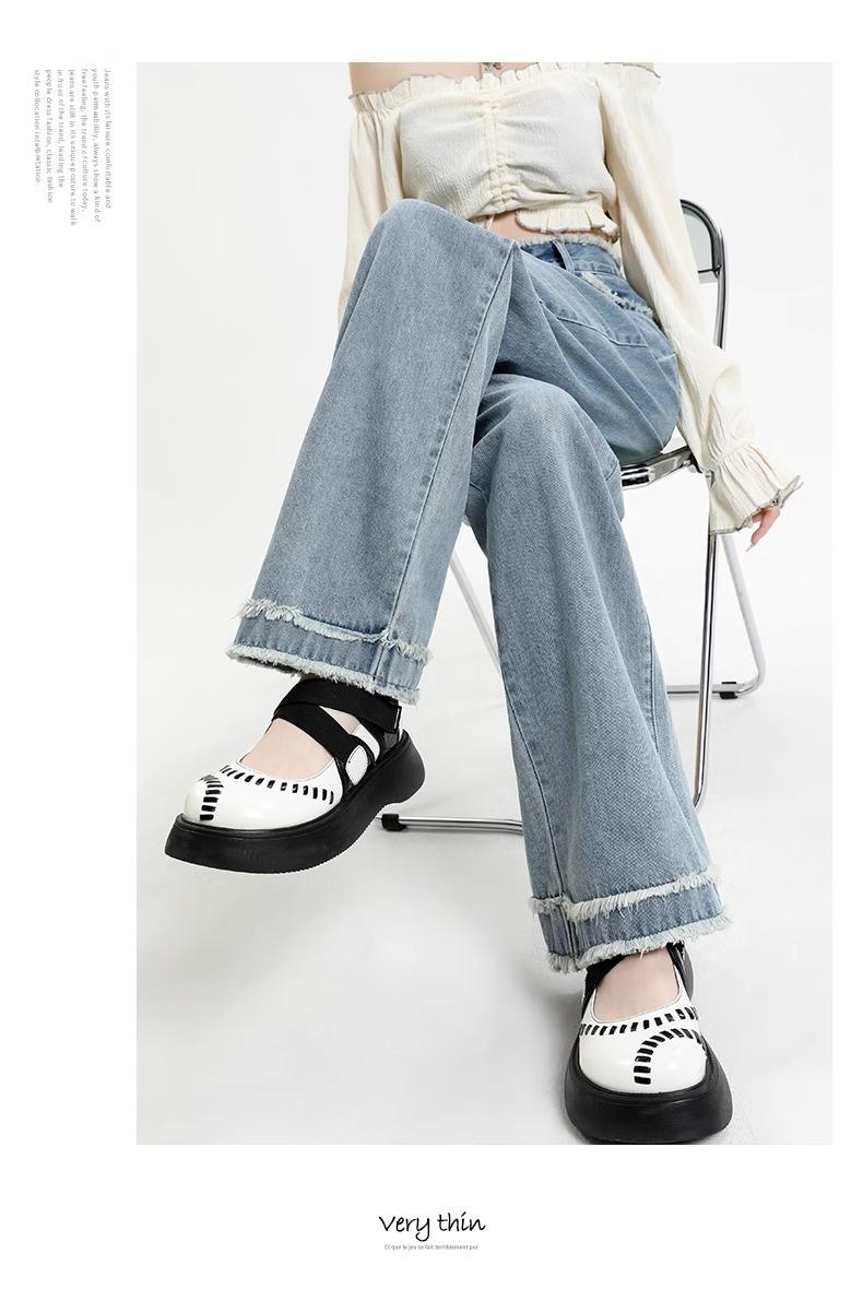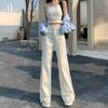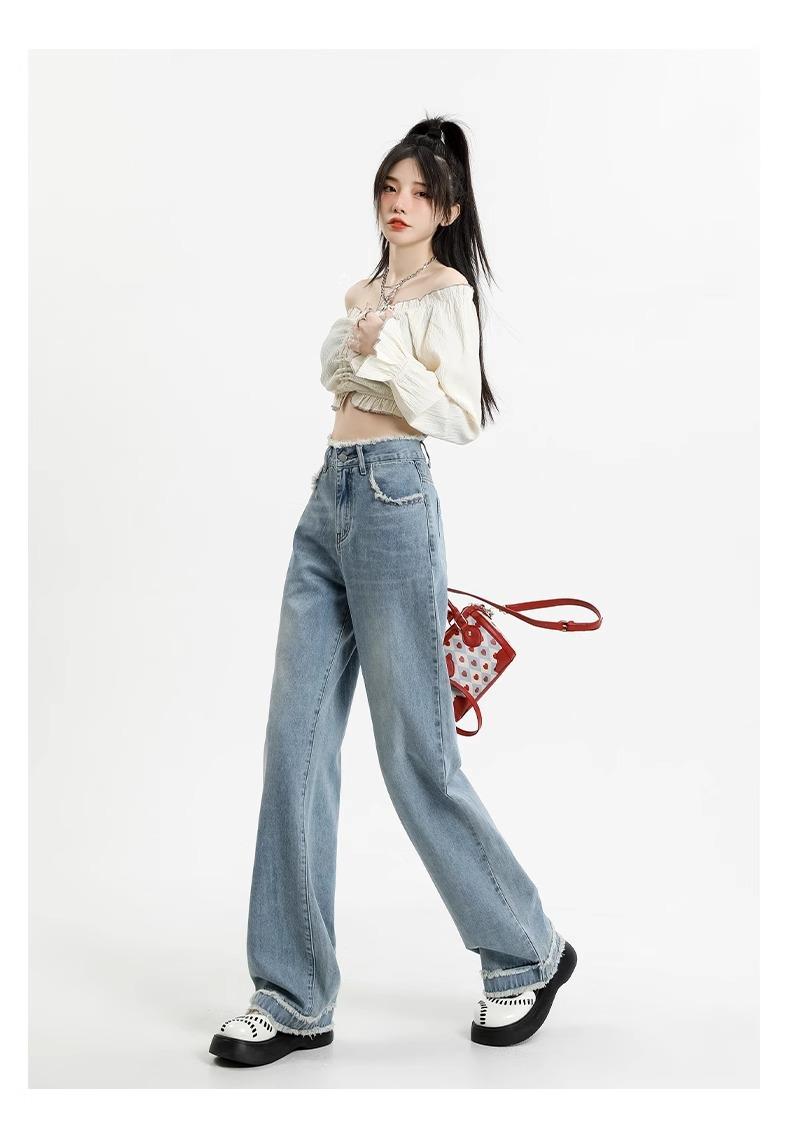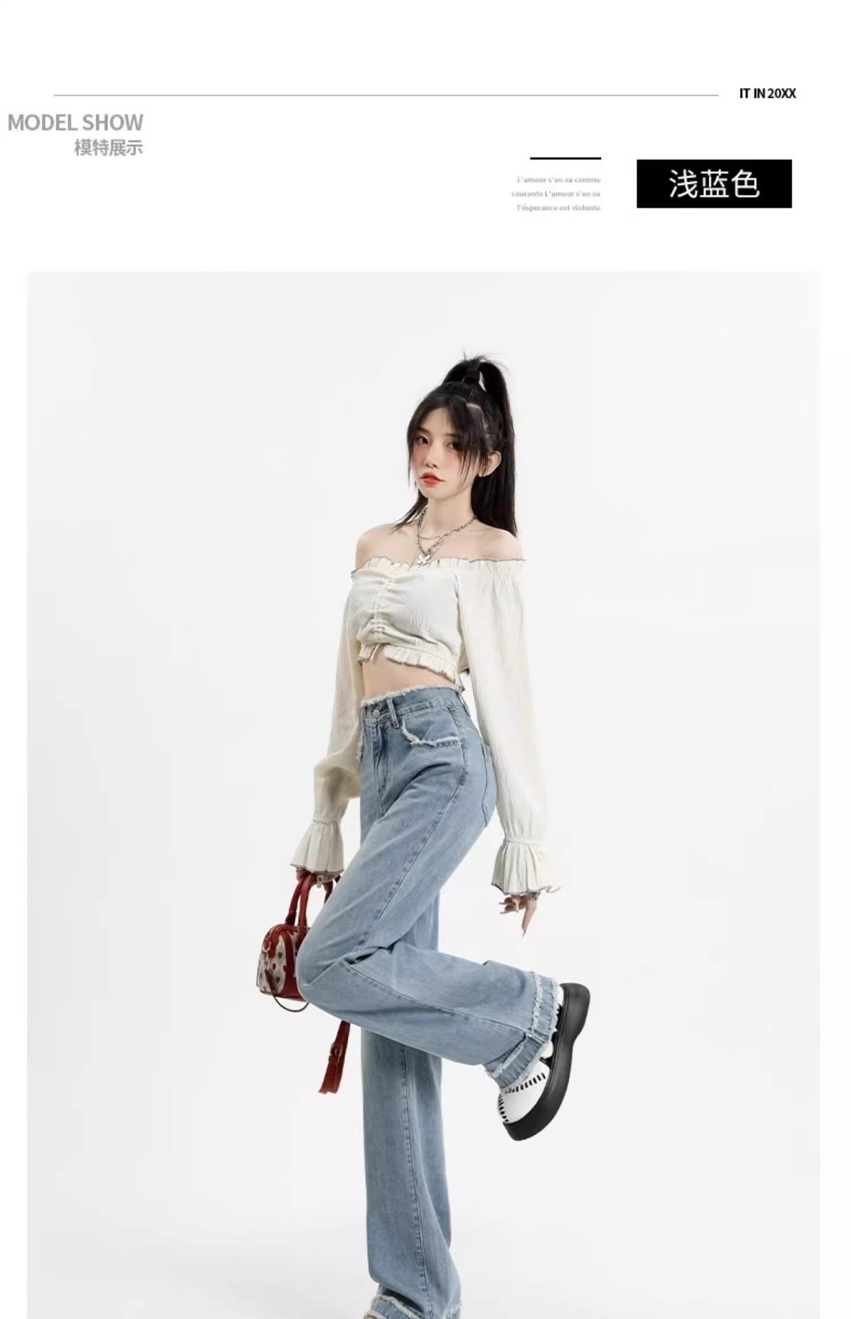 Pantalones vaqueros rectos de cintura alta de color claro para mujer, de primavera, combinables, nuevos, de moda, sencillos, holgados, ajustados, de lana, con pierna ancha.