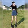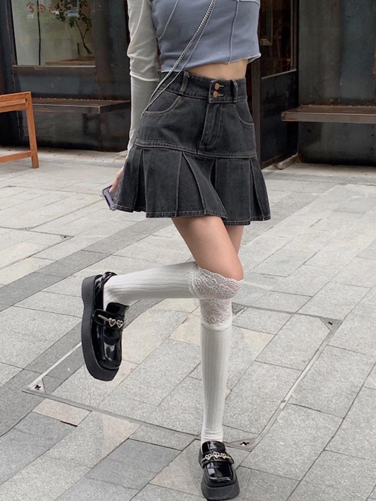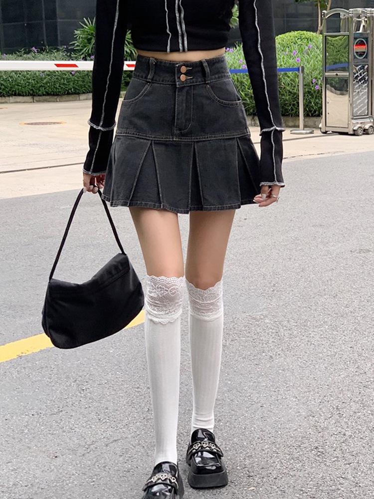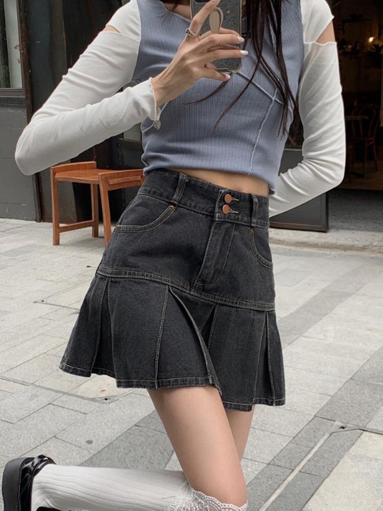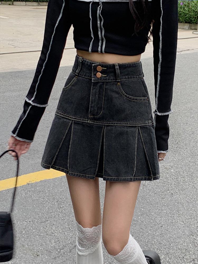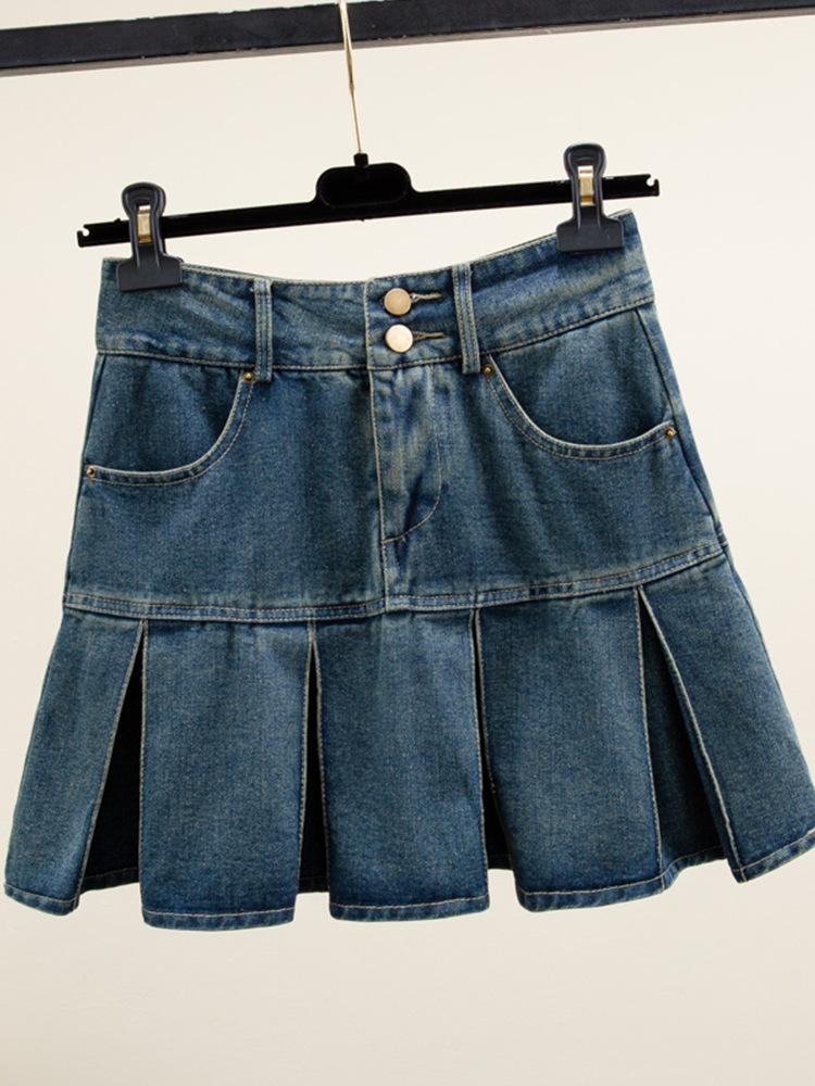 Falda de mezclilla estilo deseo puro para mujer, talla pequeña, diseño de cintura alta para chica sexy, falda plisada nicho, falda acampanada.