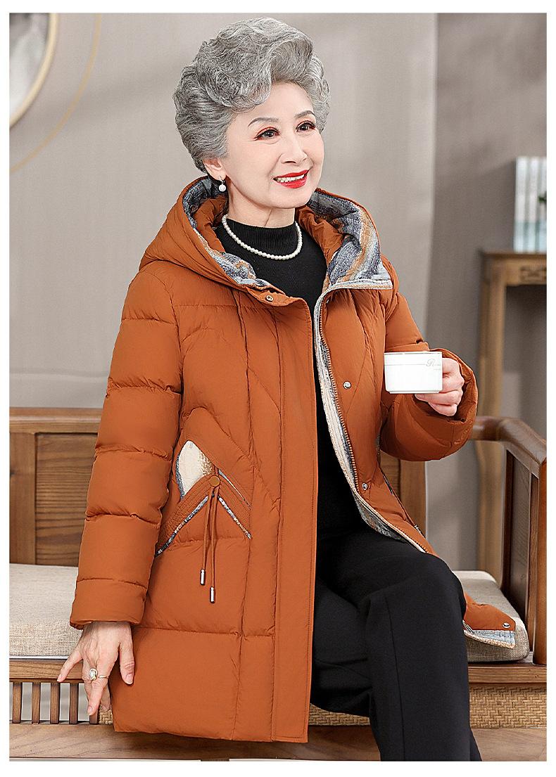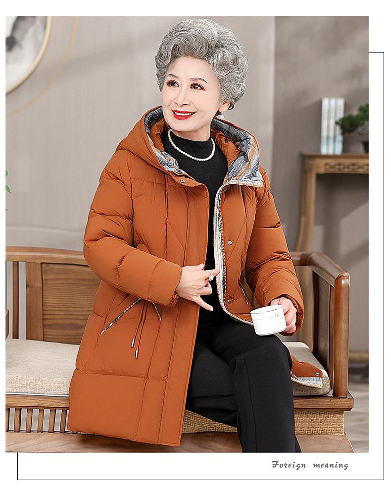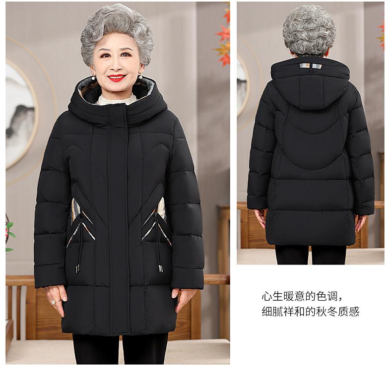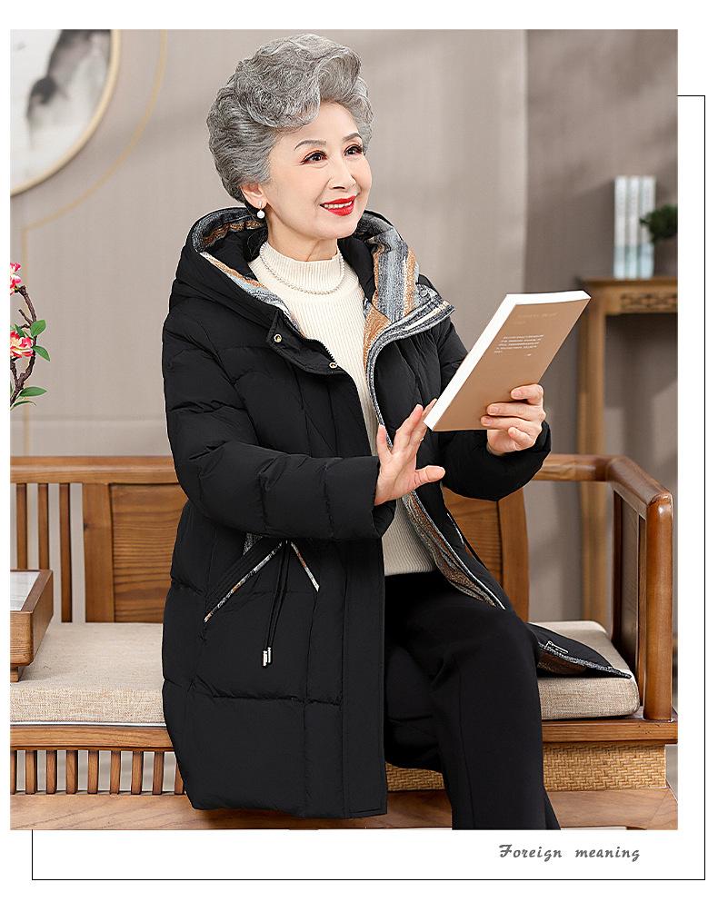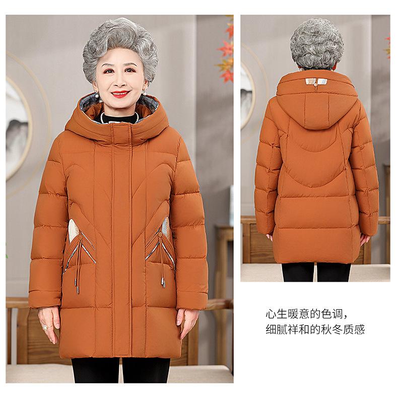 Ropa de invierno para mujeres mayores, chaqueta de plumón de longitud media para mamás, talla grande, ropa para abuela, estilo occidental, chaqueta gruesa acolchada de algodón para la anciana