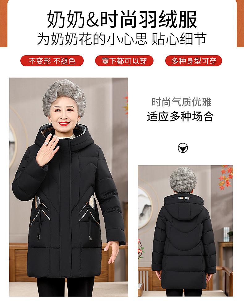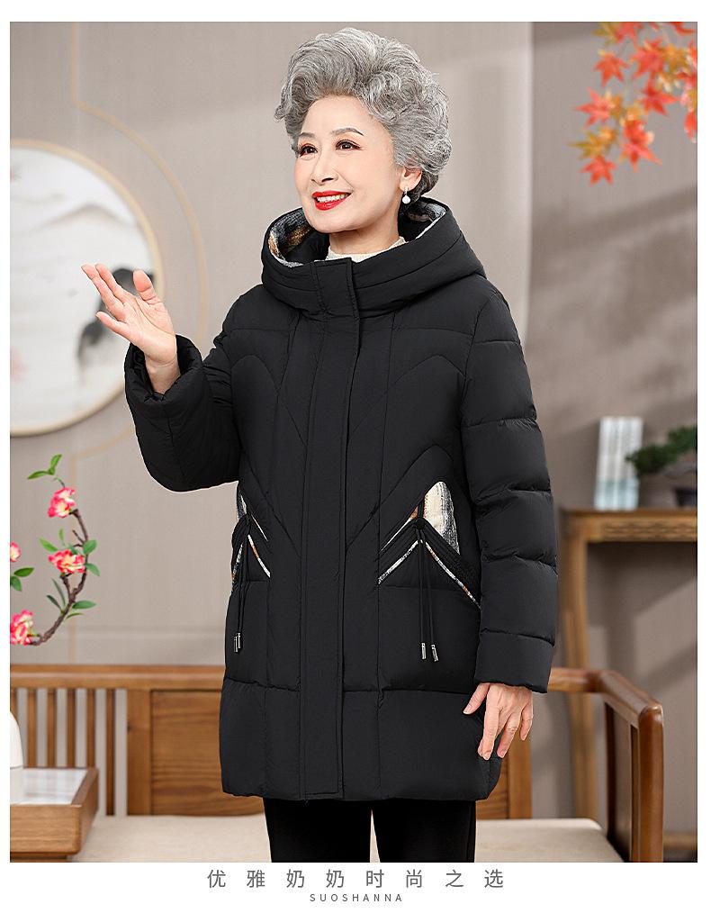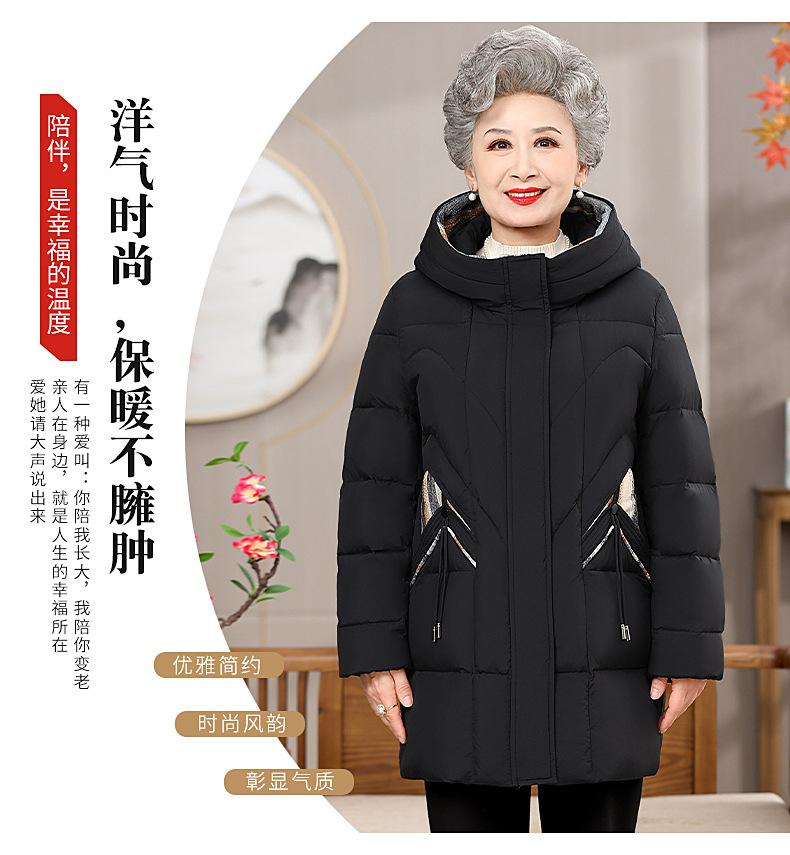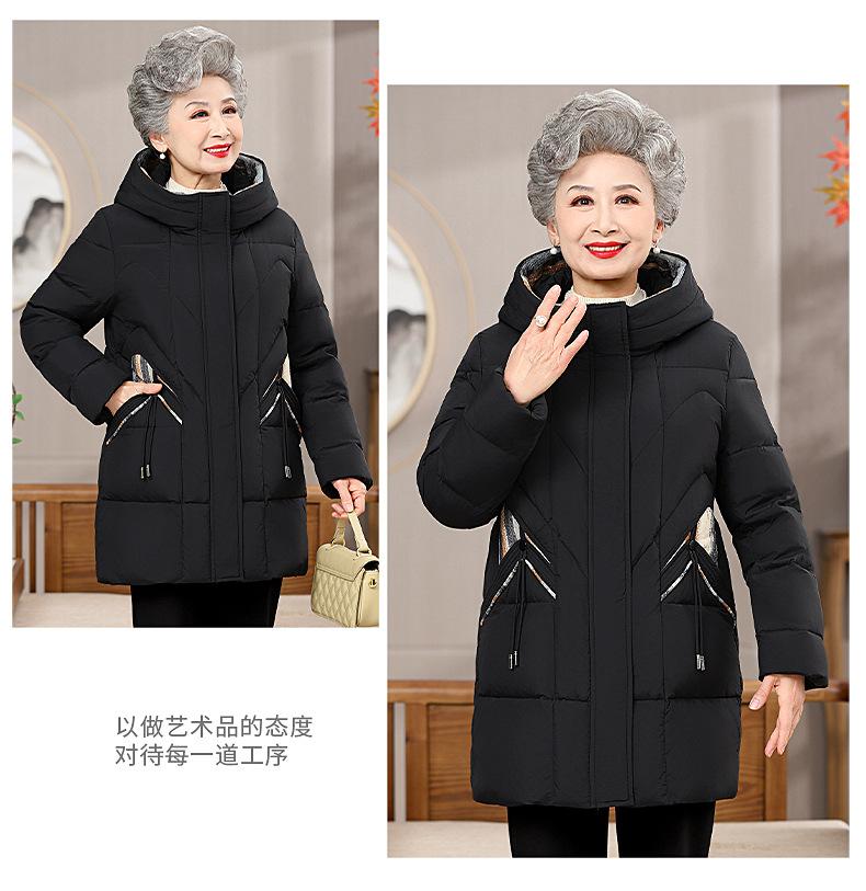 Ropa de invierno para mujeres mayores, chaqueta de plumón de longitud media para mamás, talla grande, ropa para abuela, estilo occidental, chaqueta gruesa acolchada de algodón para la anciana