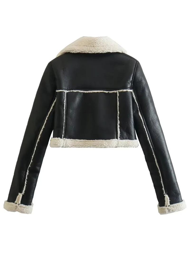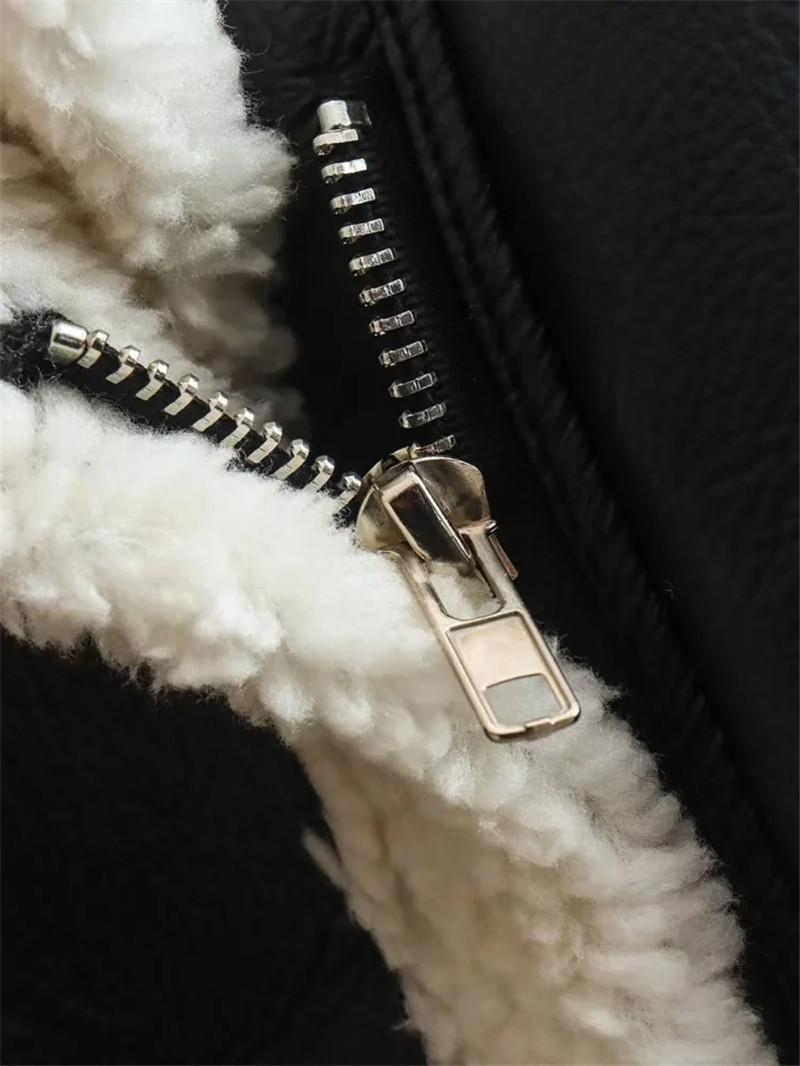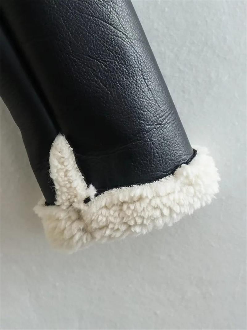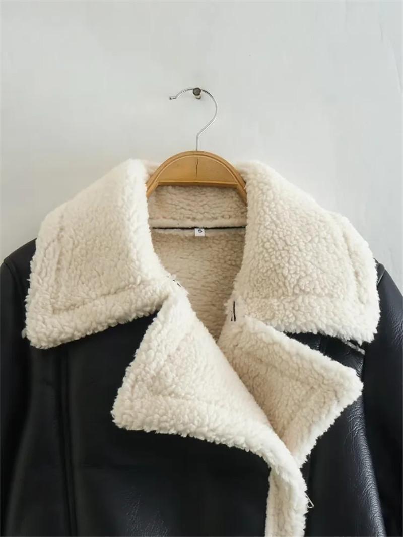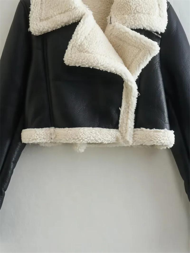 Europeo y Americano 2023 Nuevo Invierno Abrigo Corto de Borrego de Solapa para Mujer de Una Pieza de Vellón de Doble Cara Negro Dorado